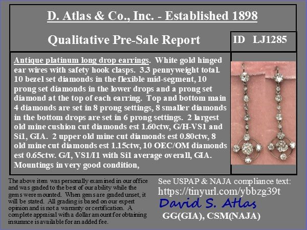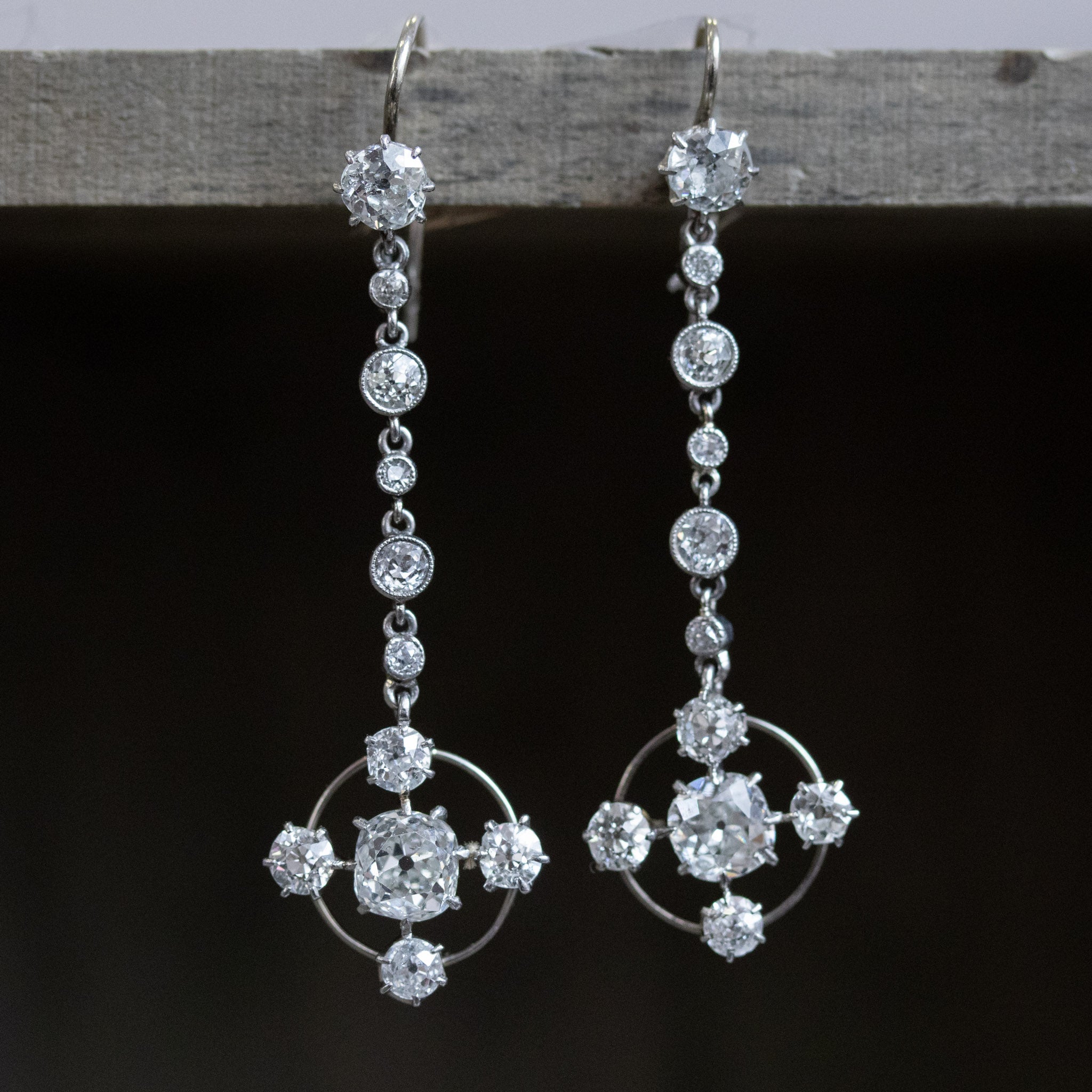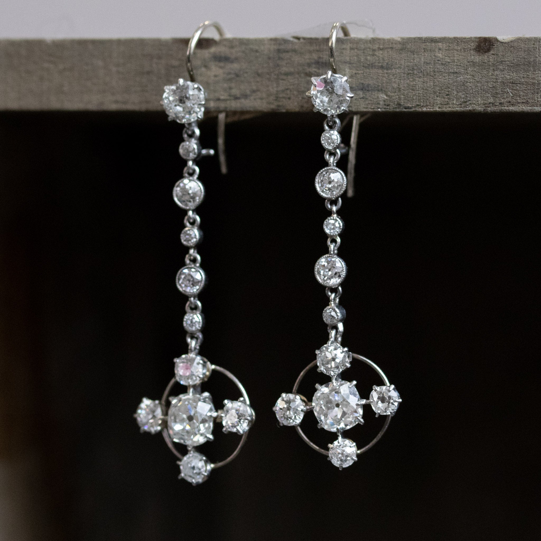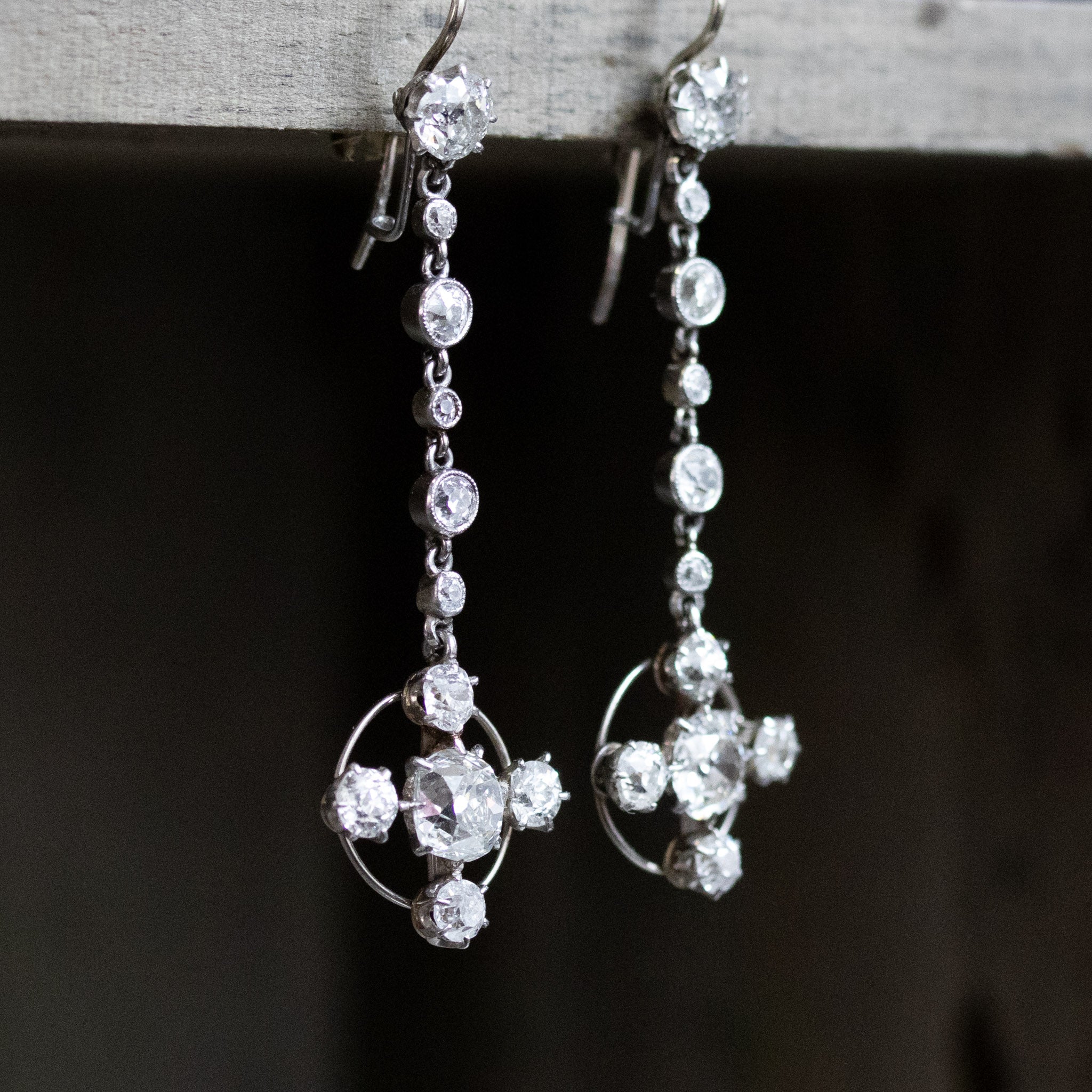 4.20ctw Antique Cruciform Motif Diamond Ear Pendant Earrings