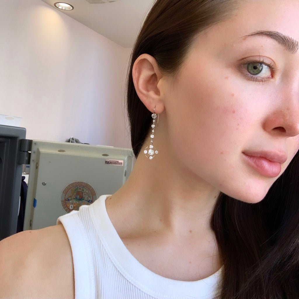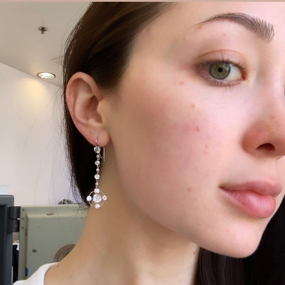 One of my favorite purchases from Las Vegas! I just love everything about it - the dramatic length, the cruciform motif of the central diamonds, the delicate and feminine bezel set diamonds strung on a fine chain, and just its overall wearability too! A truly special pair of earrings which will transition beautifully from day to night.