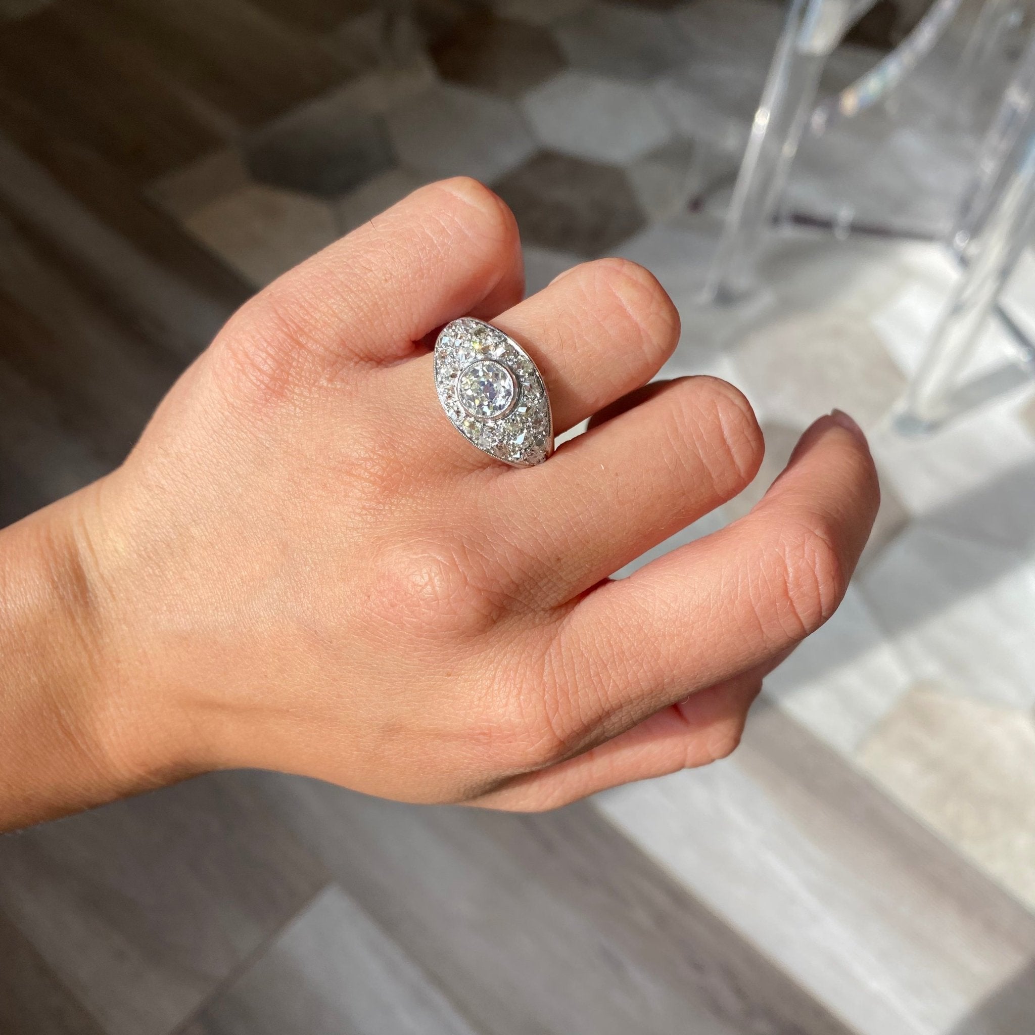 An incredibly beautiful cluster ring, French in origin (duh!) with enough sparkle to blind any onlookers.