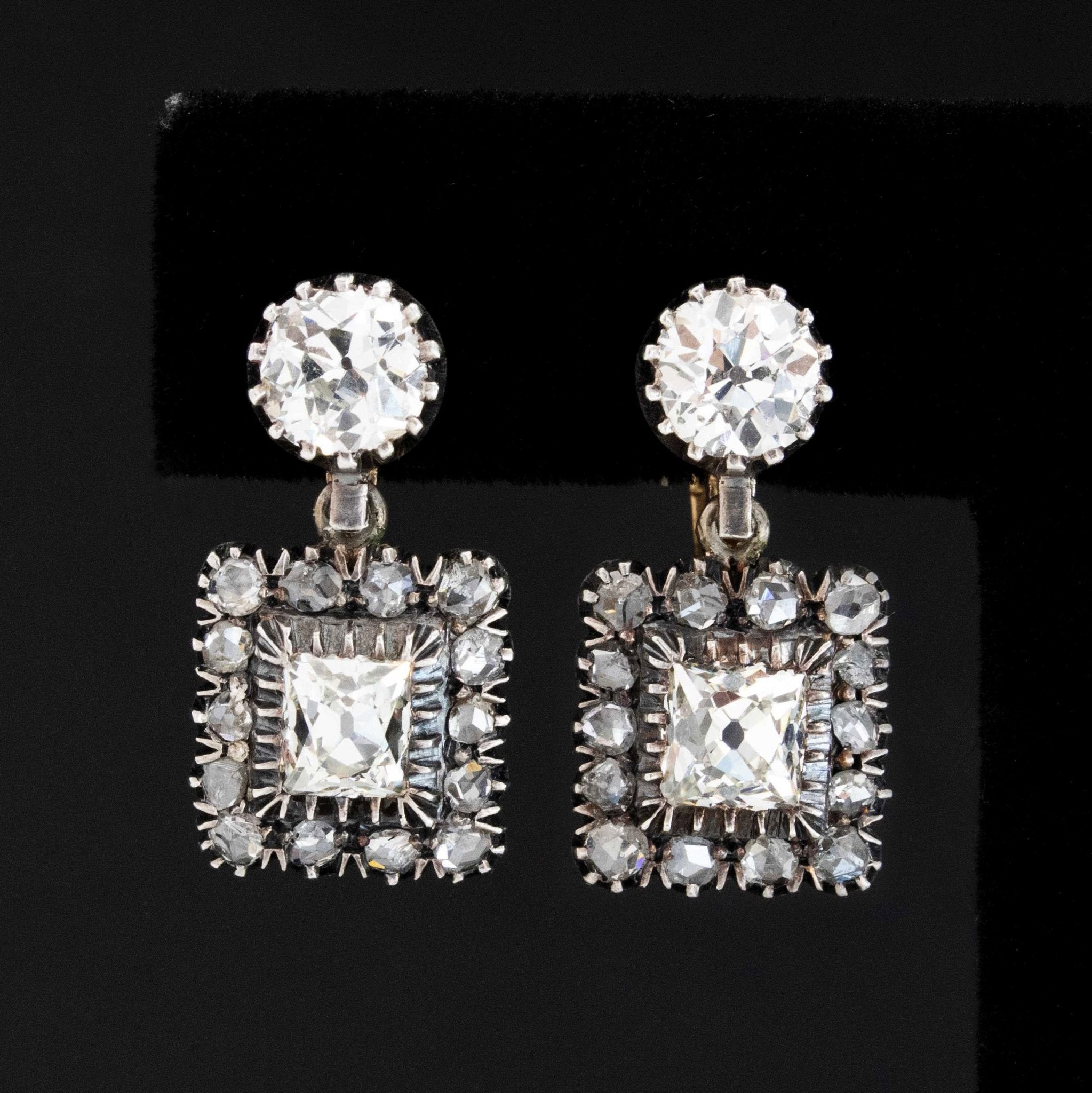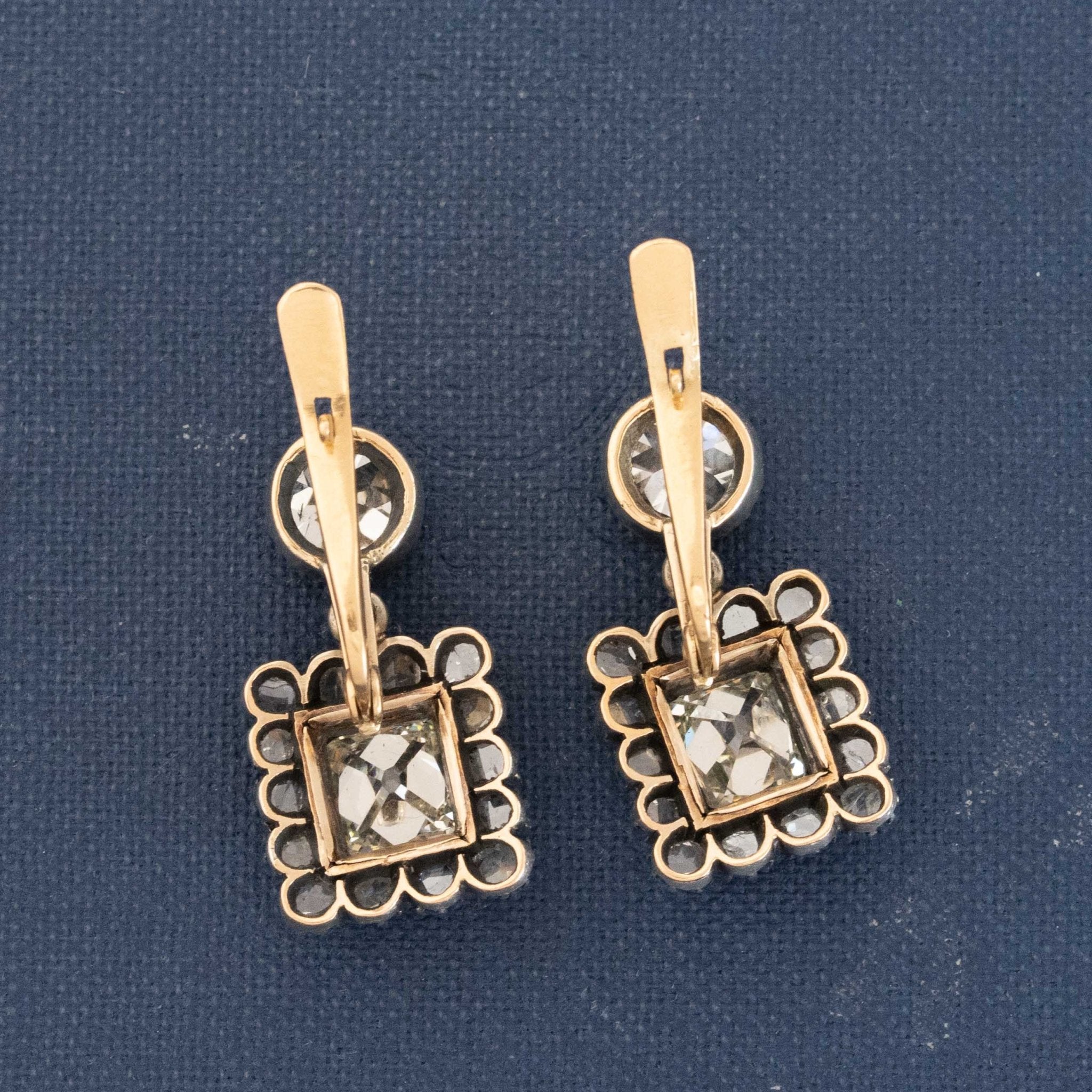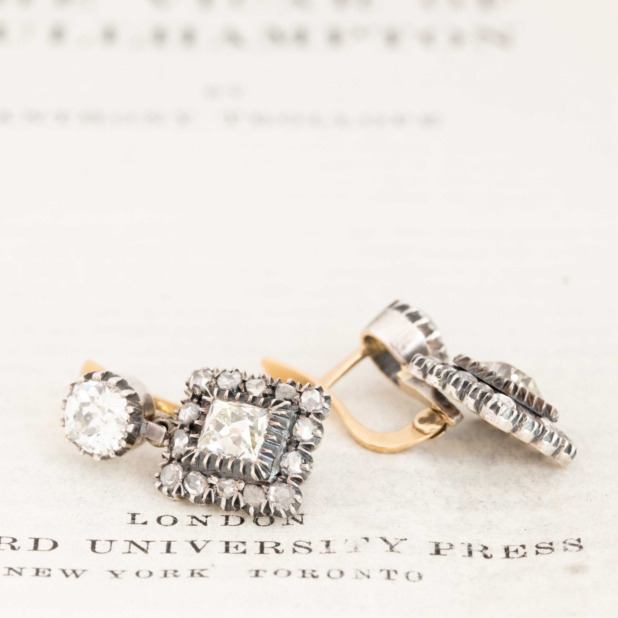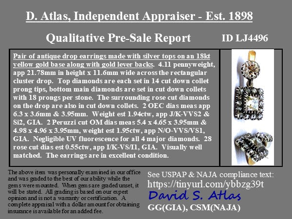 4.44ctw Antique OEC & Peruzzi Diamond Cluster Drop Earrings, Portuguese