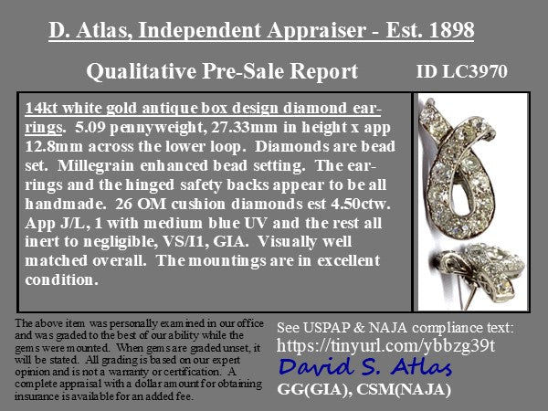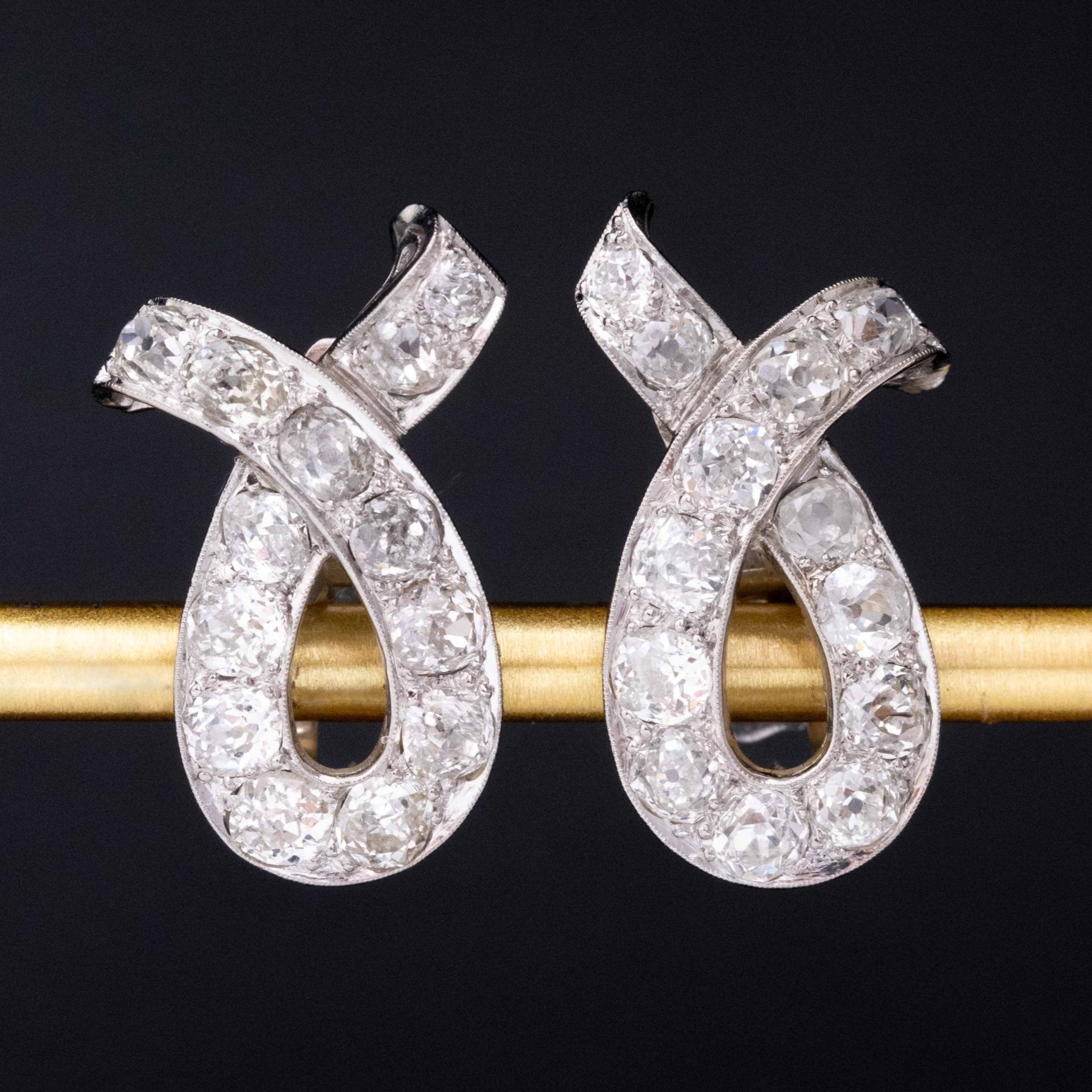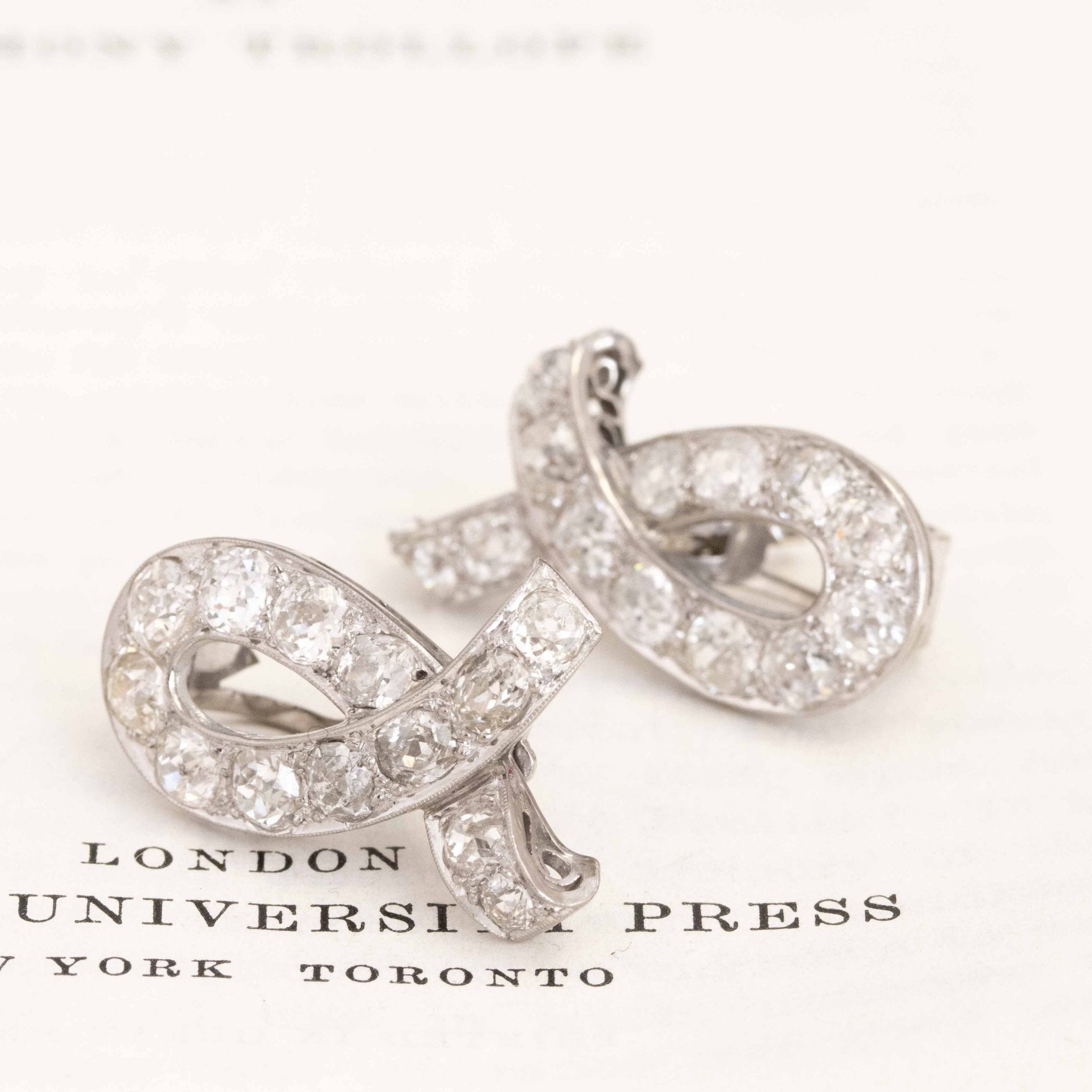 4.50ctw Art Deco Old Mine Cut Diamond Ribbon Earrings