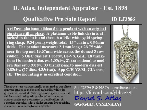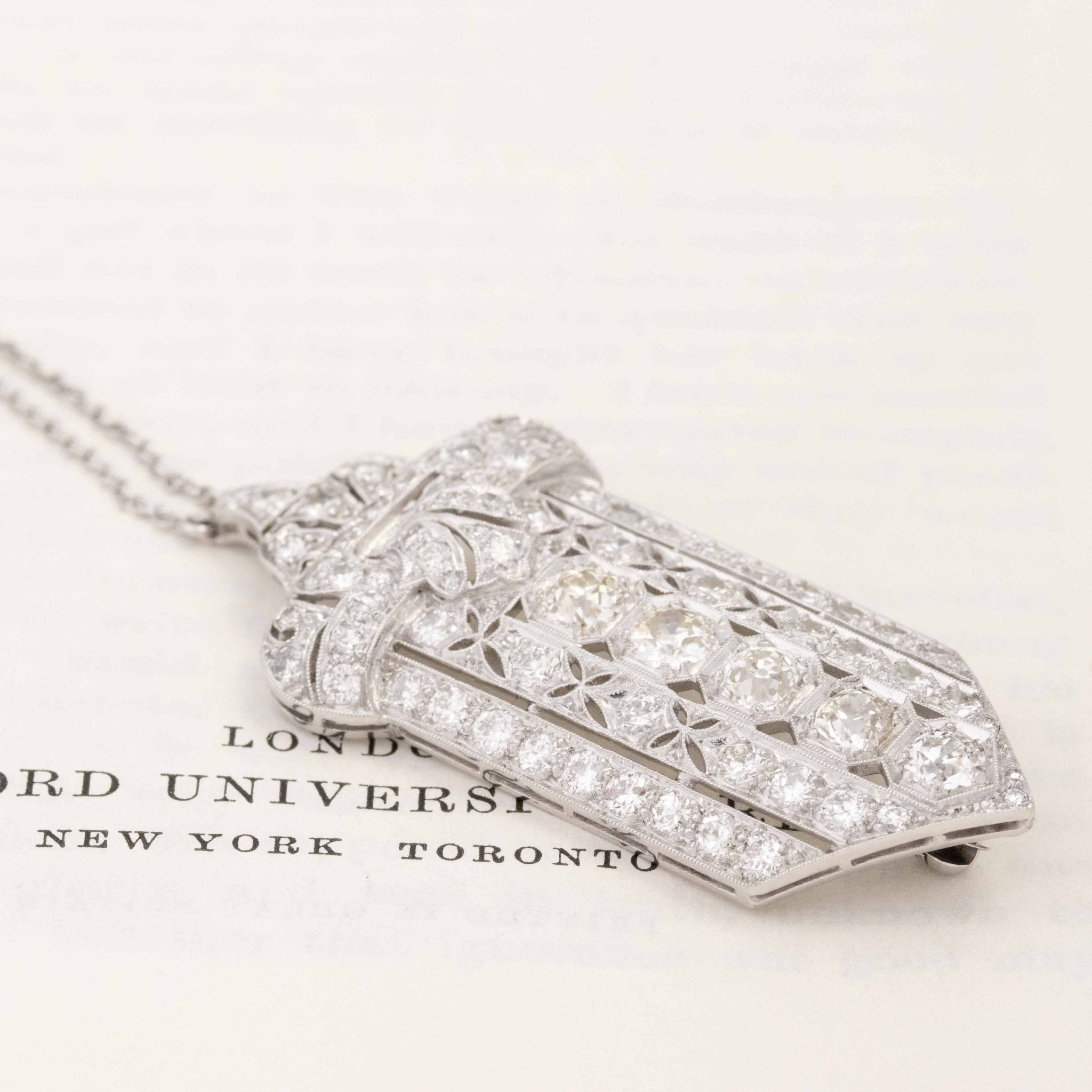 4.55ctw Art Deco Ribbon Drop Pendant/Brooch