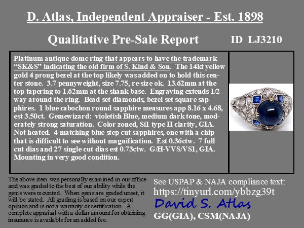 4.59ctw Edwardian Sapphire Cabochon and Diamond Ring