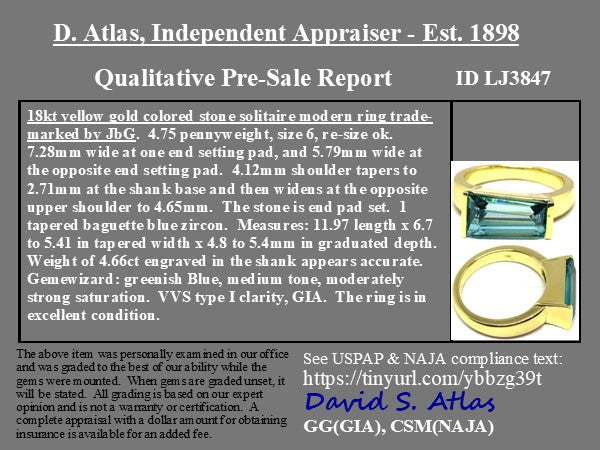 4.66ct Tapered Blue Zircon Half-Bezel Solitaire