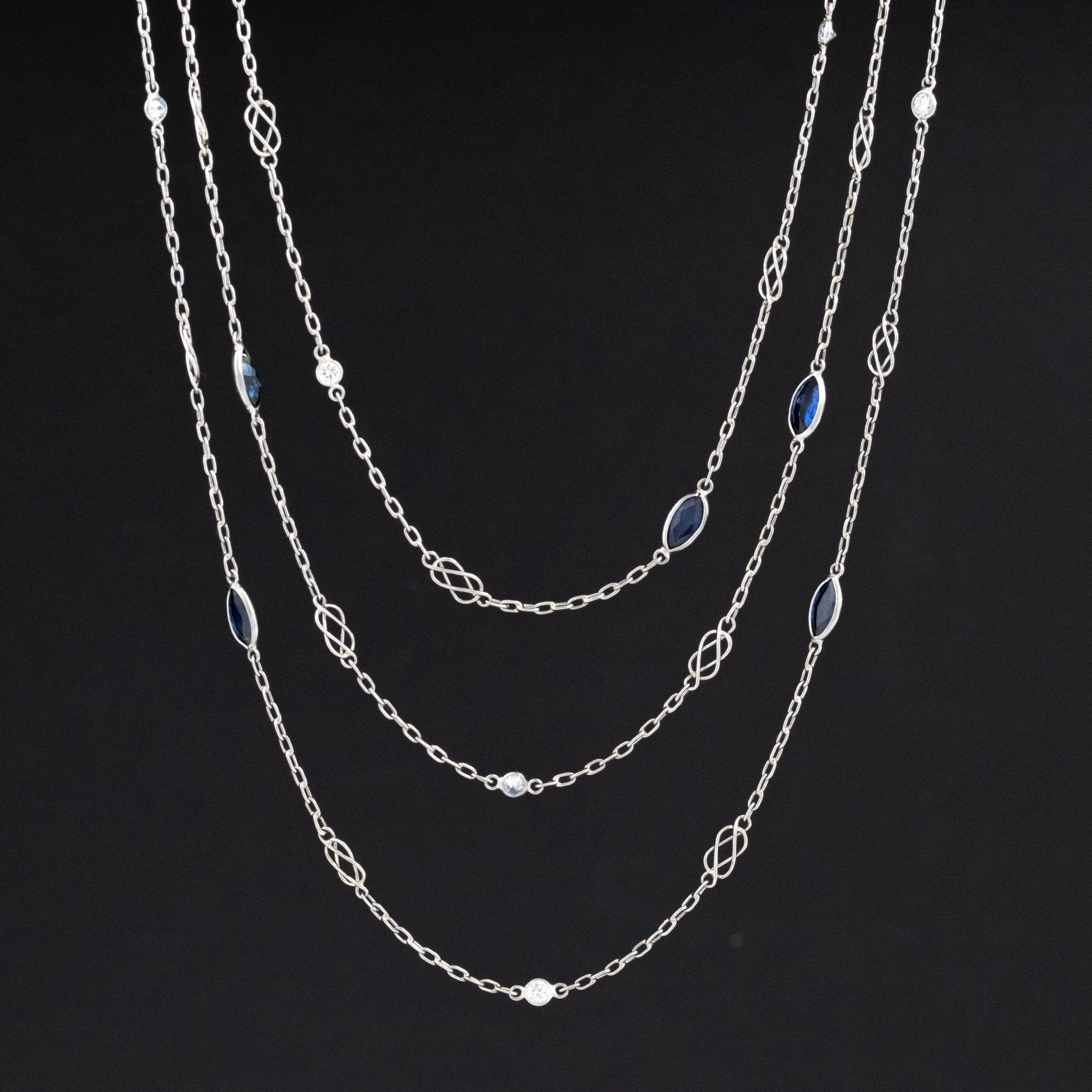 4.66ctw Sapphire and Diamond Station Necklace, 56"