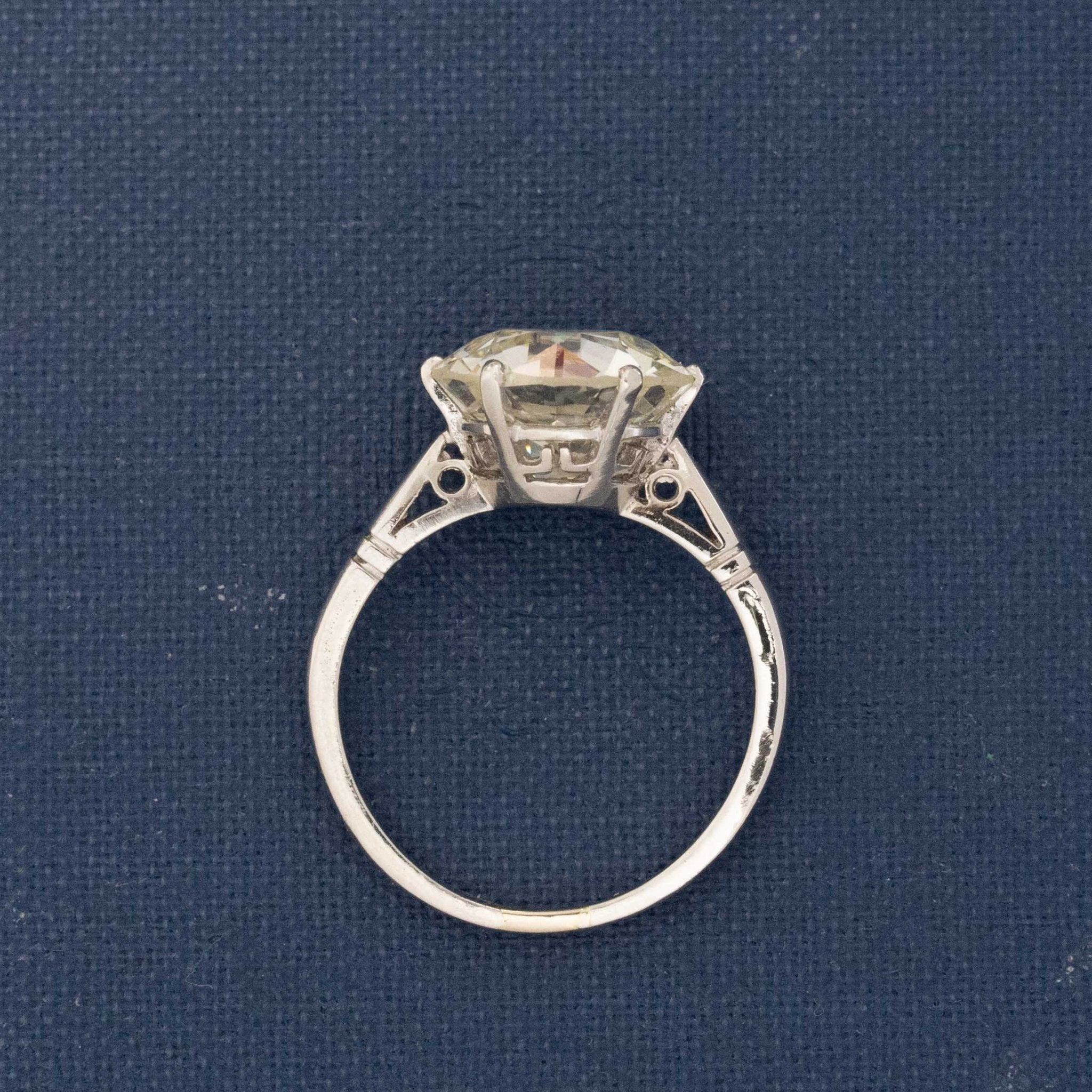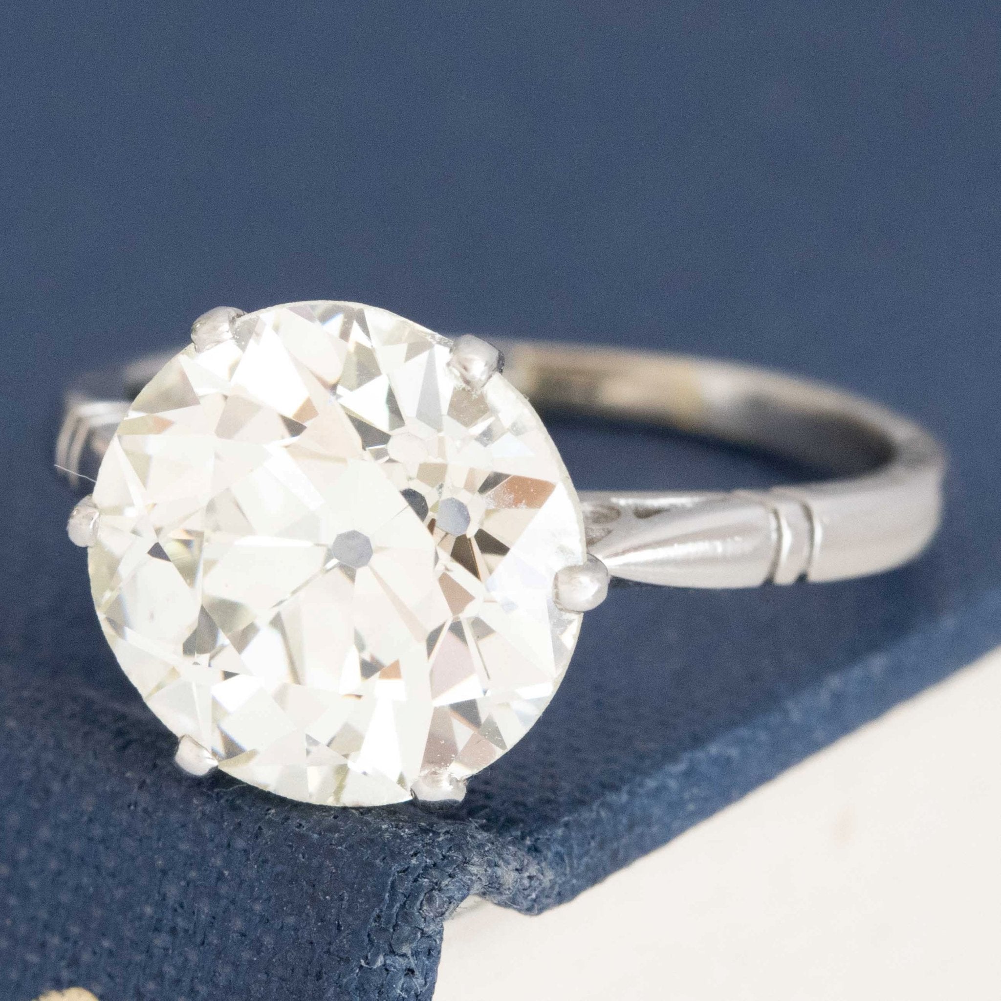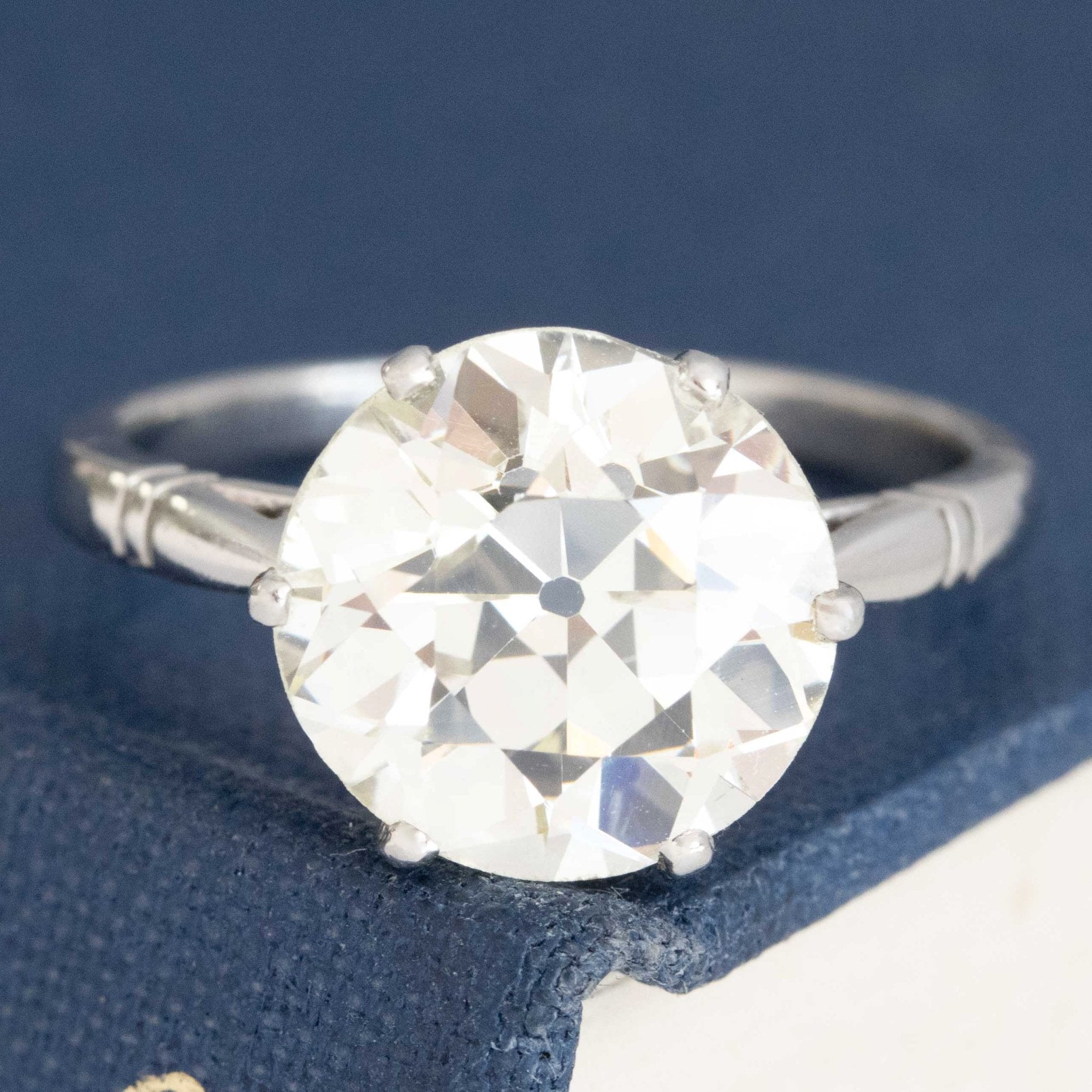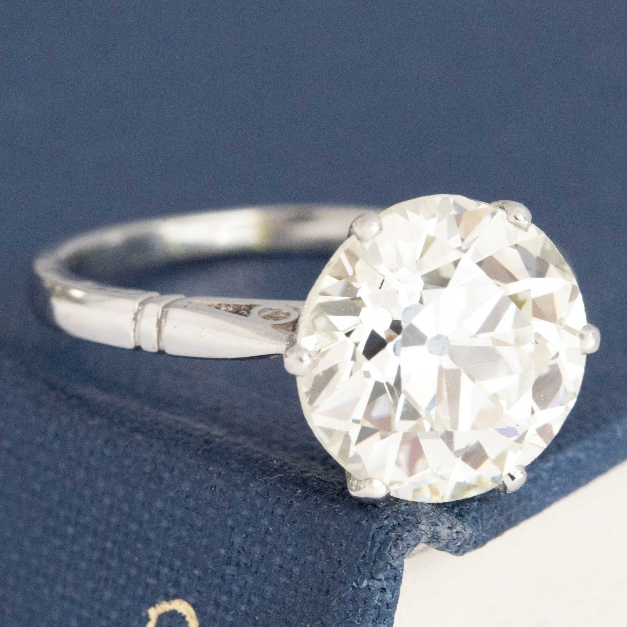 As timeless as timeless goes! A beautifully-faceted old European cut diamond, set in its original vintage 6-prong solitaire in platinum. The diamond has a very charming warm ivory face up, yet very white in a good number of lighting conditions. She is the classic OEC make - small table and that unique flower facet pattern under the table.