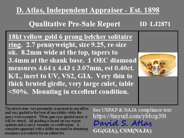- Diamond is estimated to be K/L color & VS2 clarity. GIA Standards.