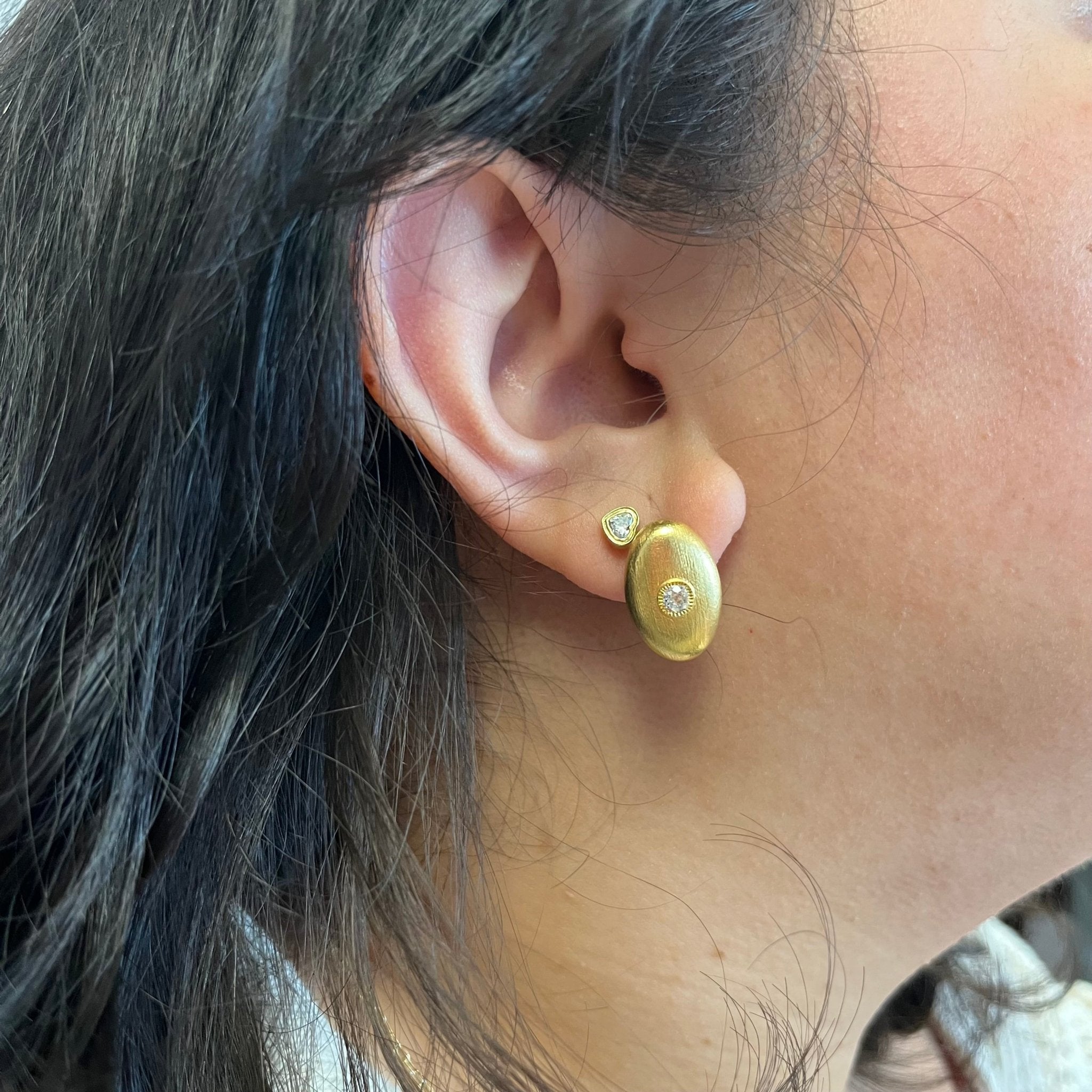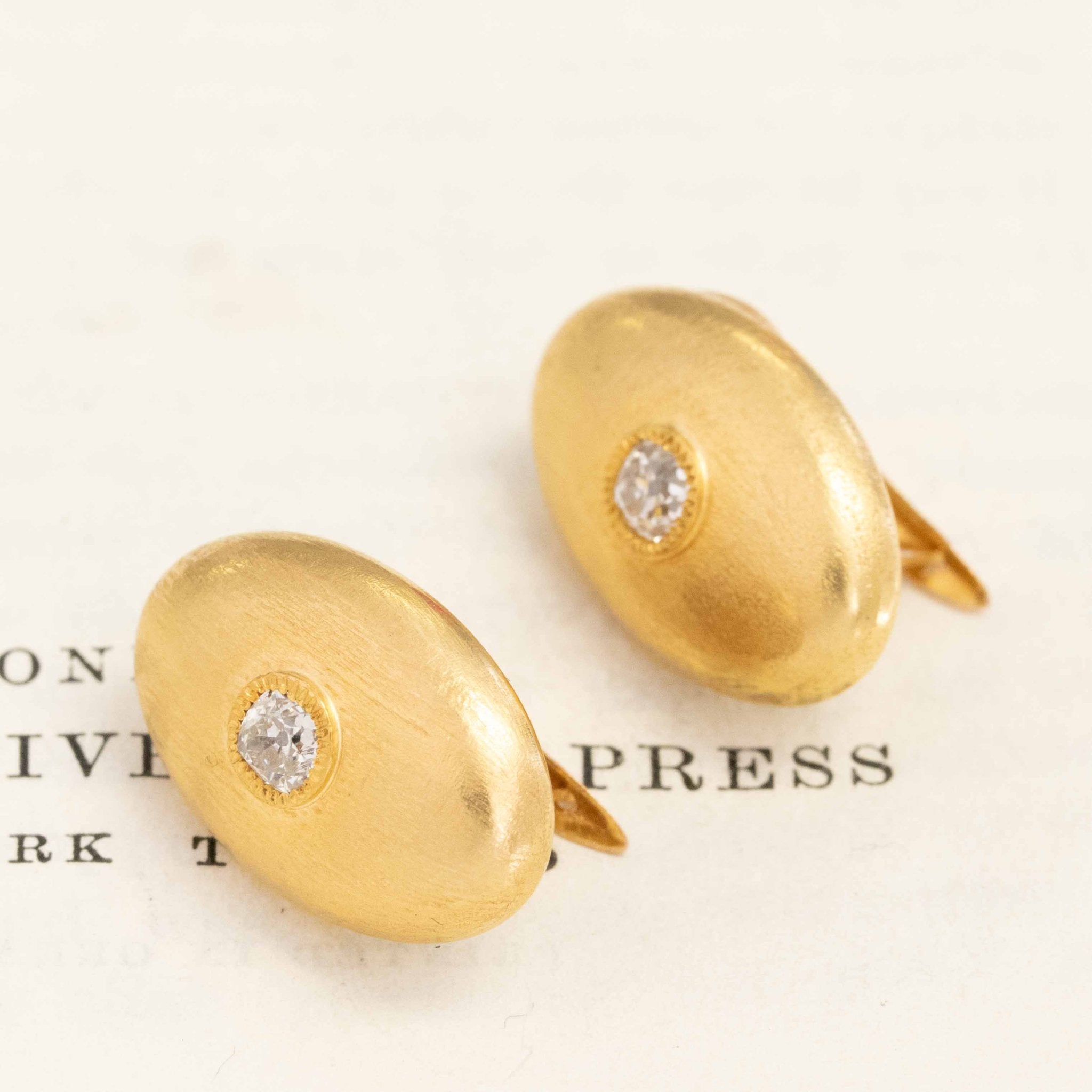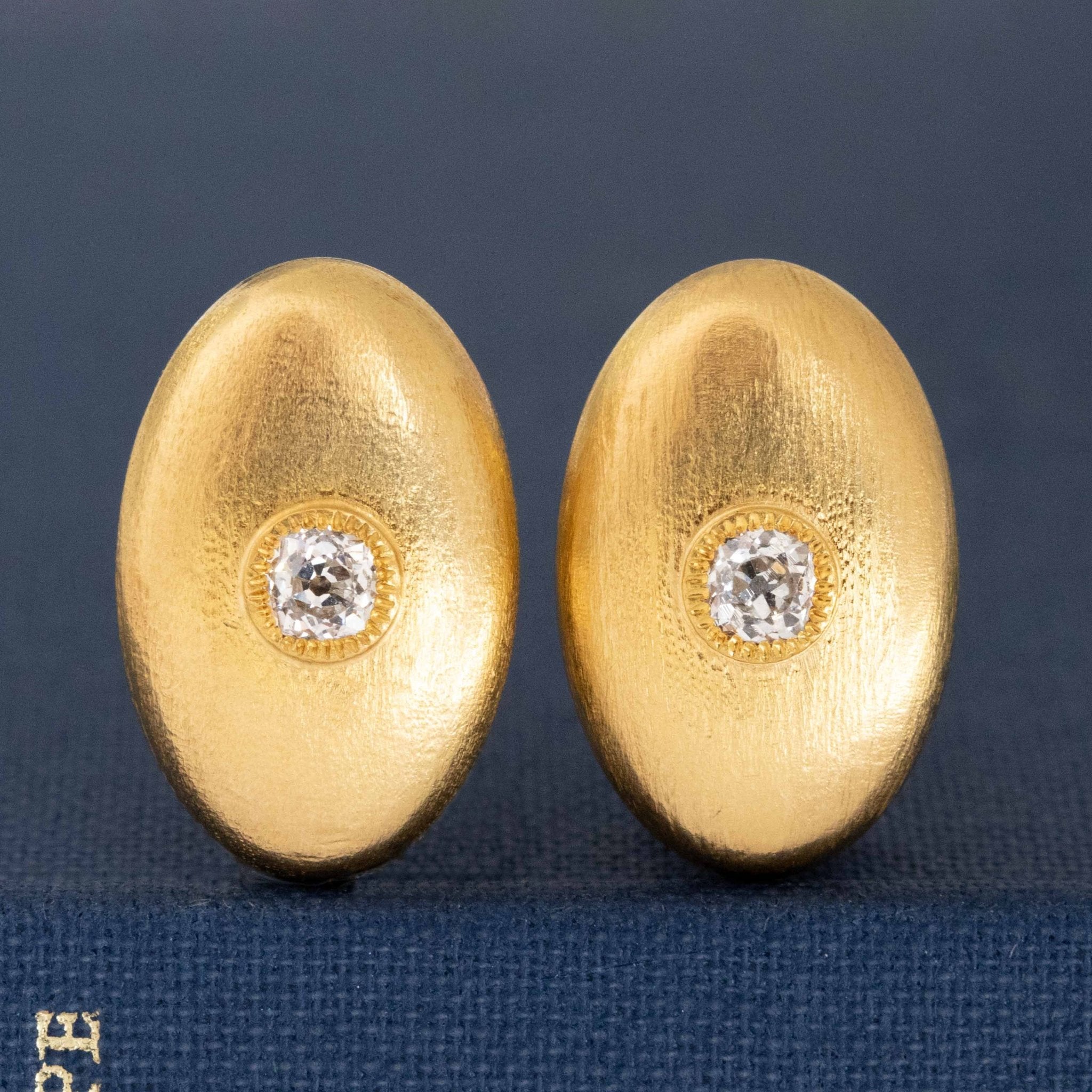 We believe that these earrings must have started their life as cuff links (we acquired them as-is) but someone has cleverly converted them into earrings somewhere down the road and we have to say - they are even more beautiful as such! Chic and with such modern vibes - the old cuts diamonds add that perfect touch of sparkle. Super chic on the lobes to boot!