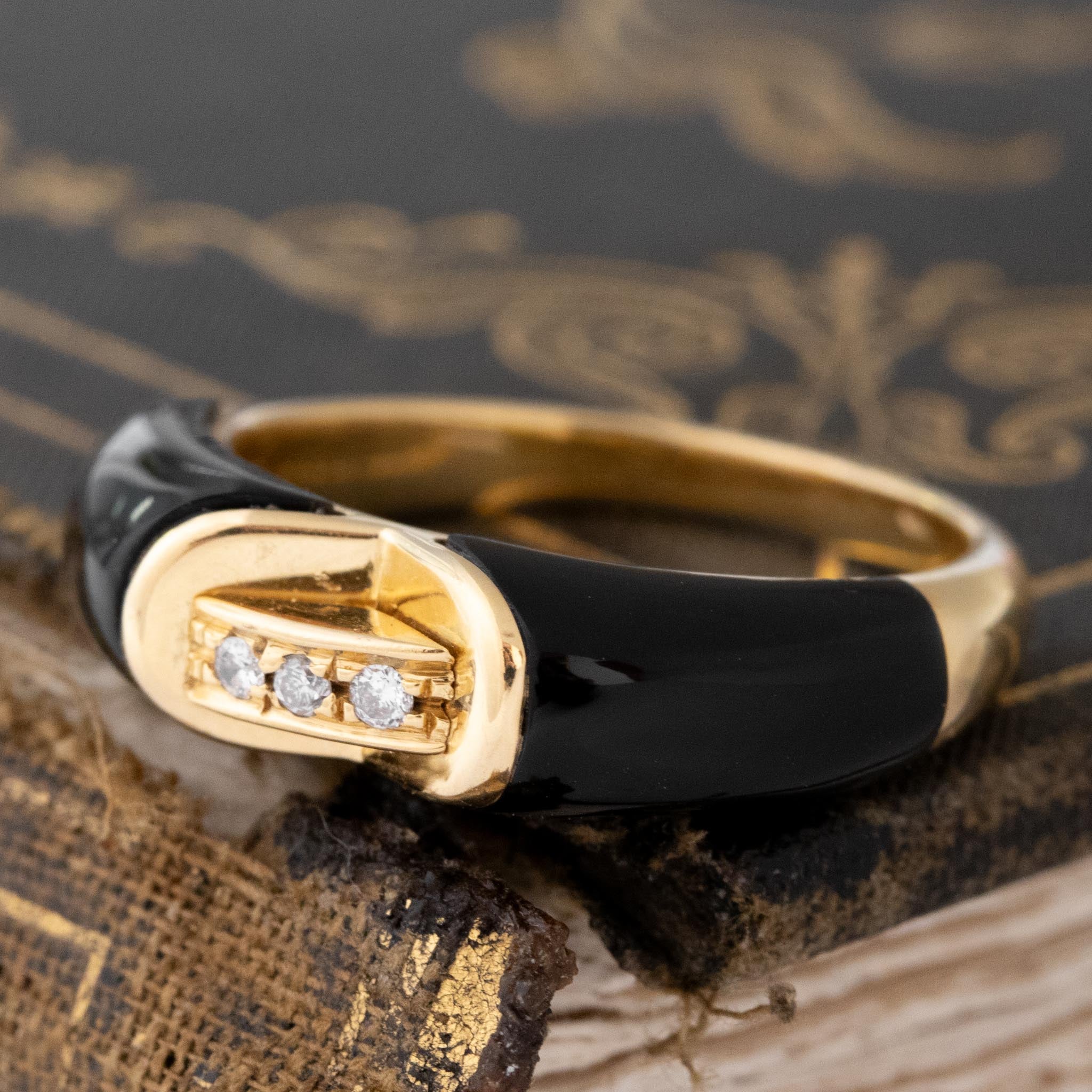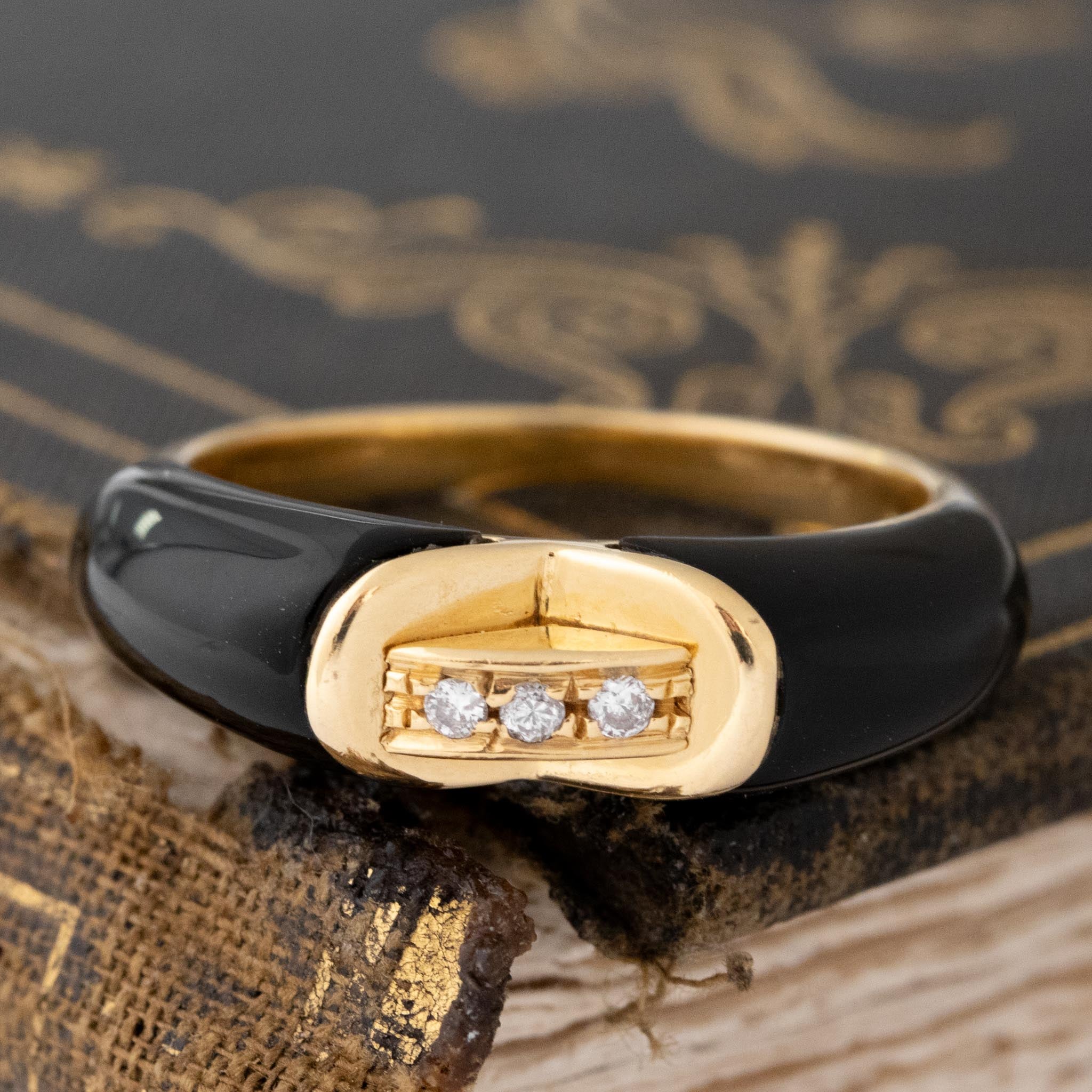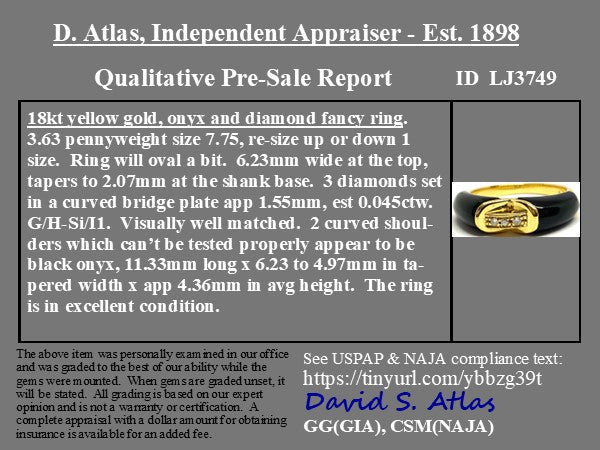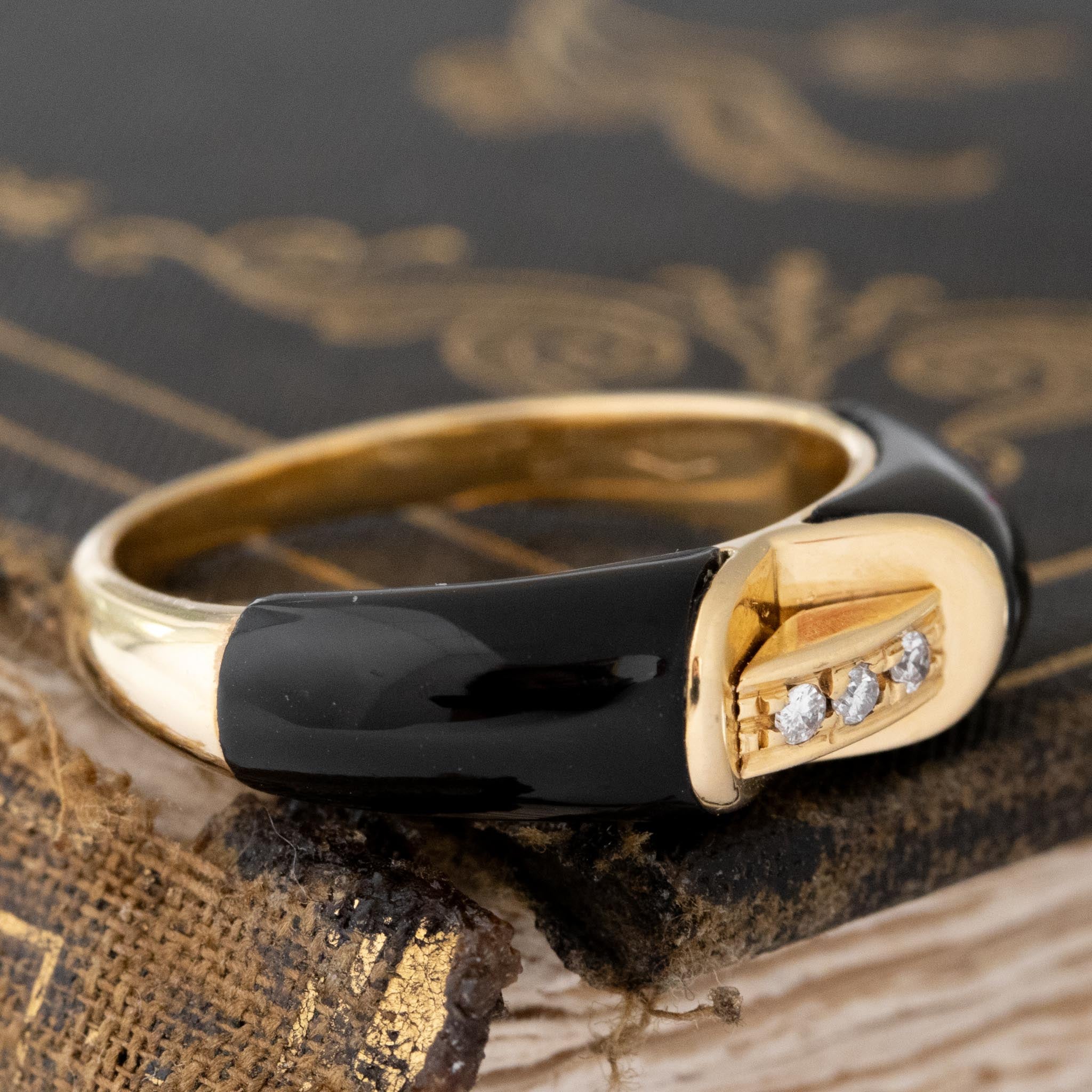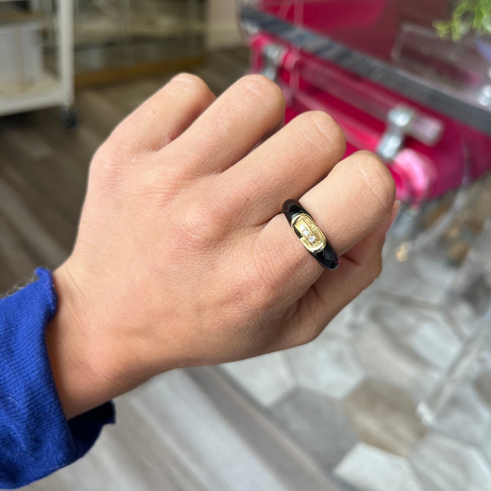 And with this band, we bring our programming back to the best of the 80s! A great nod to the era, this band features carved onyx, with a smattering of diamonds in the center. A great fun piece to add to your collection.