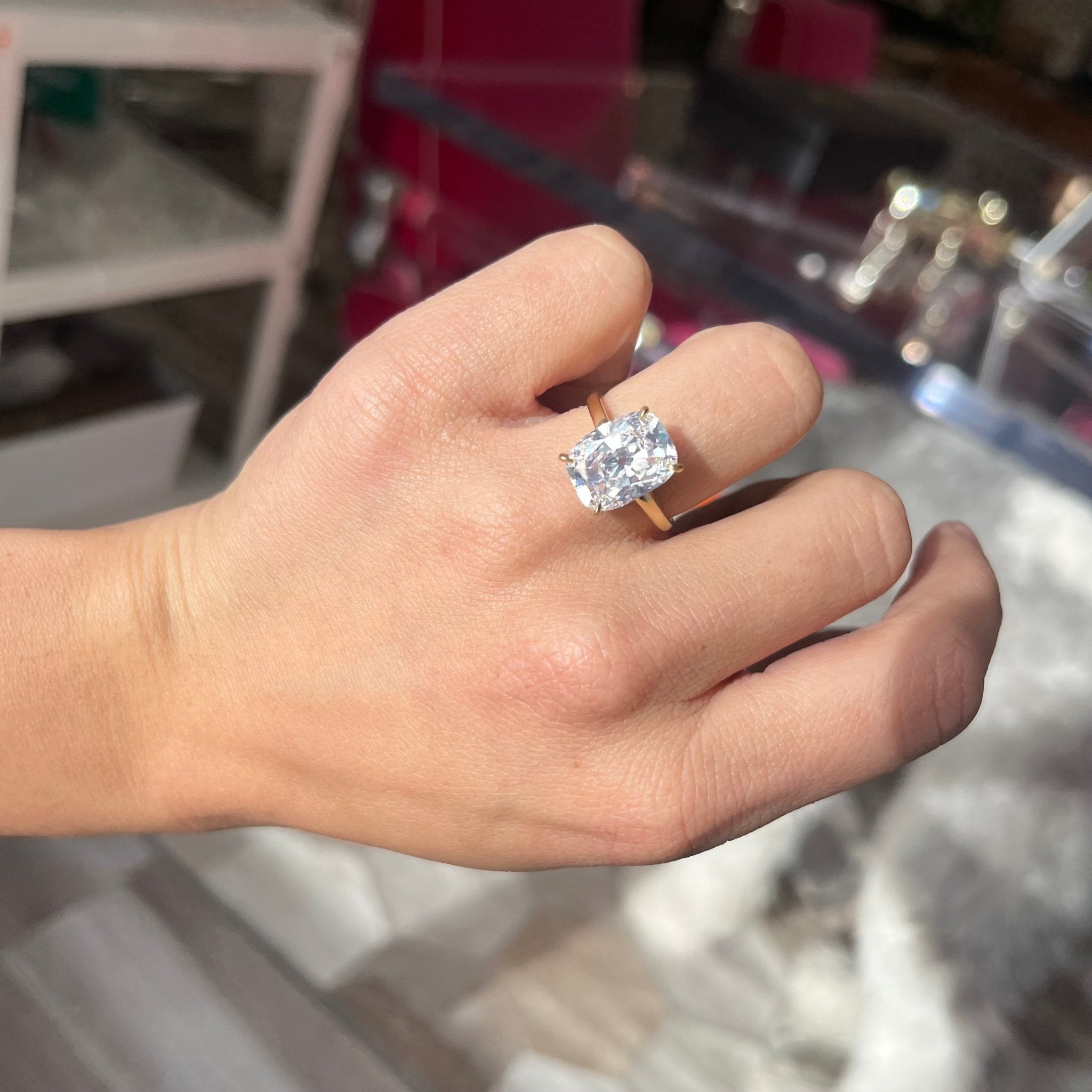 Yes, yes - this ring does look like she's a million bucks! I just love everything about this elongated cushion - the stunning shape, the face up of a 7ct, the bright face up, and best of all - the way it oozes elegance and timelessness on the finger. THE perfect engagement ring for anyone looking for this size and shape. And a truly great value with these speces too.