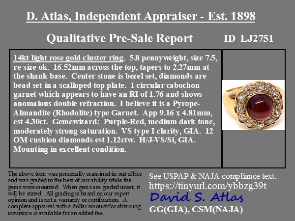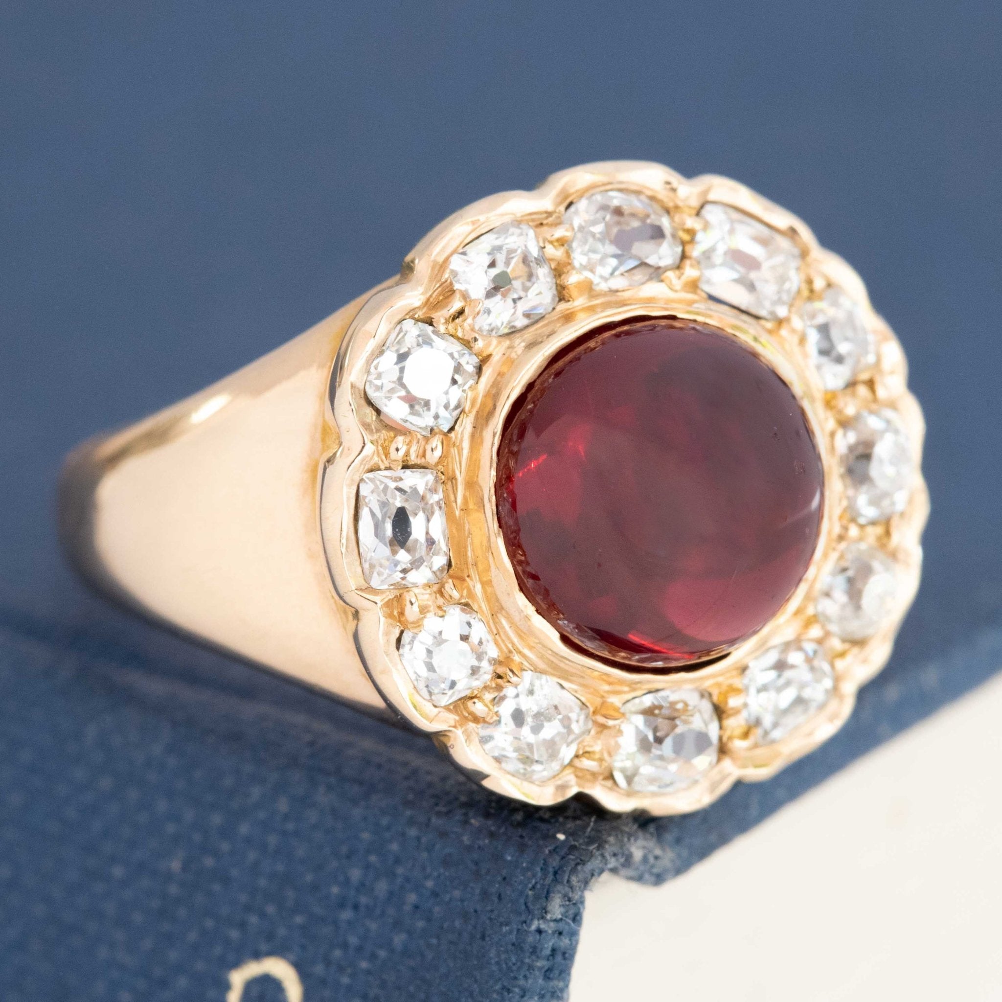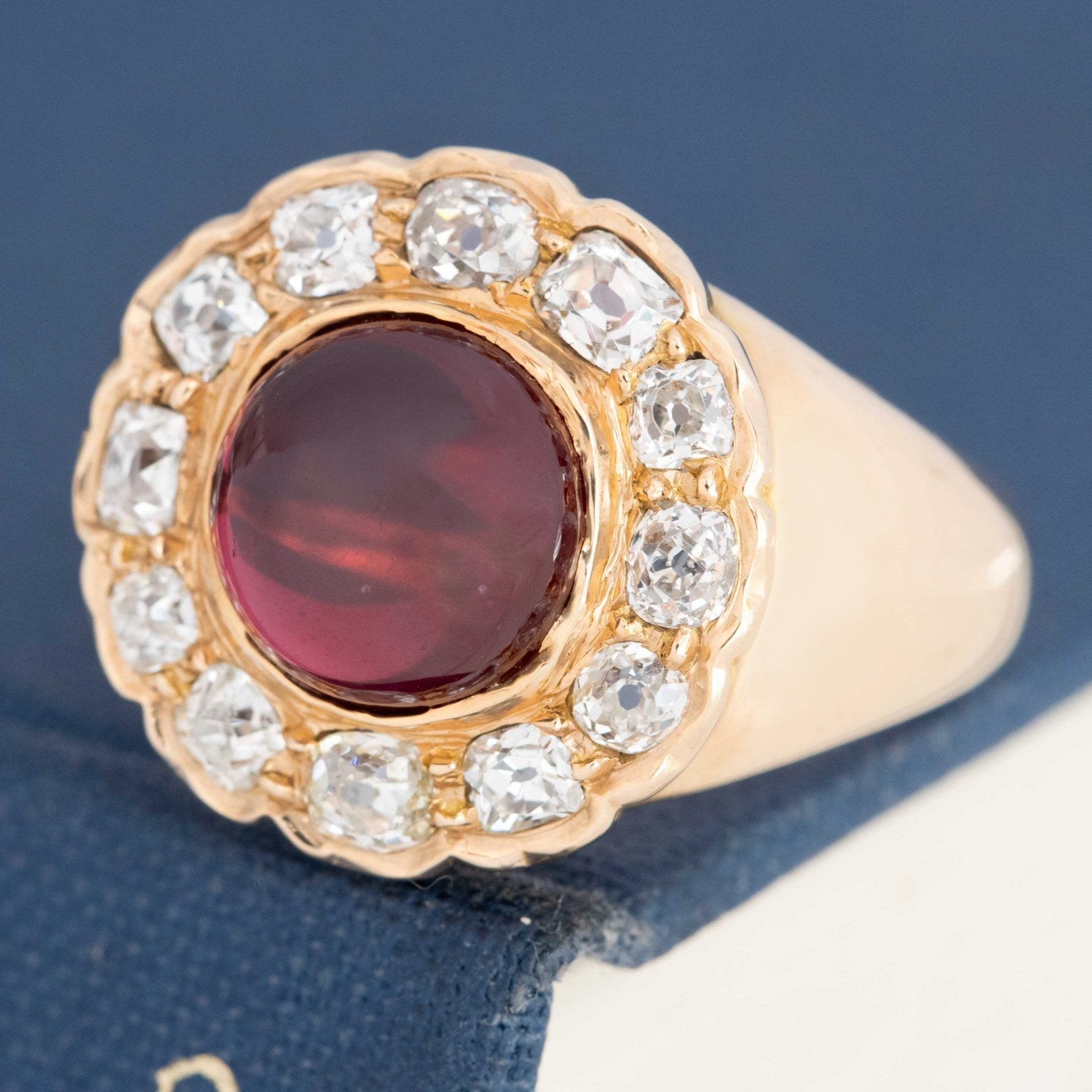 5.42ctw Vintage Garnet & Old Mine Cut Diamond Cluster Ring
