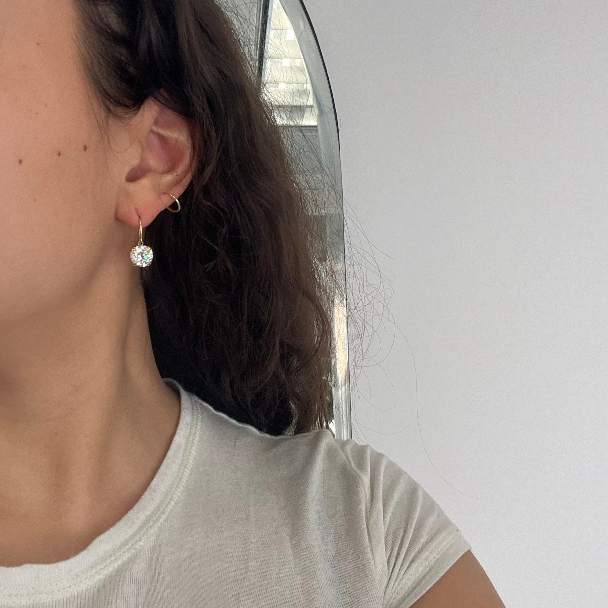 Truly my favorite way to wear earrings - the simple drops with French wires. This setting came from my personal collection and this pair of killer OECs happen to be the perfect match in size and scale for them. They are bright and are like little headlights when worn (plus they face up like 3 caraters!) These earrings are the perfect go-to pair for daily wear and will transition beautifully for the evening. Just a STUNNING pair - truly!