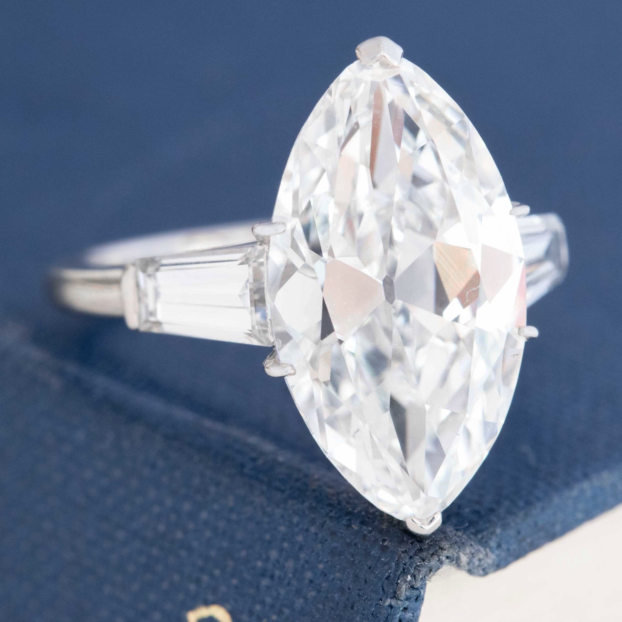 Antique marquise cut diamonds are a pleasure all on their own - but when you add their original setting and such incredible specs into the mix, the result is a breathtaking ring that we may never get over.
