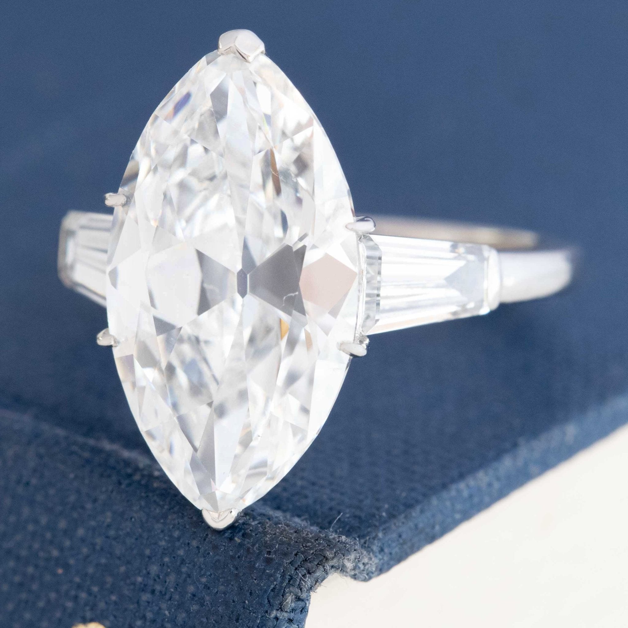 5.51ct Art Deco Marquise Cut Diamond Ring, GIA F VS2