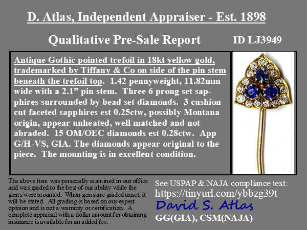 .53ctw Antique Diamond & Sapphire Trefoil Stick Pin by Tiffany & Co.