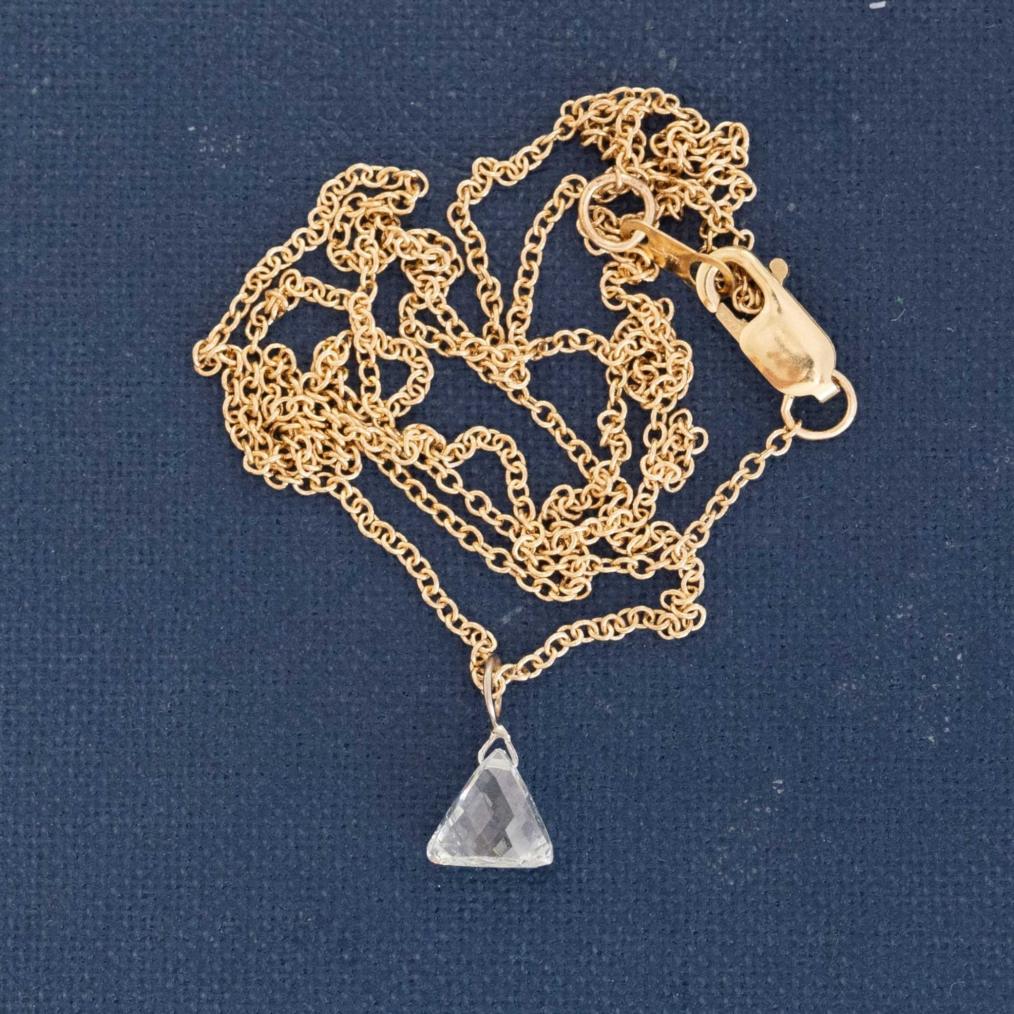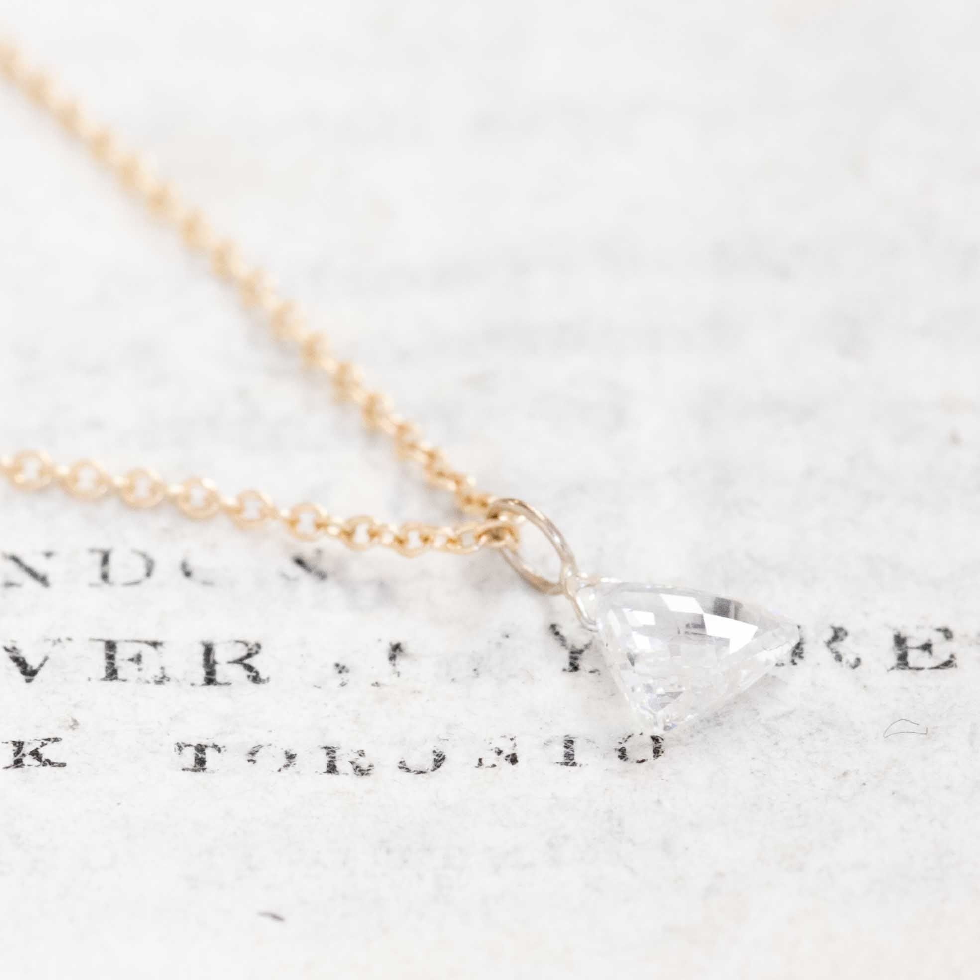 A sweet diamond pendant with a triangle-shaped rose cut, pierced and suspended front and center! An elegant and unique solitaire necklace that is subtle but so full of character.