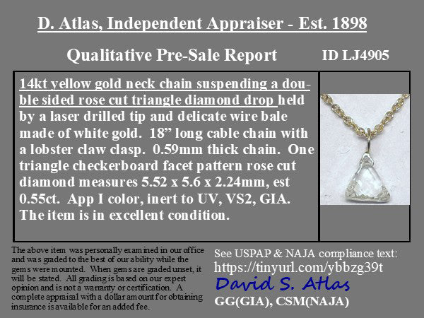 .55ct Triangle Rose Cut Diamond Pendant