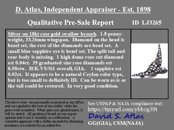 One of the rarest and most collectible jewels from the Georgian and Victorian eras - the swallow. Representing endless love, devotion and loyalty - does it get any better than that? This piece came to us with the missing tail, but despite that, its beauty and charm is unaffected.