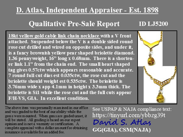 .57ct Yellow Briolette Cut Diamond Drop Necklace