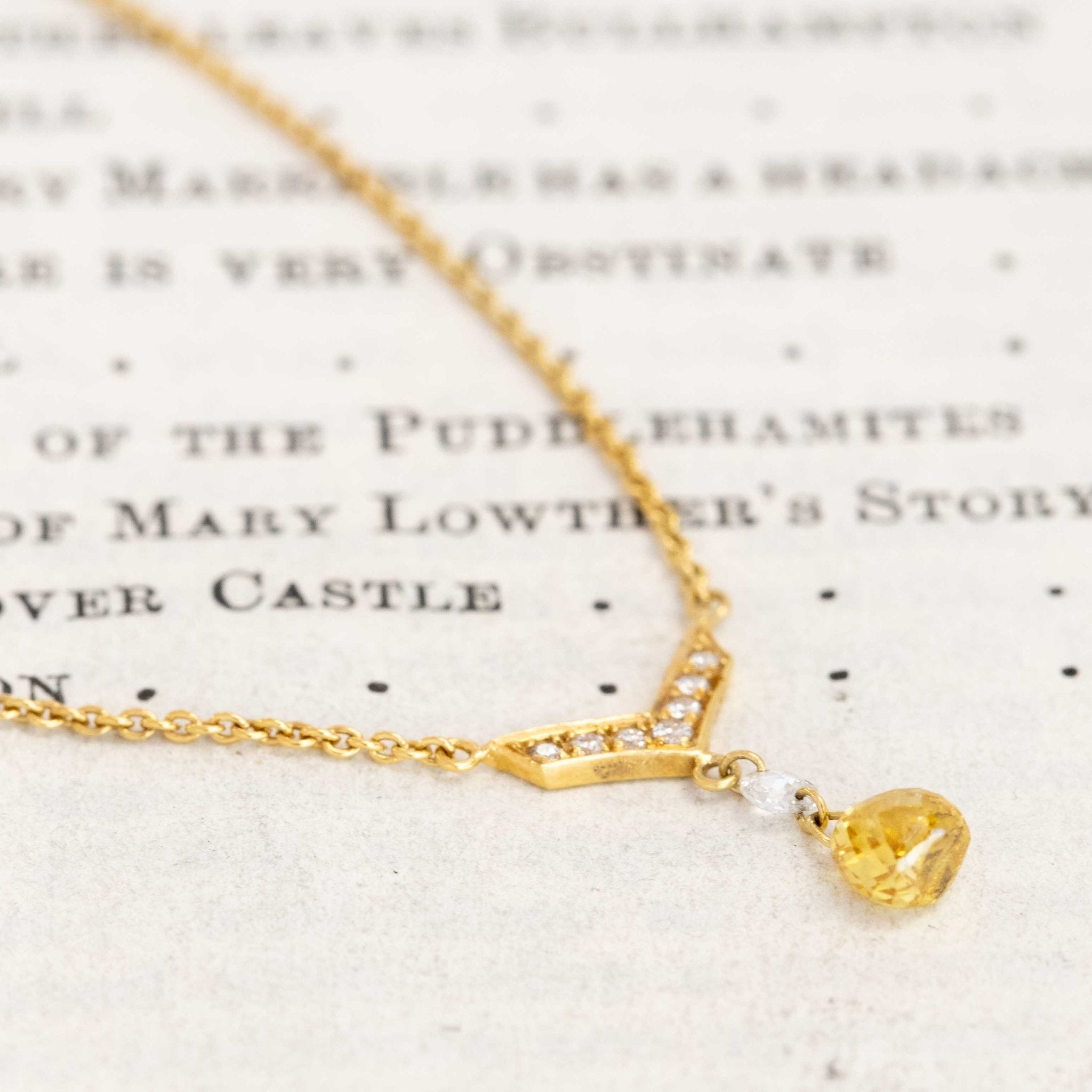 Just a little dollop of sunshine with this yellow briolette diamond drop necklace—elegant, feminine, and perfect worn solo or layered with other pieces.