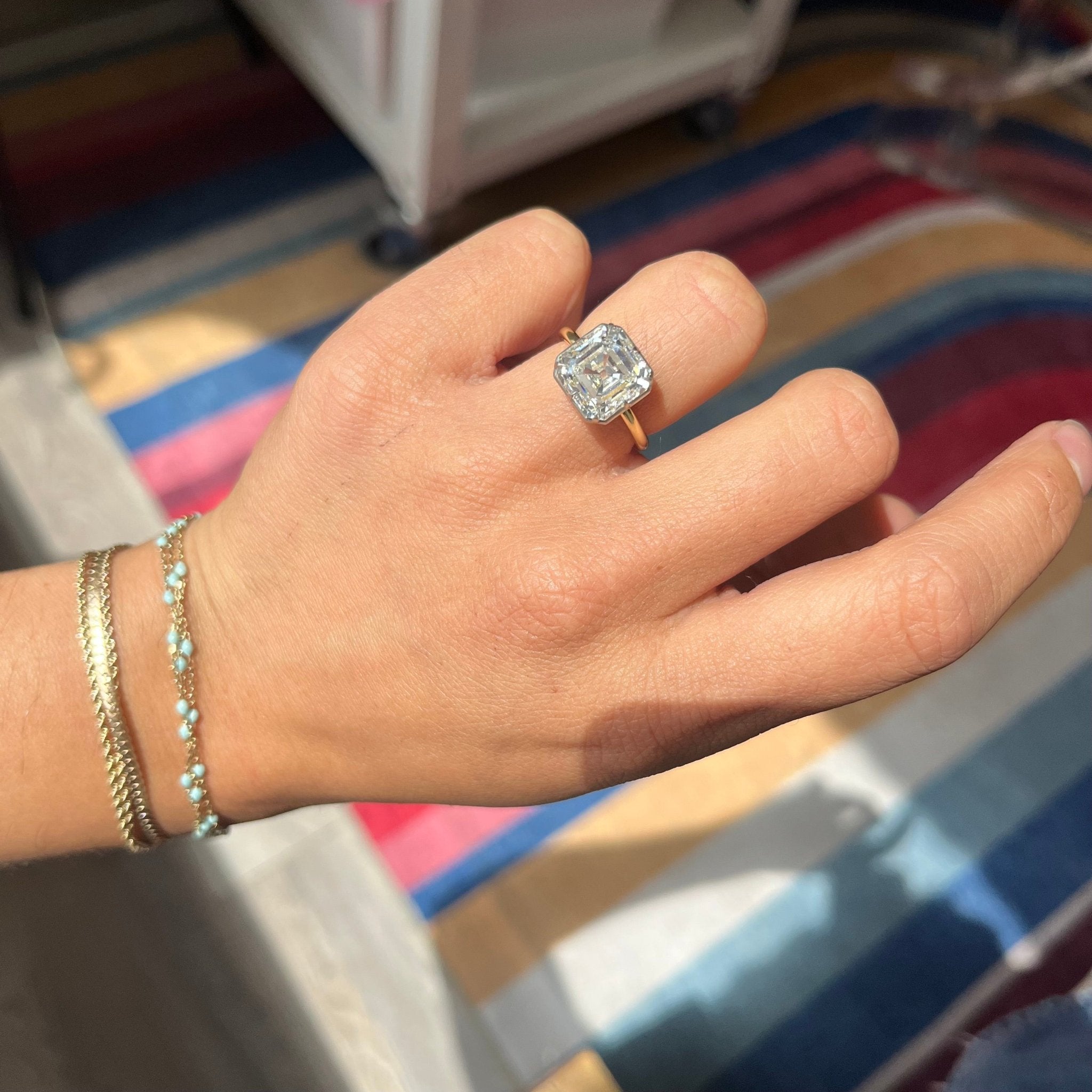 We simply could not resist not setting this gorgeous vintage asscher cut diamond! Chunky, bright and super prismatic - she is spectacular in our modernized Fairfax setting. Its the perfect blend of old elements with contemporary lines. Beyond elegant and just timeless!