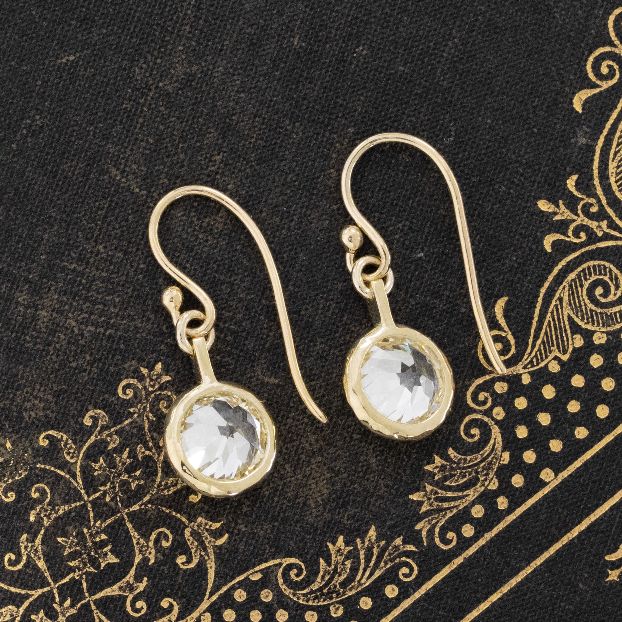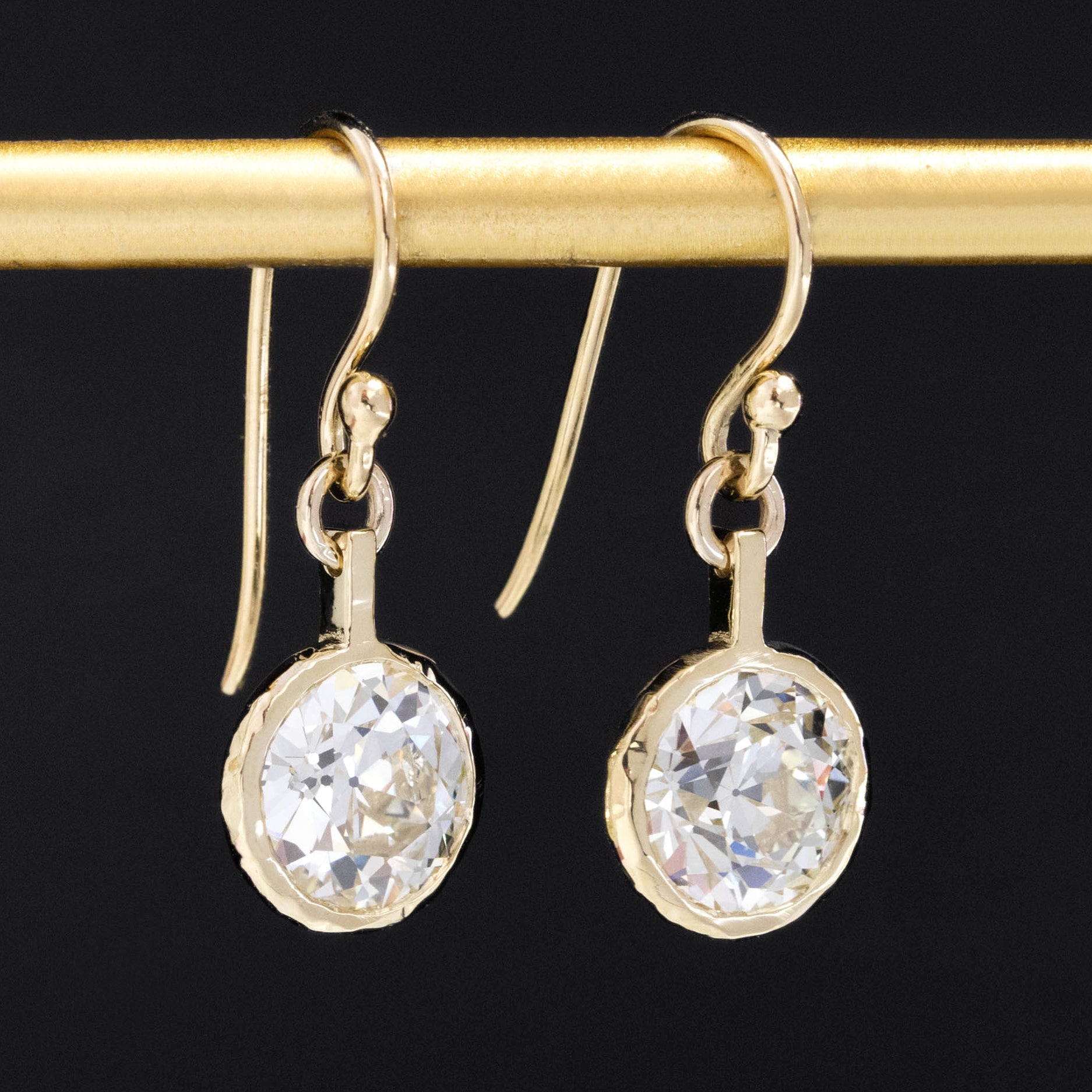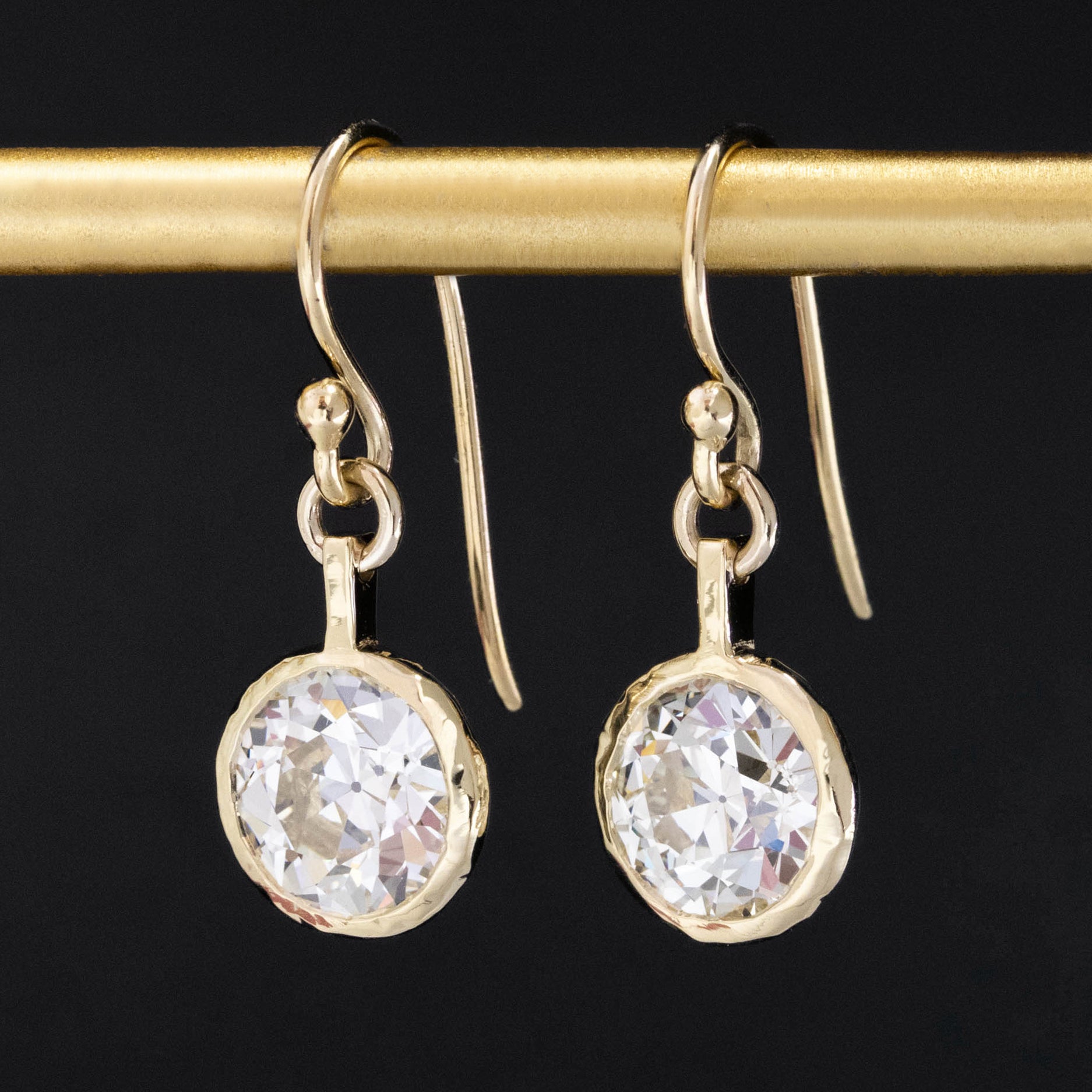 The best mix of old and new, if you ask me! The old European cut diamonds are your "classic" flavor OEC - chunky facets, prismatic and super lively- truly like little sparklers on the ears. Set in sleek and simple bezel on the more rustic design, giving them a charming artisanal vibe. I designed the drops to be slightly lower on the lobes as well - a little flirty without losing the elegance of the pair. I adore how the diamonds catch light and colors with every movement!