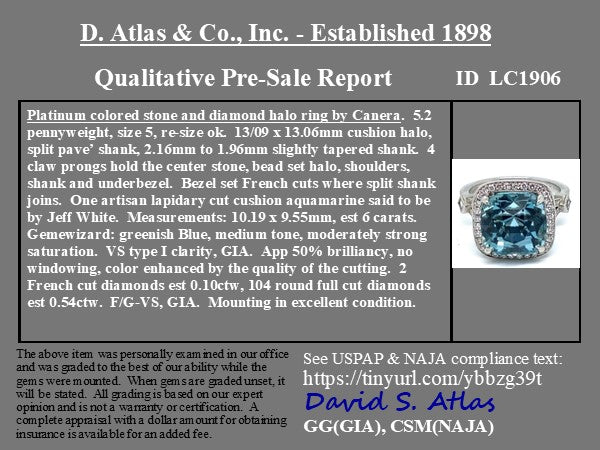 6.64ctw Aquamarine & Diamond Halo Ring by Canera