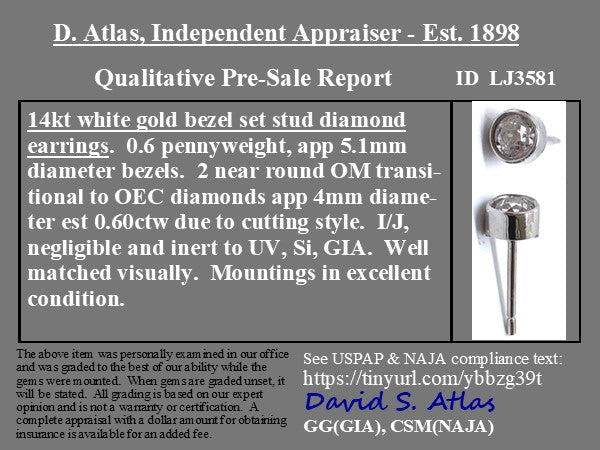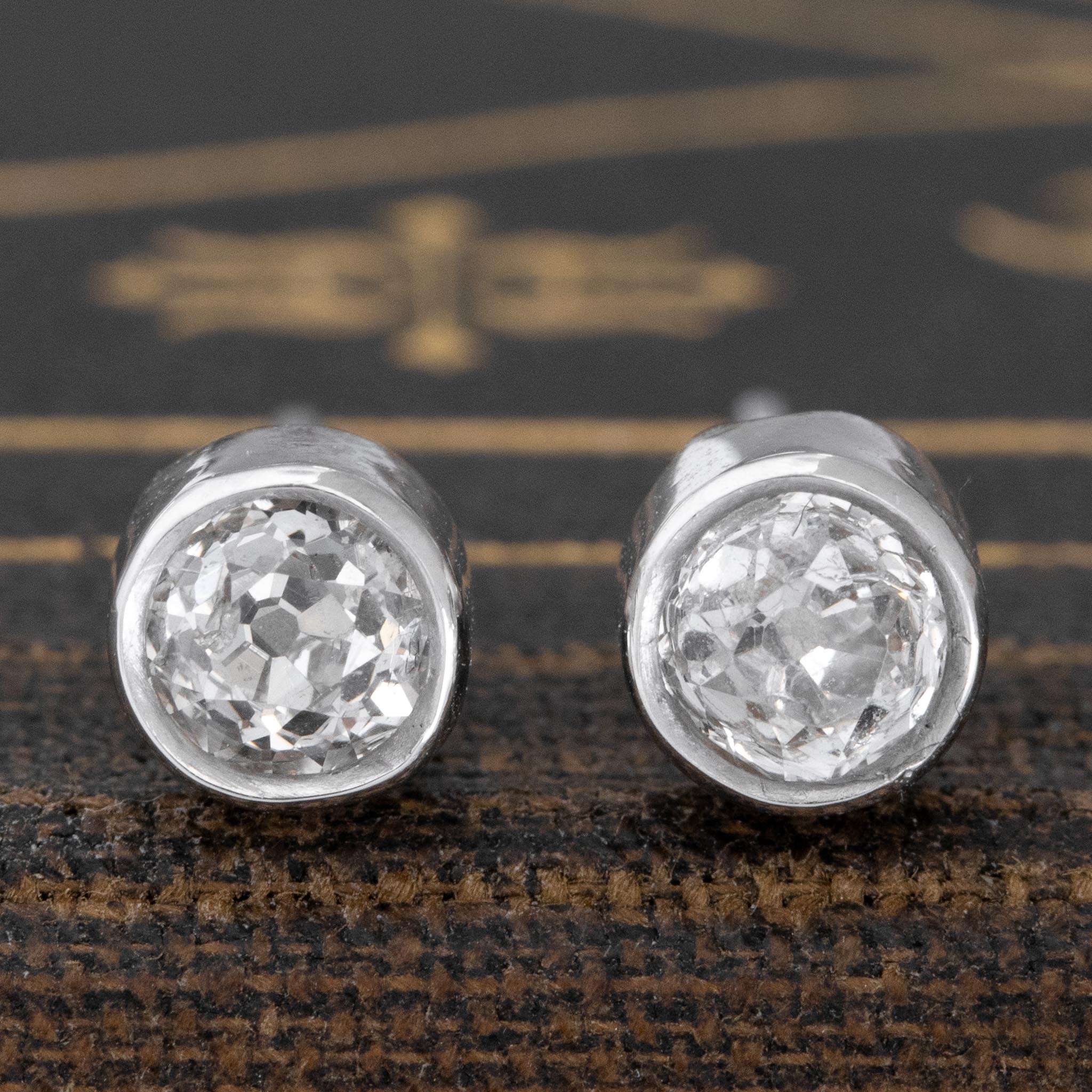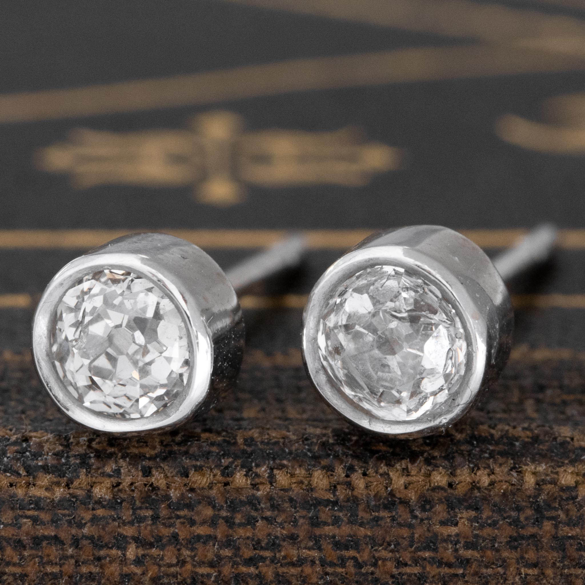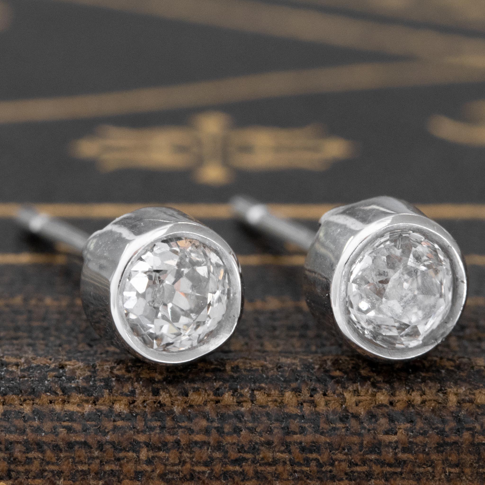.60ctw Old Mine Cut Diamond Bezel Stud Earrings