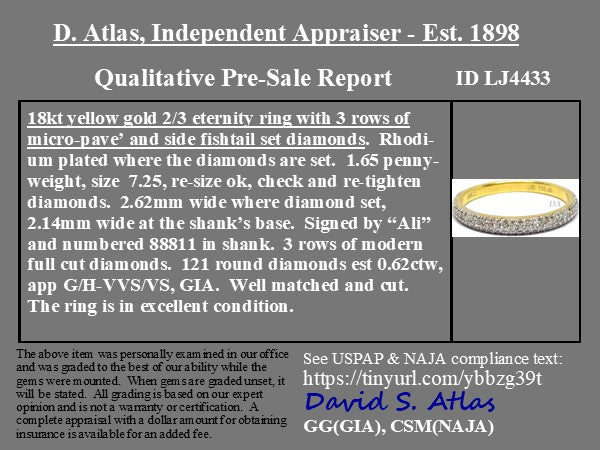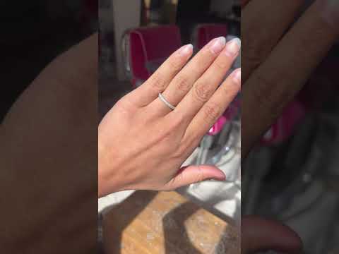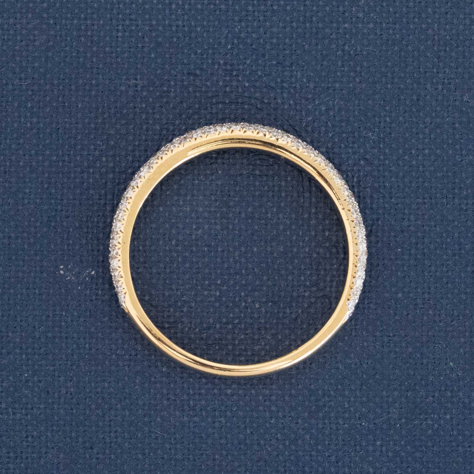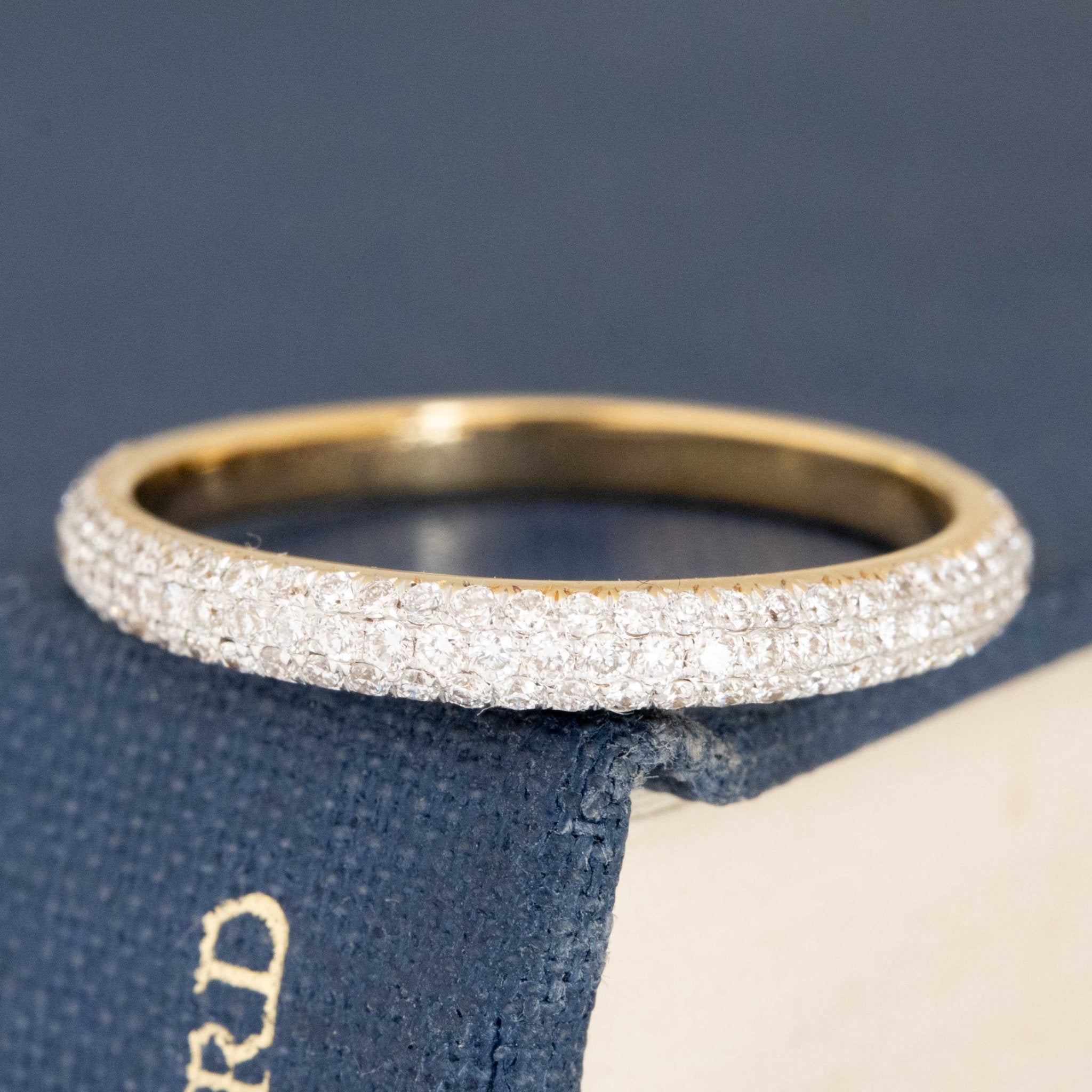 Dainty and feminine half eternity band, set with twinkling round diamonds! Low profile and slender, it will stack perfectly with almost any engagement ring, as well as other bands.