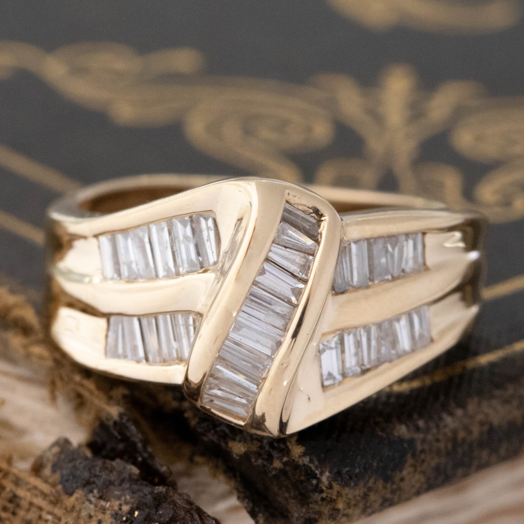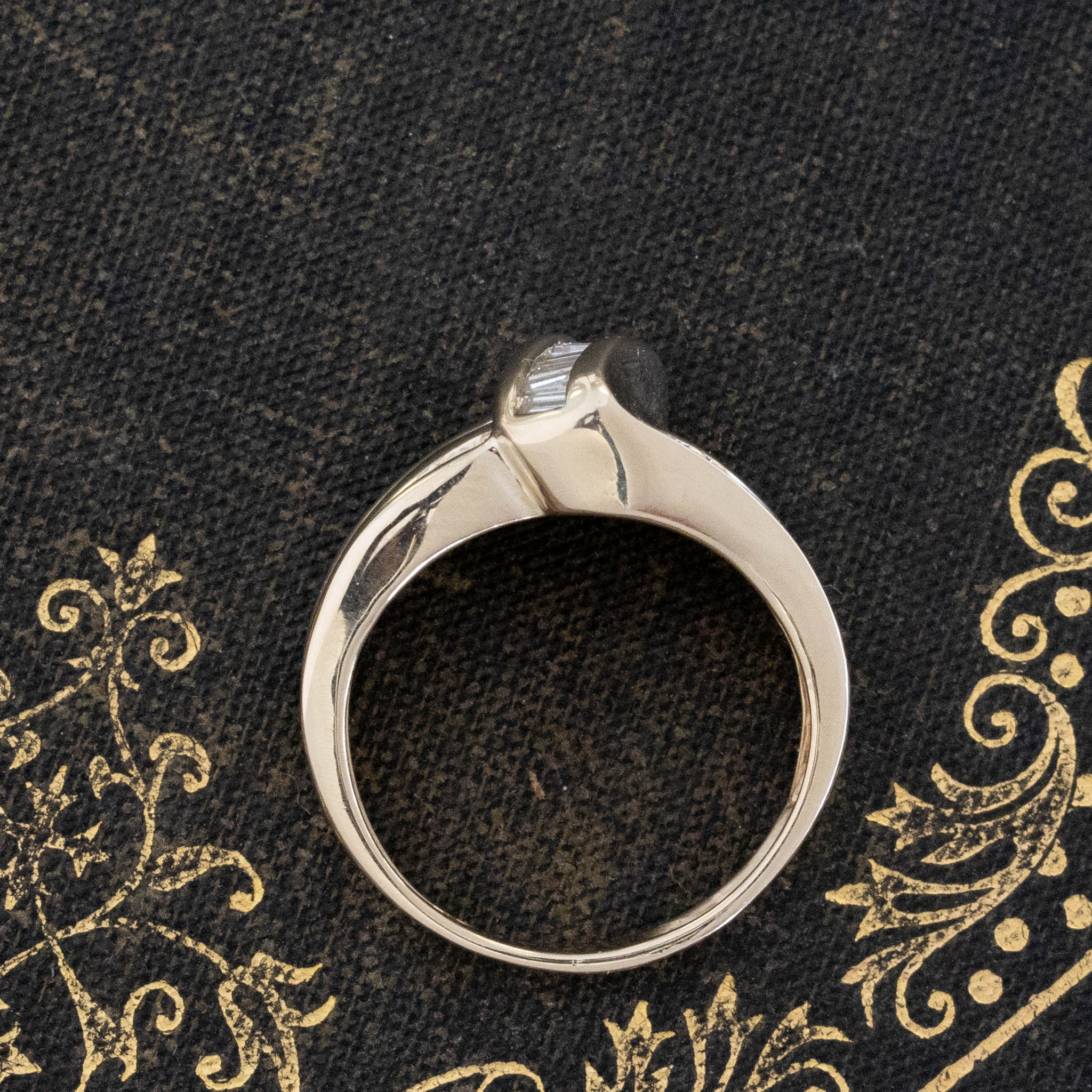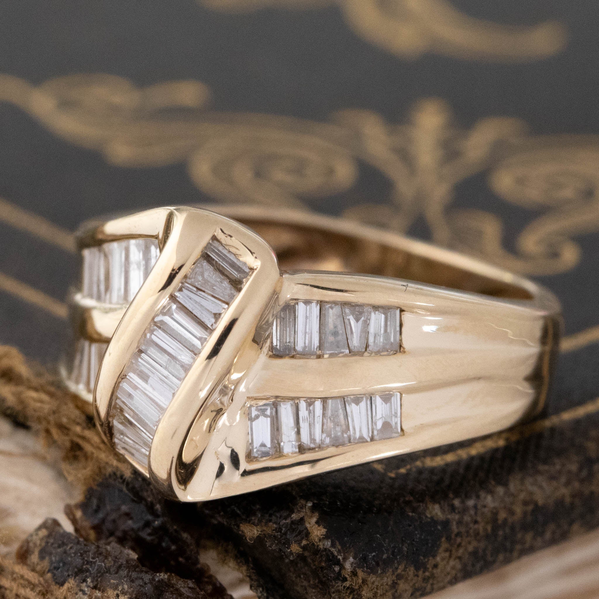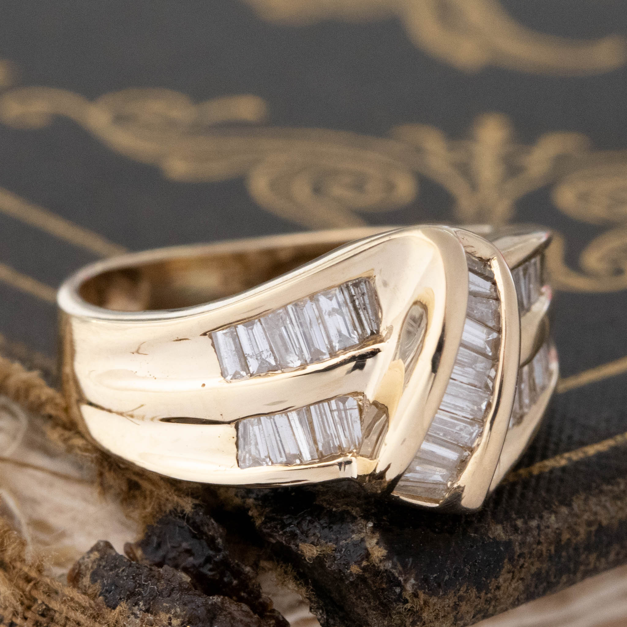 Blast from the past! This twist ring, set with baguettes, is the perfect nod to the 80s. Gorgeous worn on the right hand!