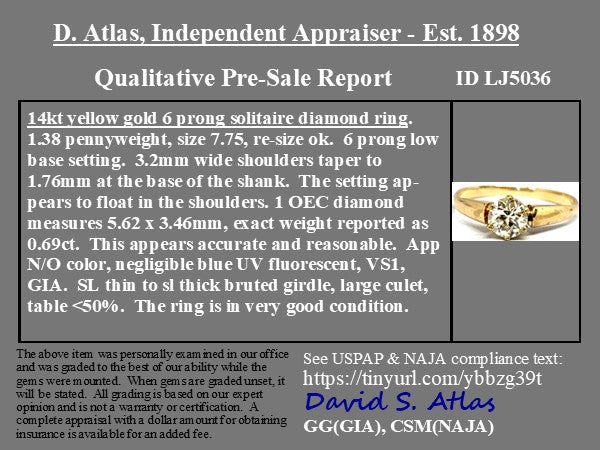 - Diamond is natural and Earth-mined, est. to be N/O color & VS1 clarity. GIA Standards