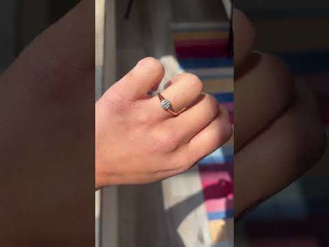 A bright and rustic old mine cut diamond in a simple bezel with a most charming shank! At the shoulders are these buckle-like details which we find to be so charming. The two-tone metal lends to the antique charm, and we think she'd make a fabulous addition to one's collection of old cut jewels.