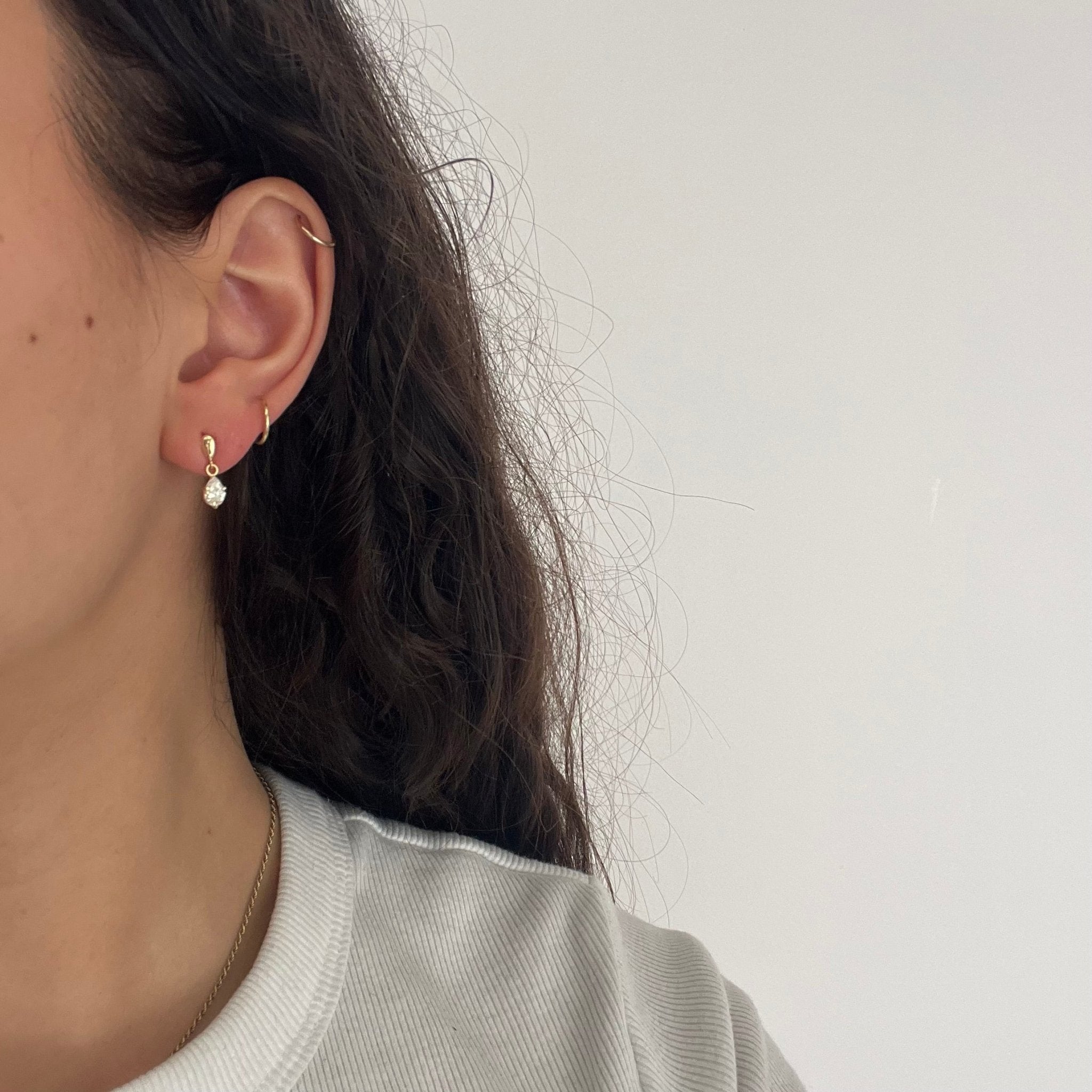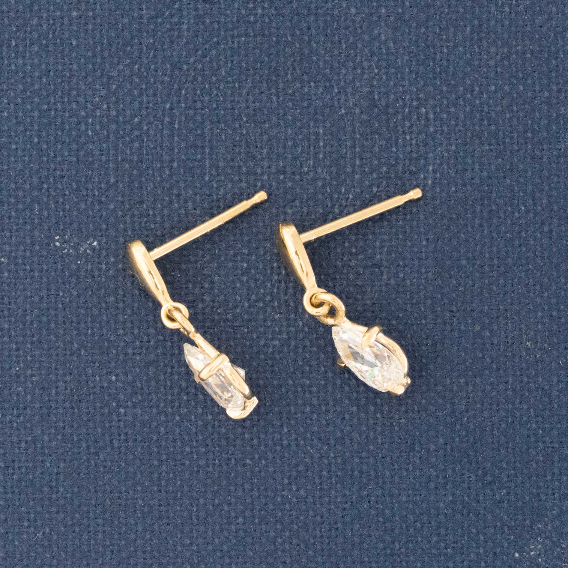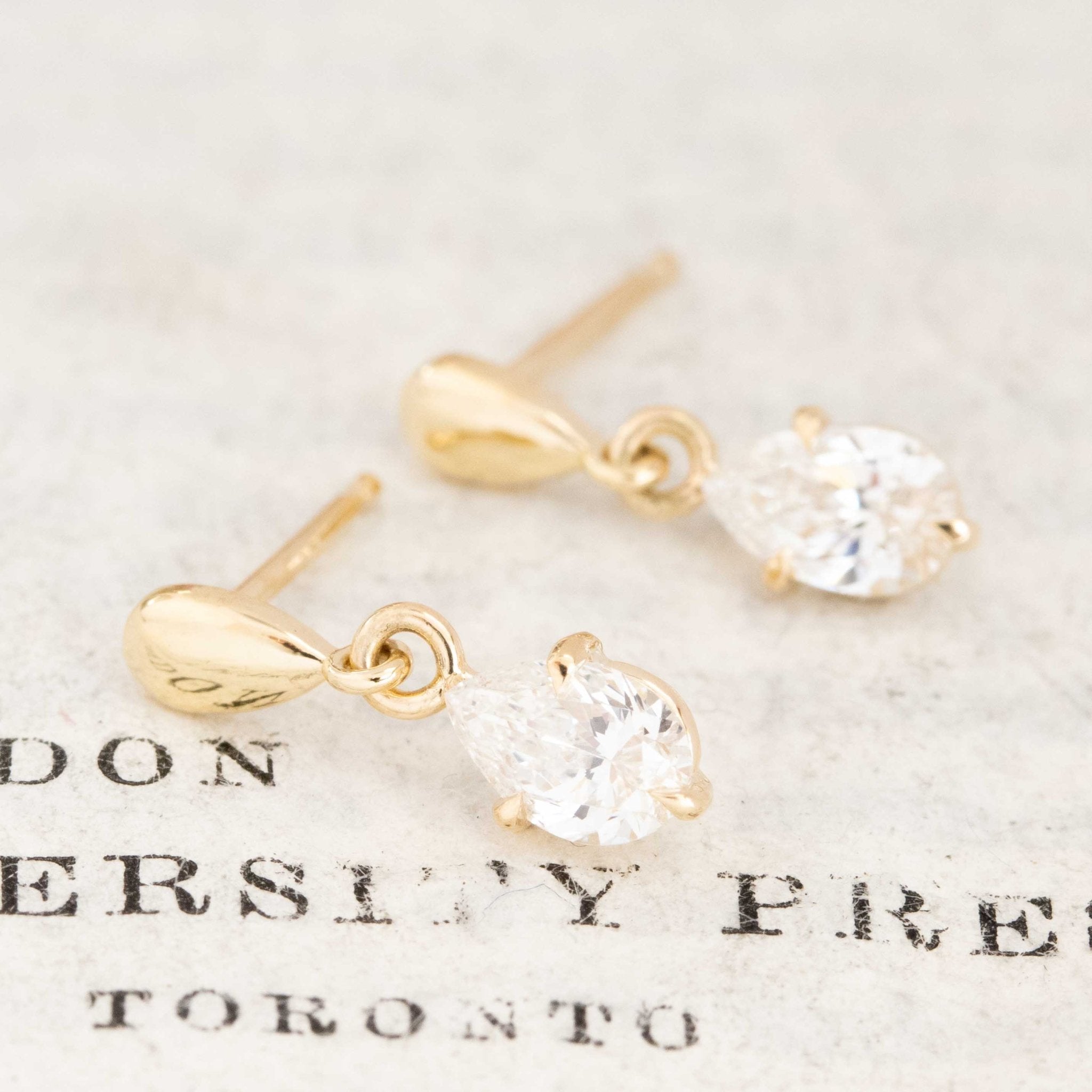 A pair of pear shaped diamonds in simple drops - she is demure and subtle but offers such an elegant, feminine vibe to her. Perfect for daily wear!