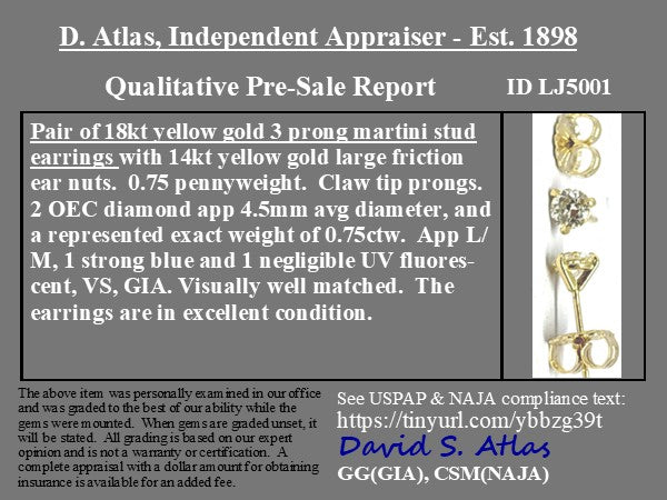 - Diamonds are estimated to be L/M colors, VS clarities. GIA Standards