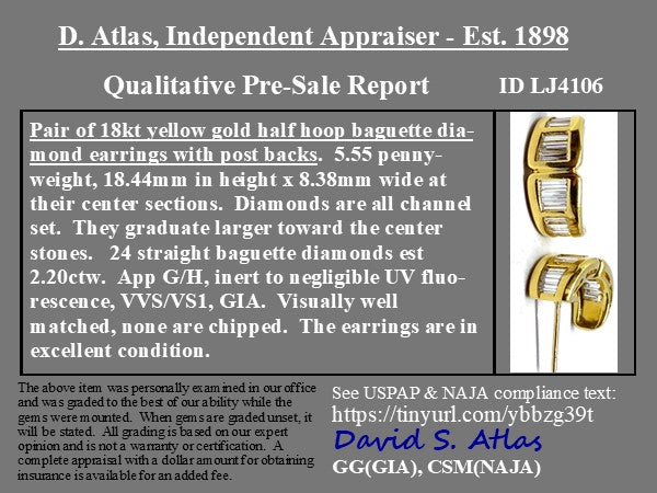 2.20ctw Vintage Baguette Cut Diamond Huggie Earrings