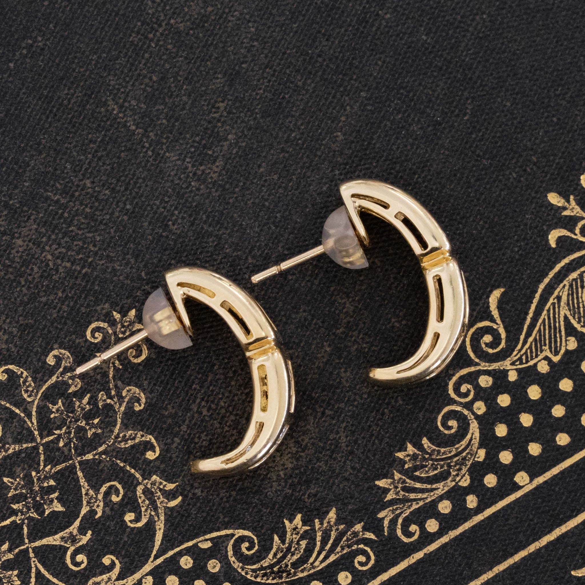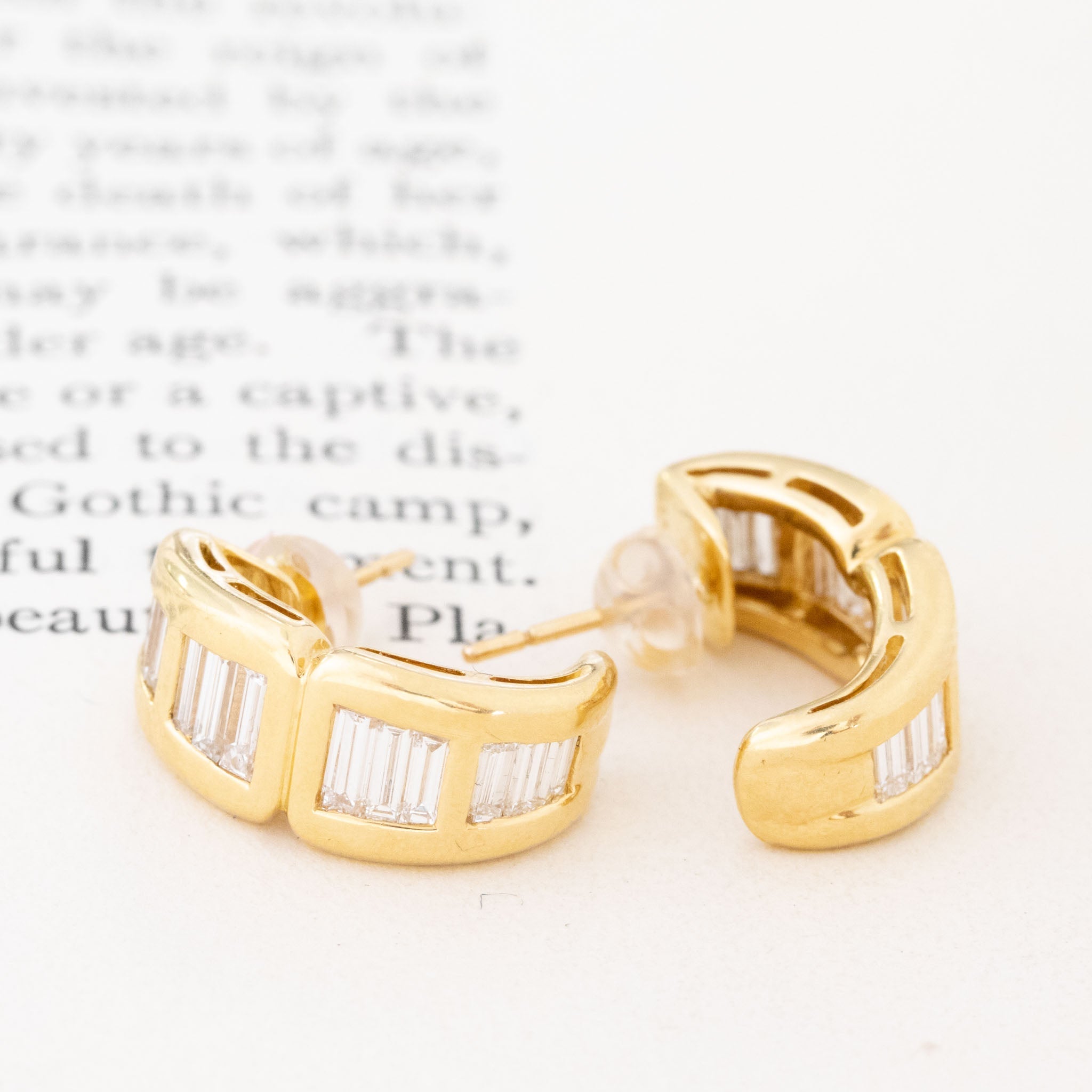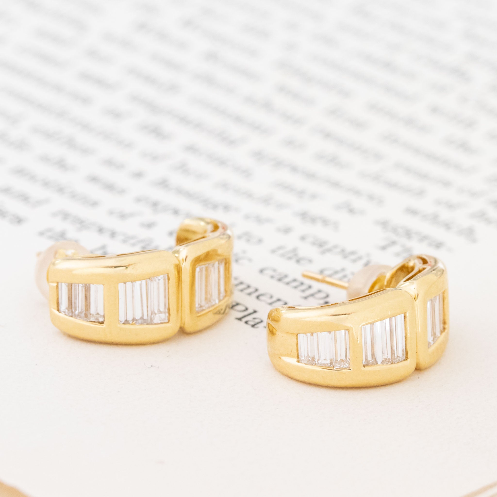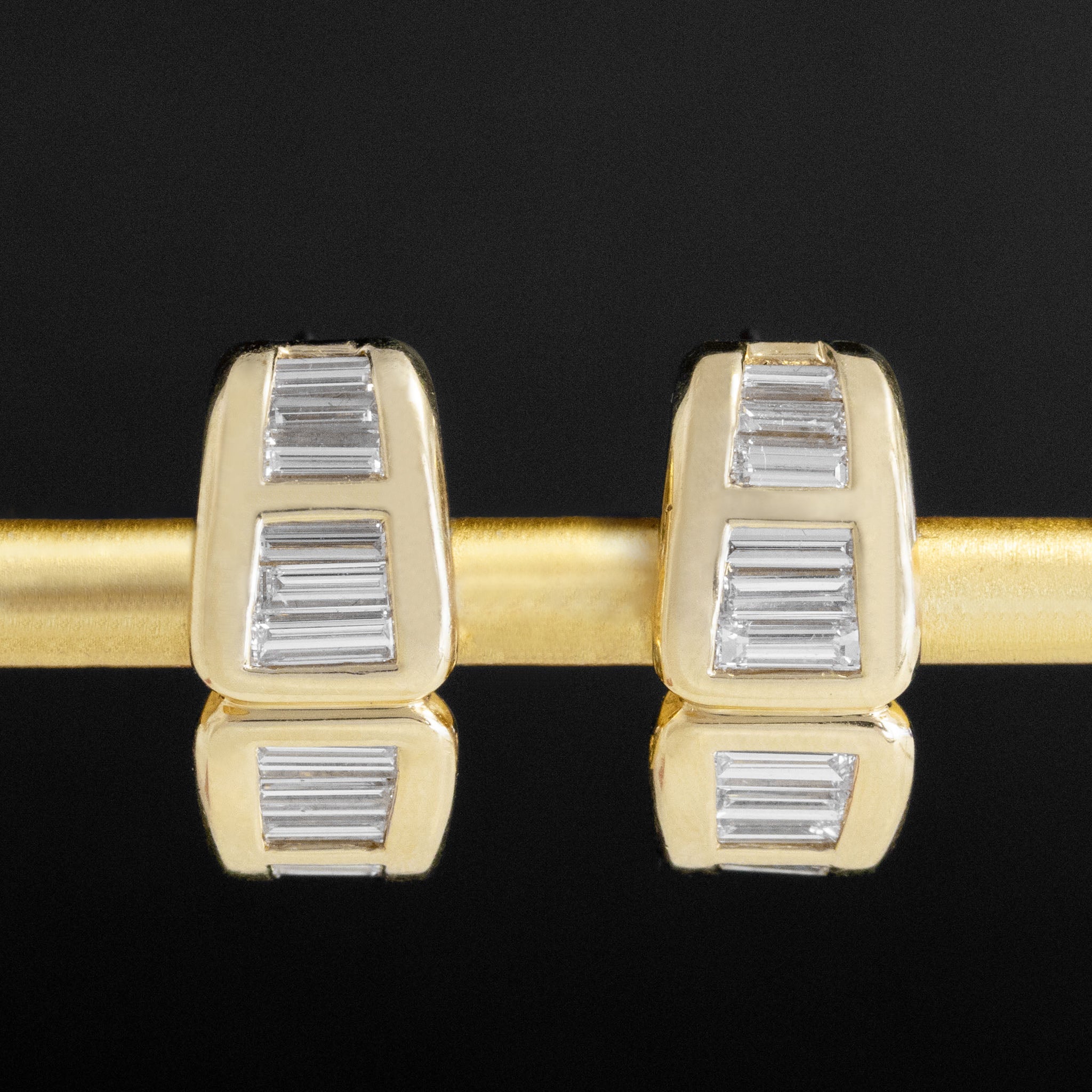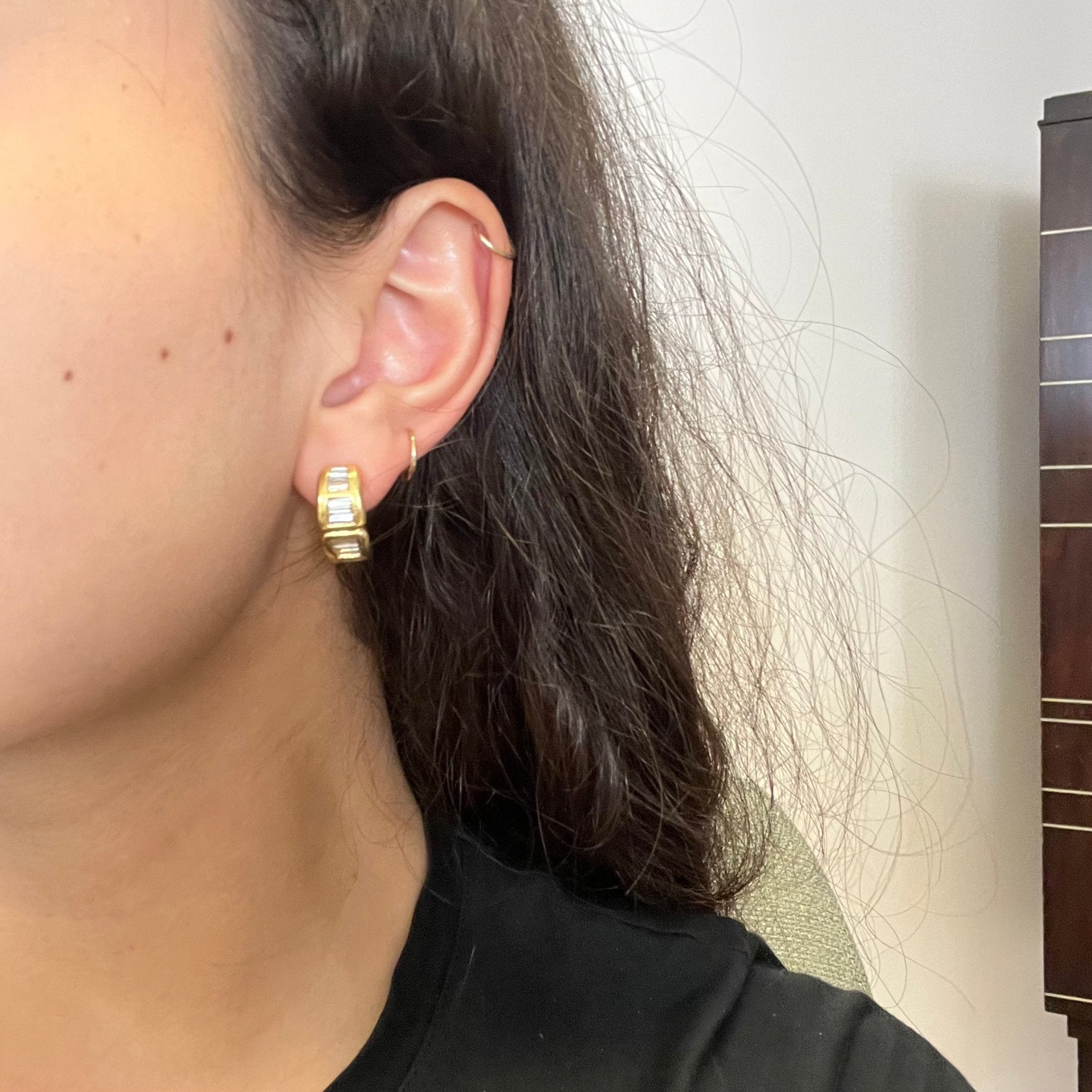 Sexy 80s vibes with these wider huggie earrings set with twinkling baguette cut diamonds! I love the bolder look on the lobes - they simply pop on the ears! Bold enough for evening wear yet sleek and simple enough for day wear as well. A great go-to pair if you are looking for a break from stud earrings.