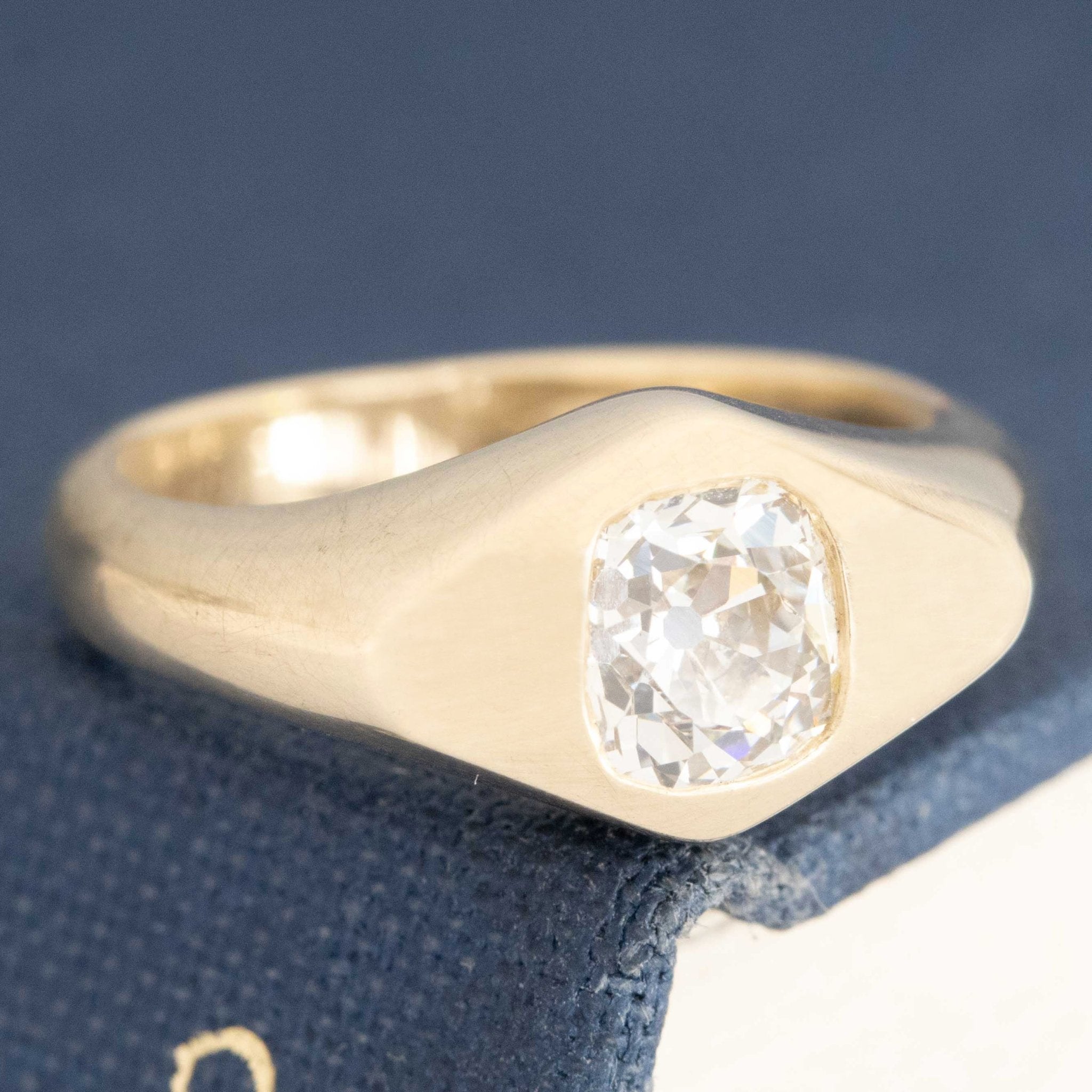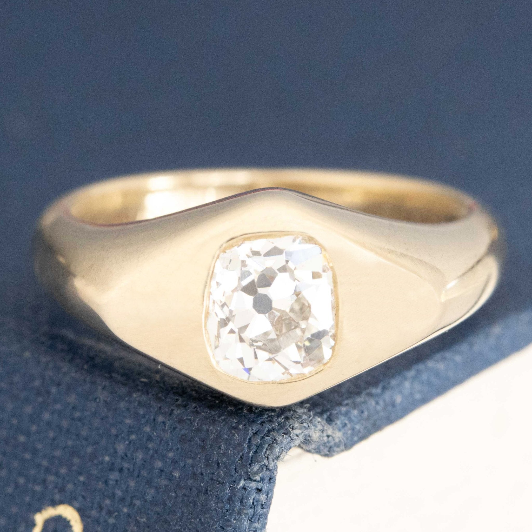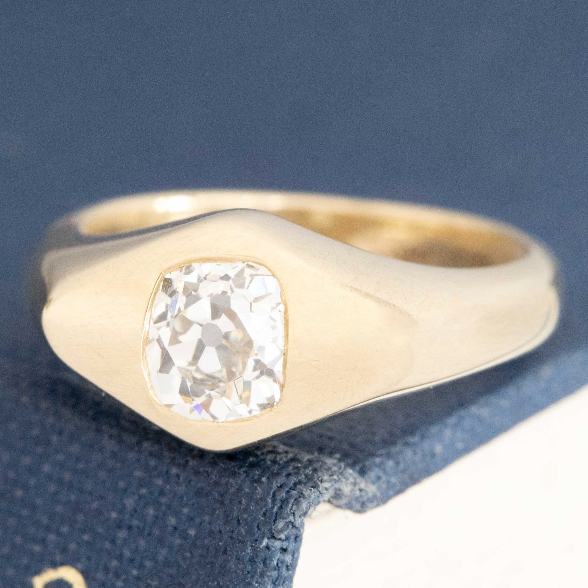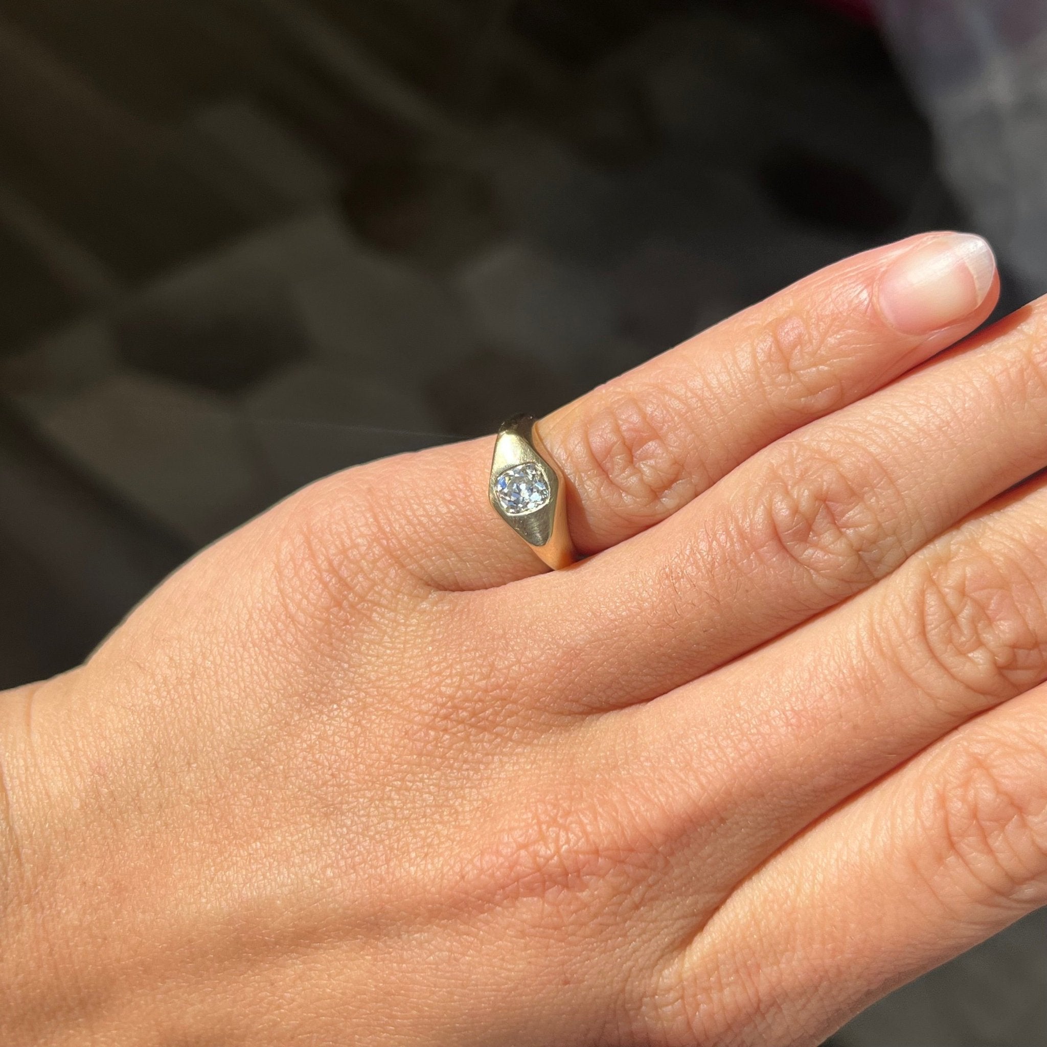 You guys have been asking us for diamond-studded pinky rings so you know we had to deliver! Inspired by antique signet rings, but in a more pinky-appropriate proportion - we went for chunky and bold gold vibes with a single diamond flush-set in the center, A little sparkle never hurt nobody! This one has a chunky, rustic old mine cut diamond with the sweetest facets.