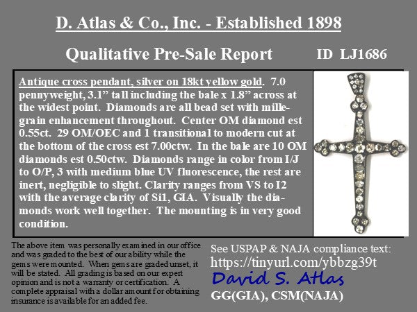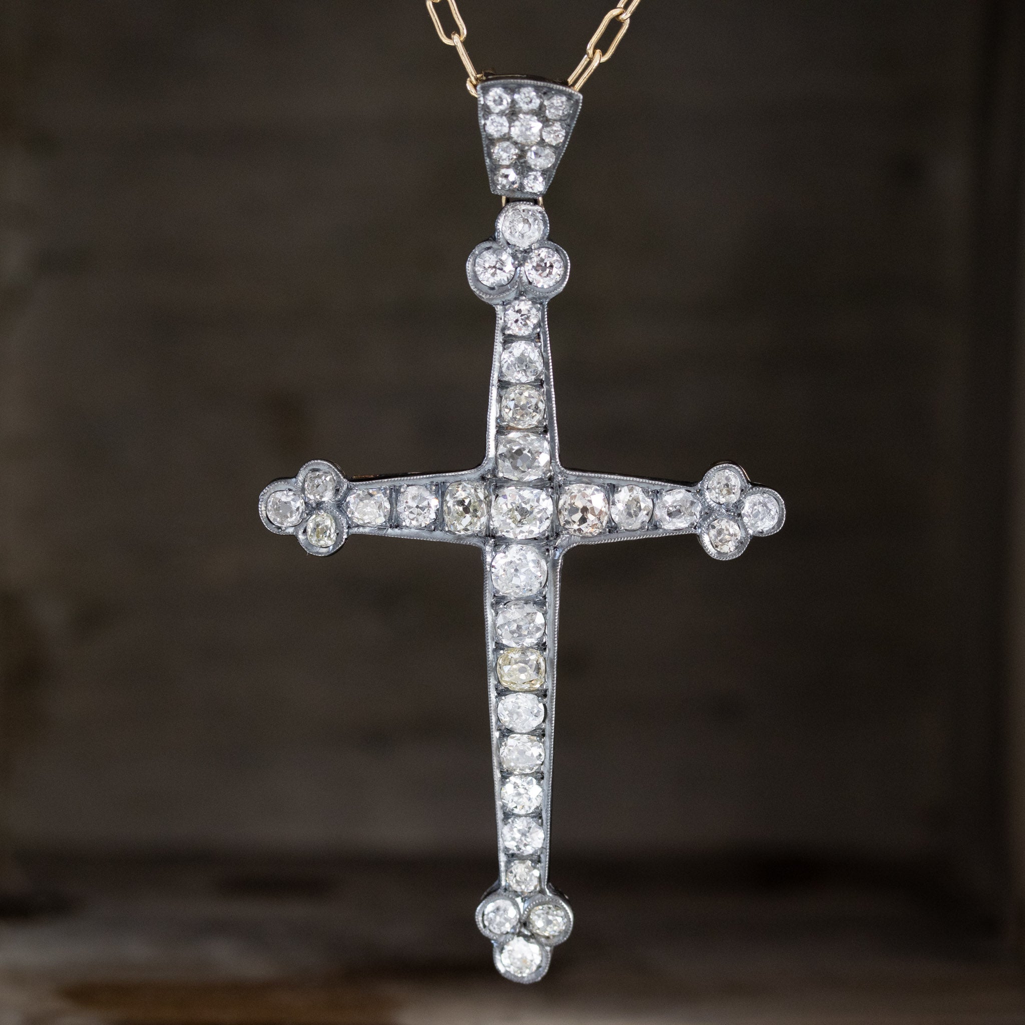 8.05ctw Antique Victorian Diamond Cross Pendant