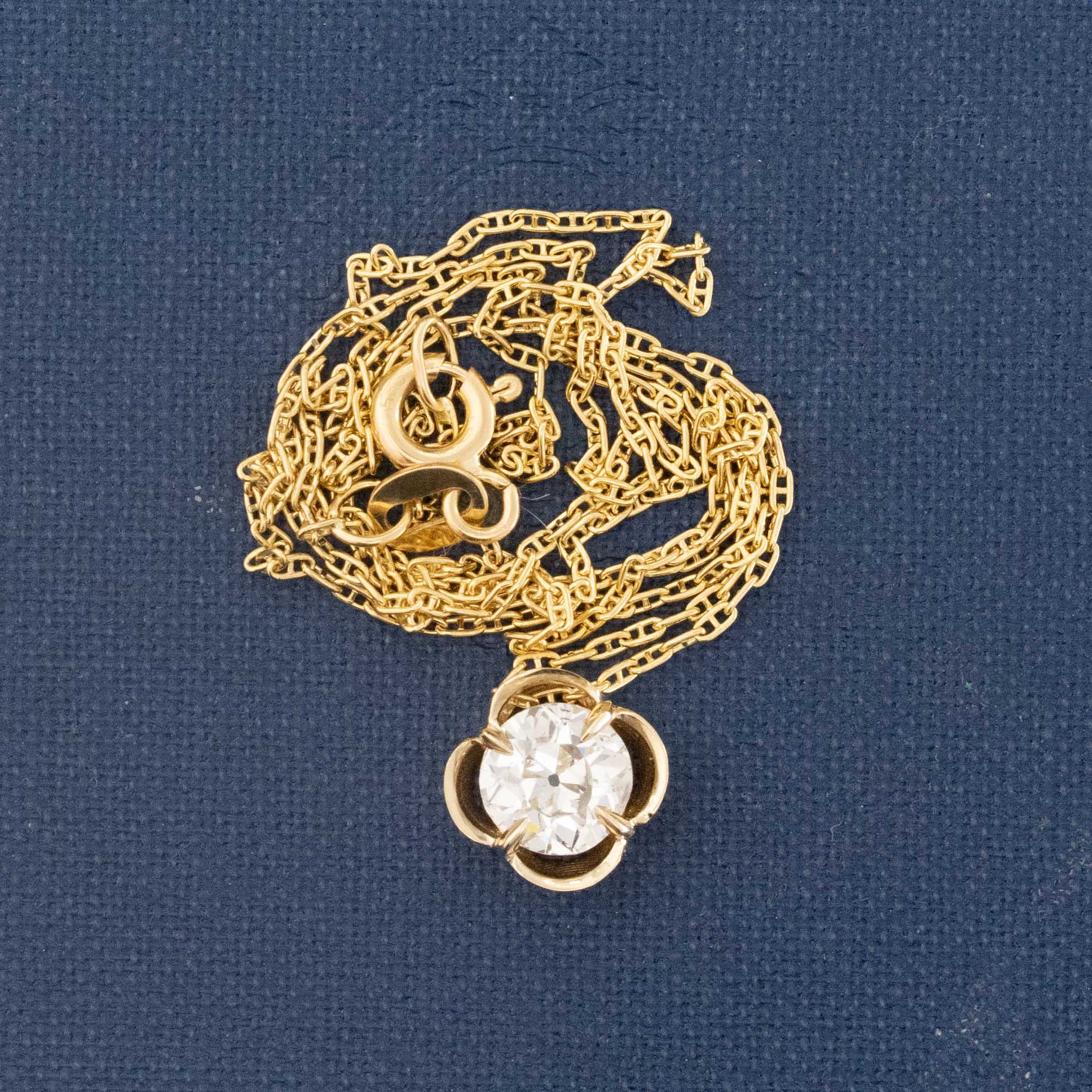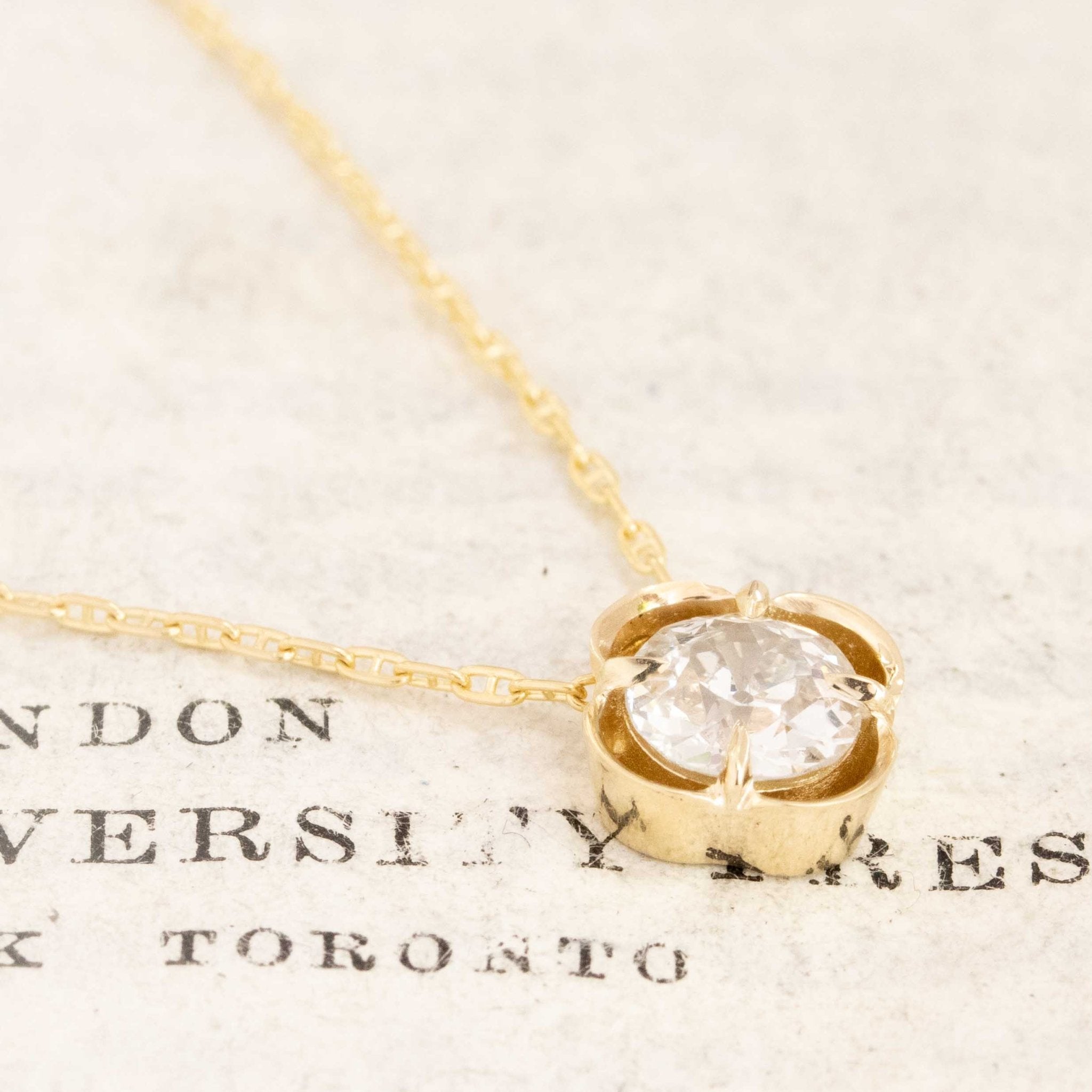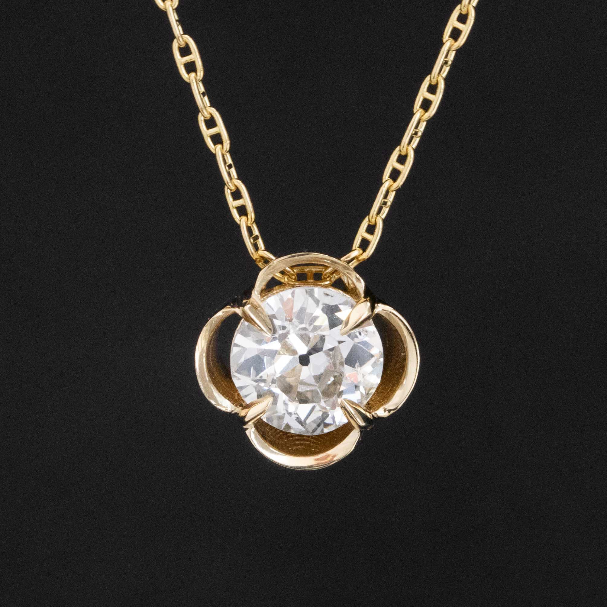 A beautiful hand-selected old European cut diamond in our clover setting is always a fave around here. The diamond is a great size and in this setting, it takes on a touch of whimsy. The perfect daily go-to piece. Strung on a vintage petite curb link chain.