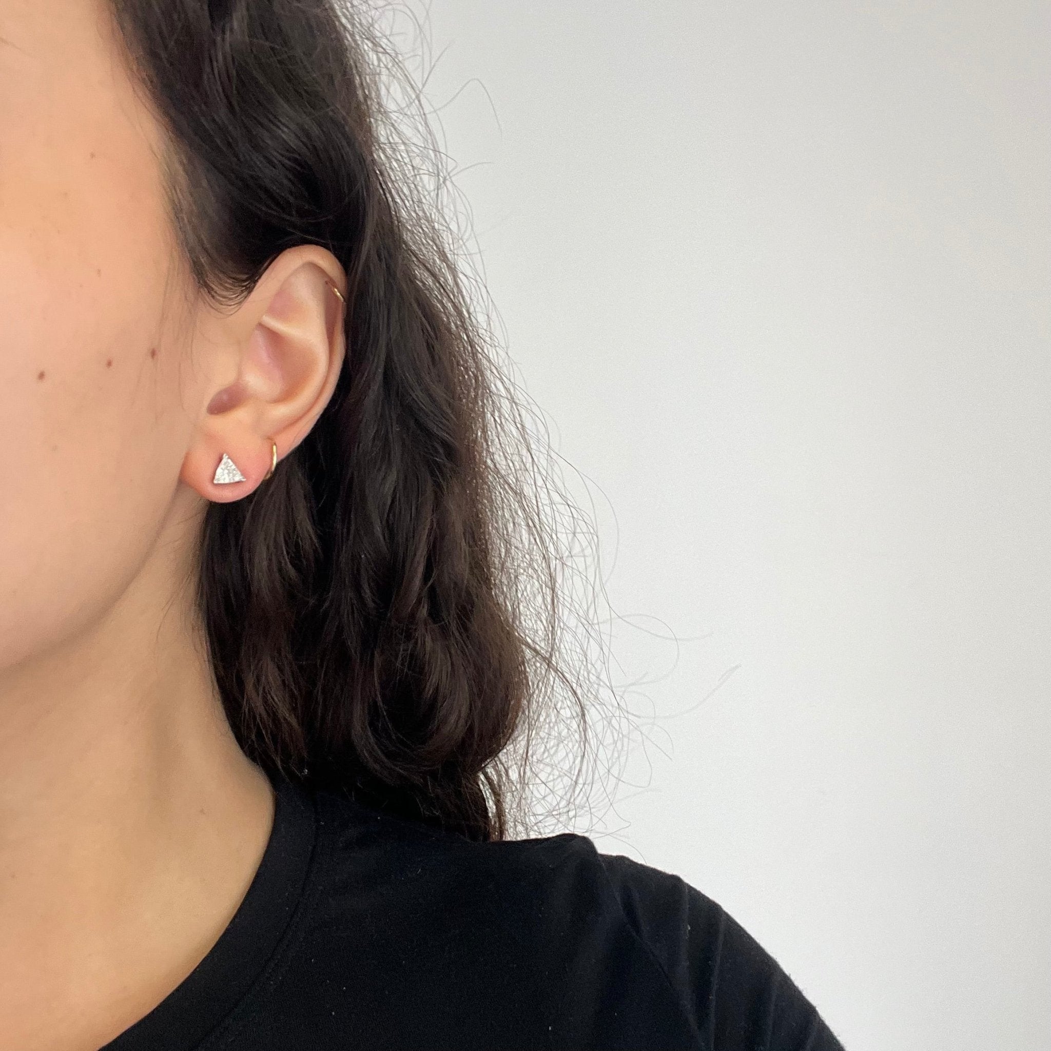 Harvested from a piece of broken up jewelry, we think this pair or triangle shaped diamonds would make for a great pair for 2nd piercings!