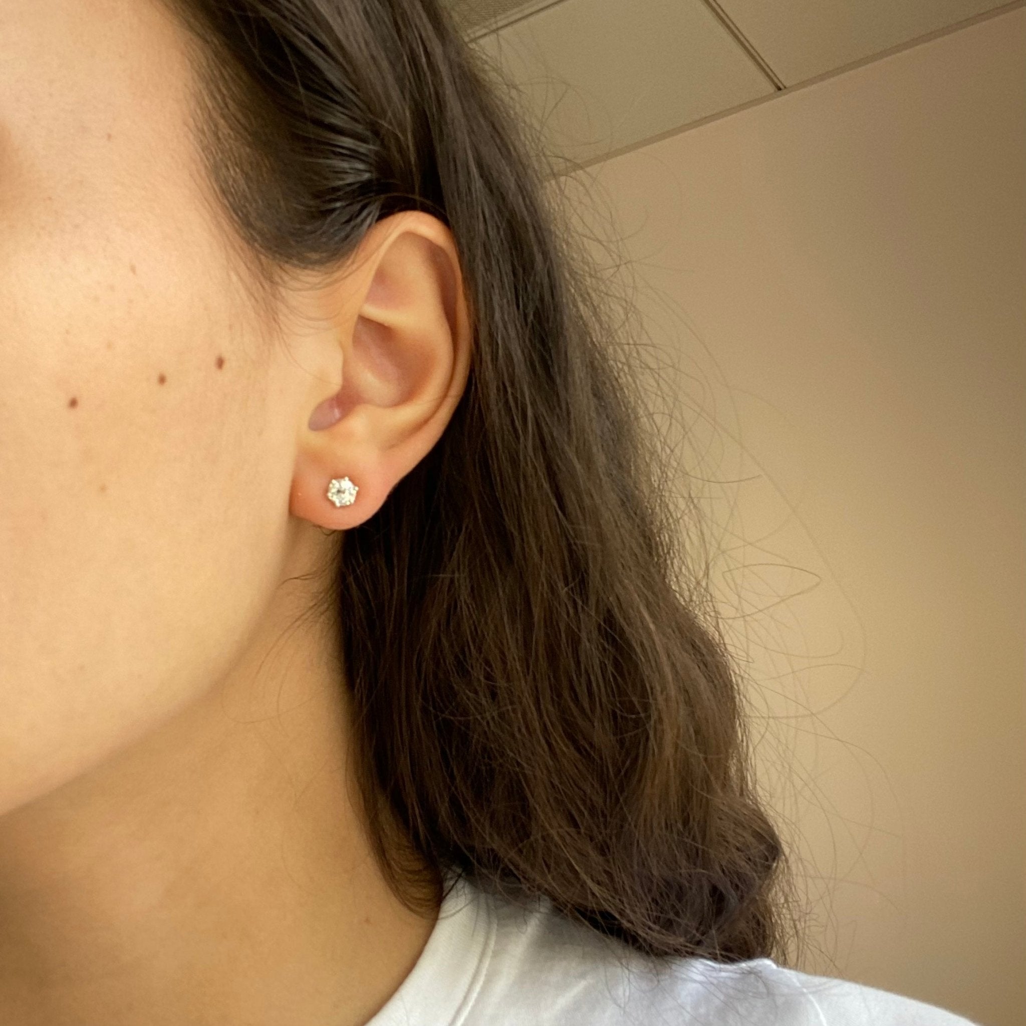 The diamonds have gorgeous makes - both super bright and lively. A great size to wear daily, or even on 2nd piercings.