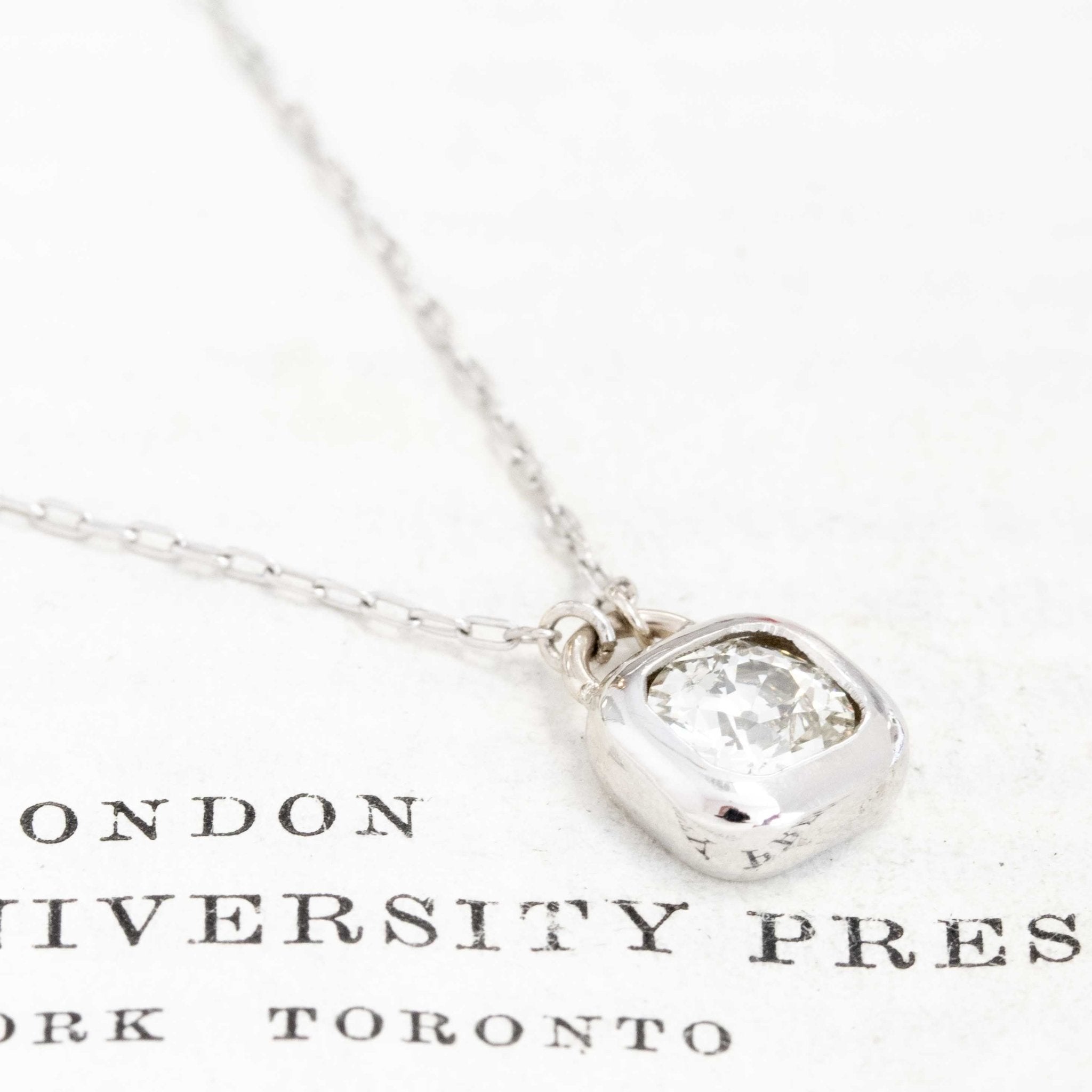 We set our chunky old European cut diamond in a hand crafted cushion shaped bezel and voila - we got ourselves a diamond pendant with clean line, but with all the unique charm of an antique diamond!