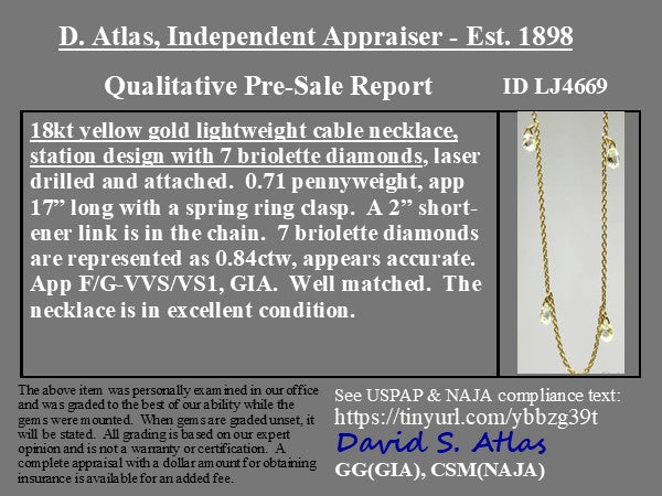 .84ctw Briolette Cut Diamond Drop Station Necklace