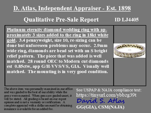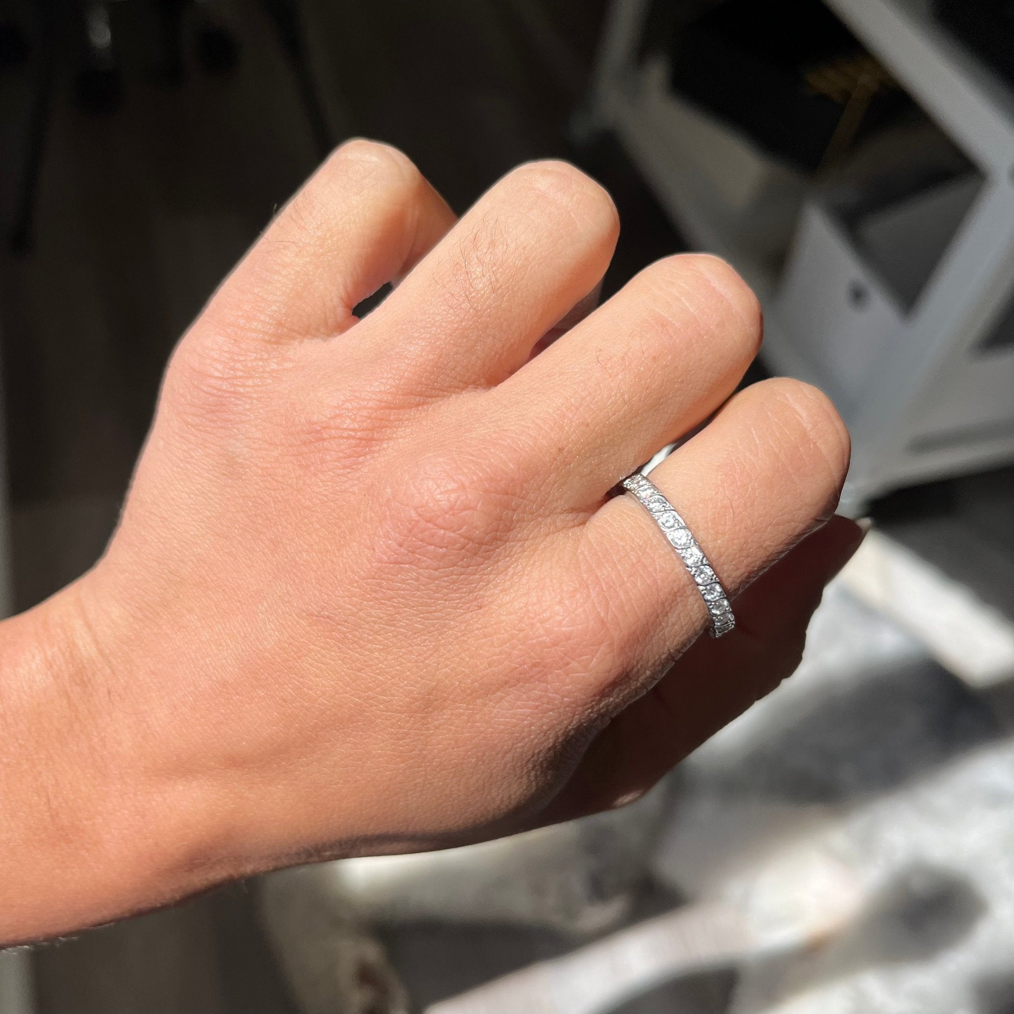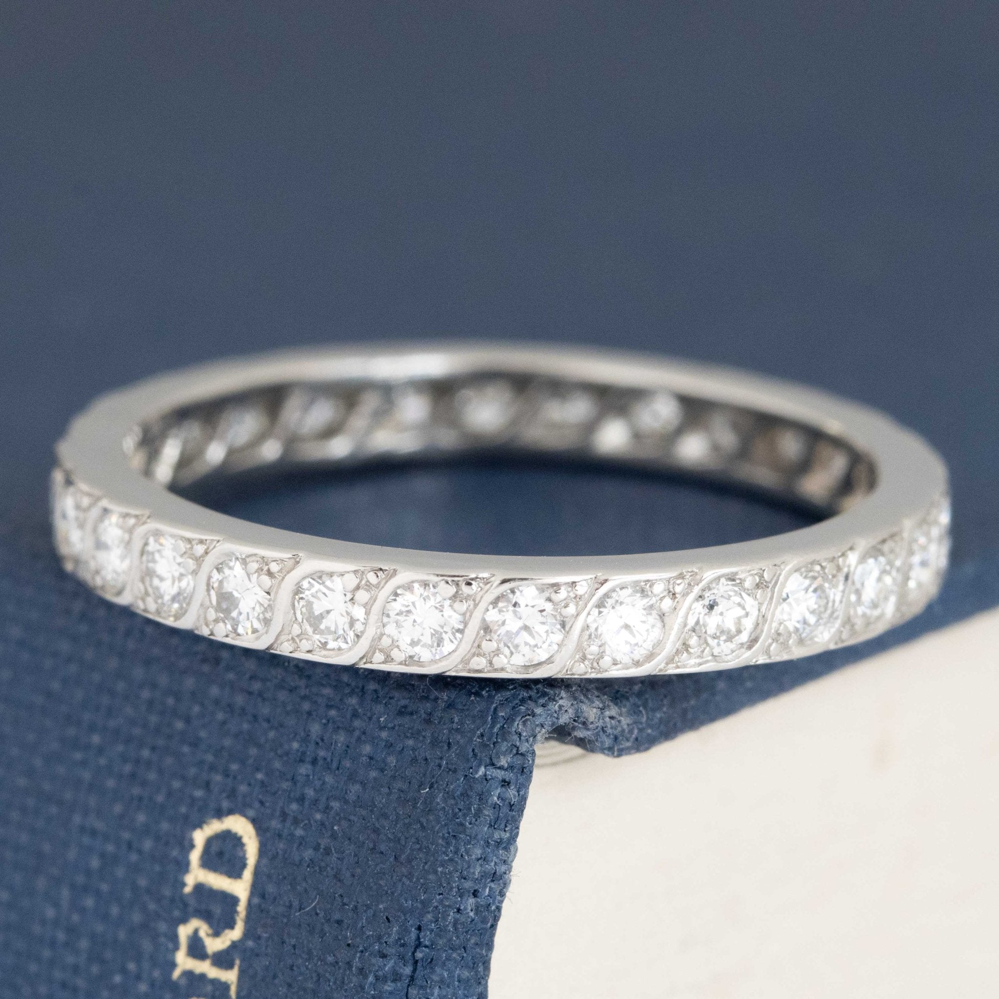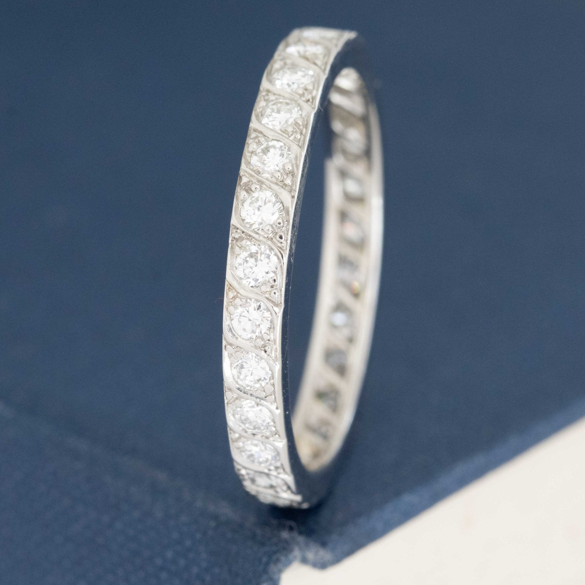 Classic eternity band - a rare find in this bigger size (note that this appears to have been sized up in its previous l ife). Set with twinkling OEC diamonds, its the perfect band for both bride and groom!