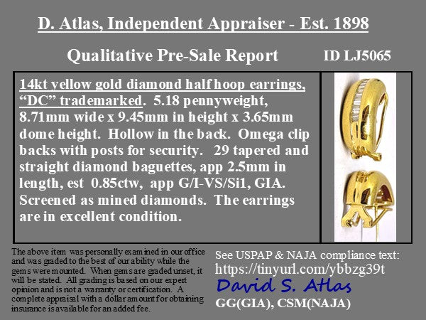 .85ctw Vintage Baguette Cut Diamond Huggie Earrings