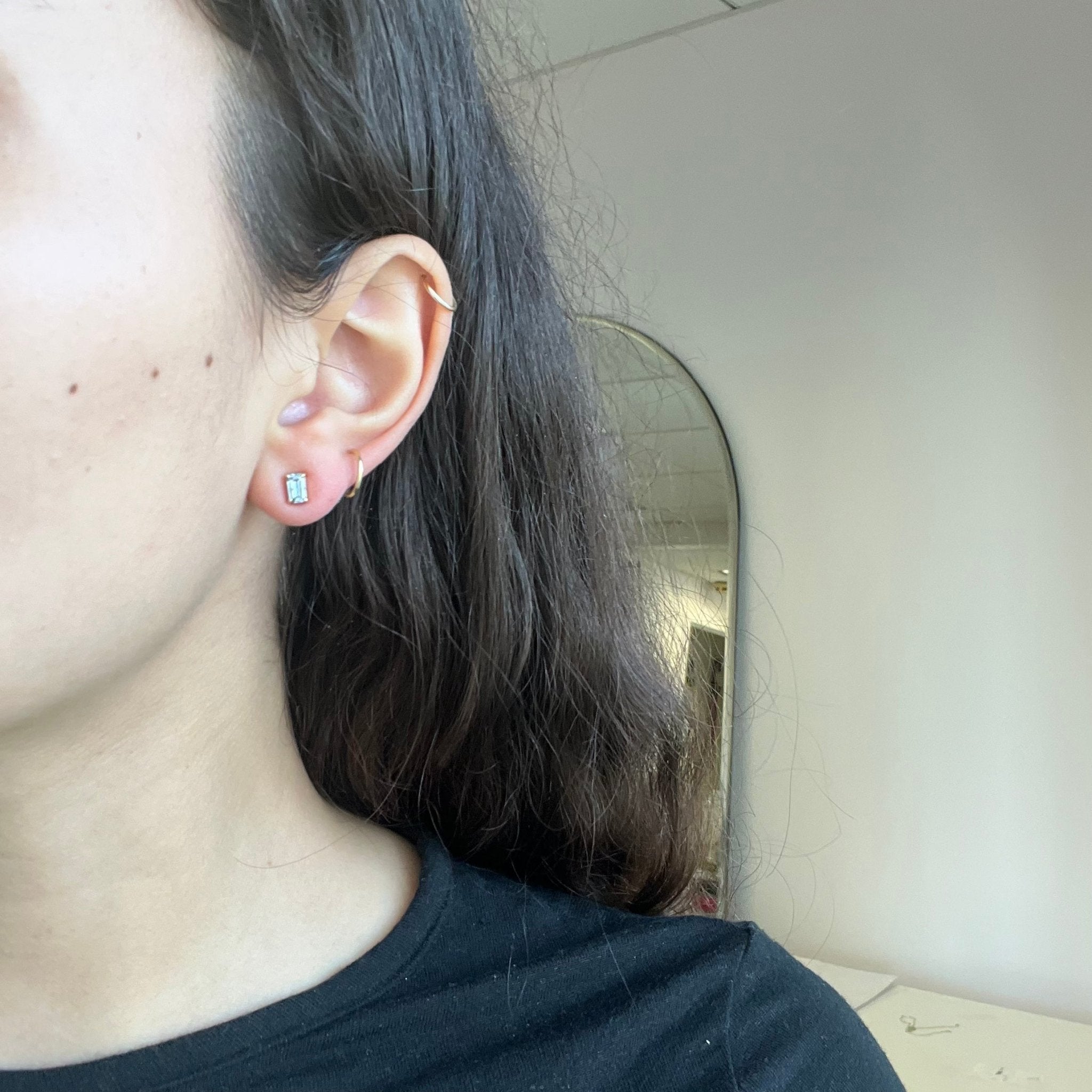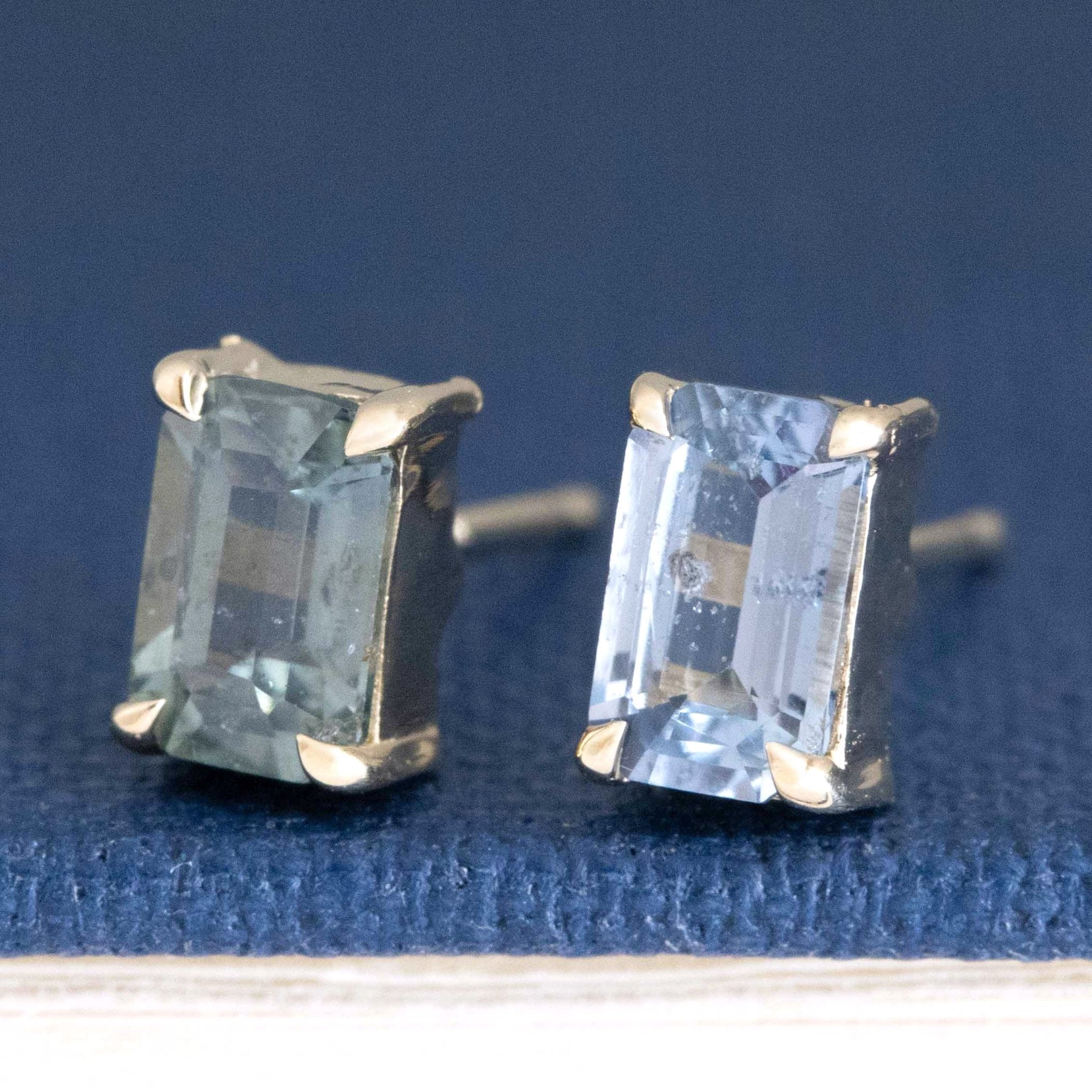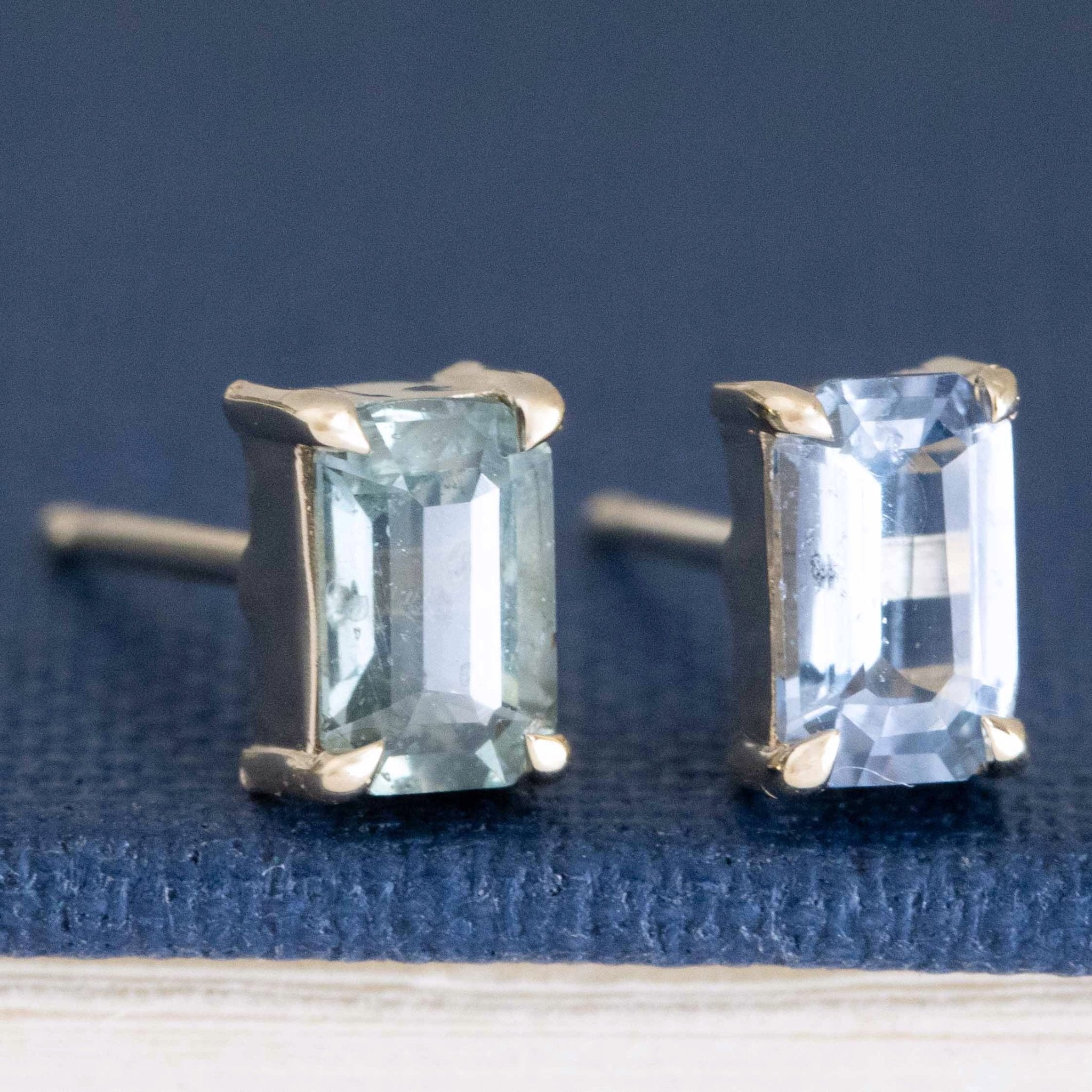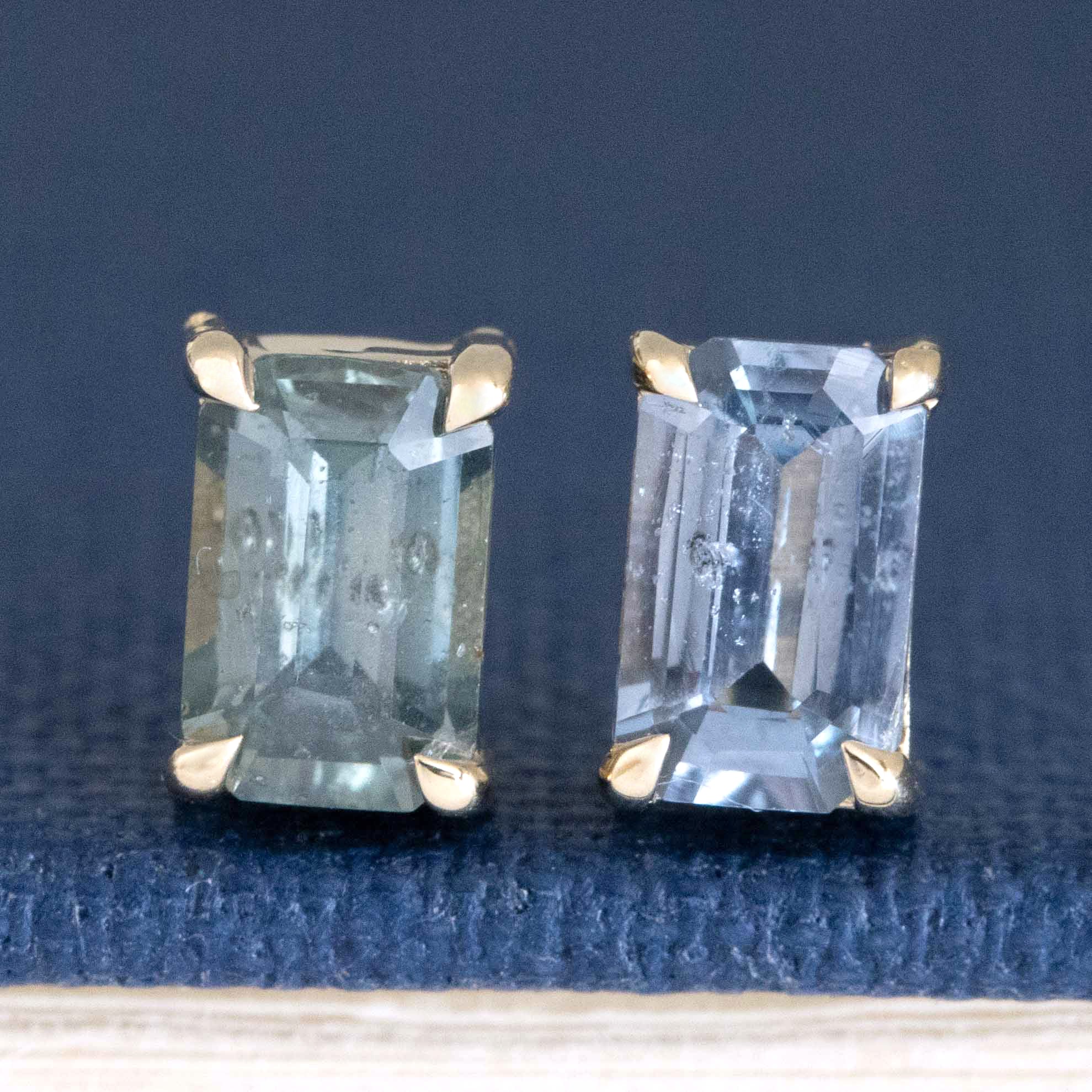 These sweet, blue-y babies have great spread and look beautiful in 14kt yellow gold. The prongs allow for a look that is almost floating along the lobes. Perfect studs, if you ask us!