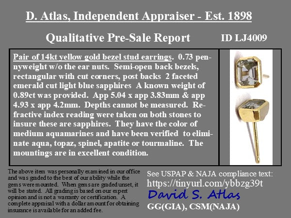 .89ctw Sapphire Bezel Stud Earrings
