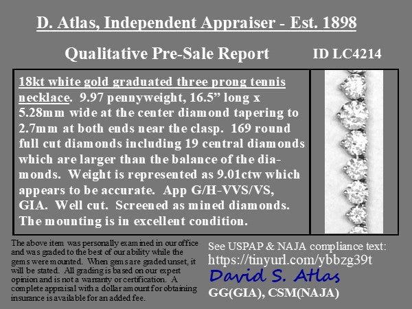 9.01ctw Round Brilliant Cut Diamond 3 Prong Tennis Necklace