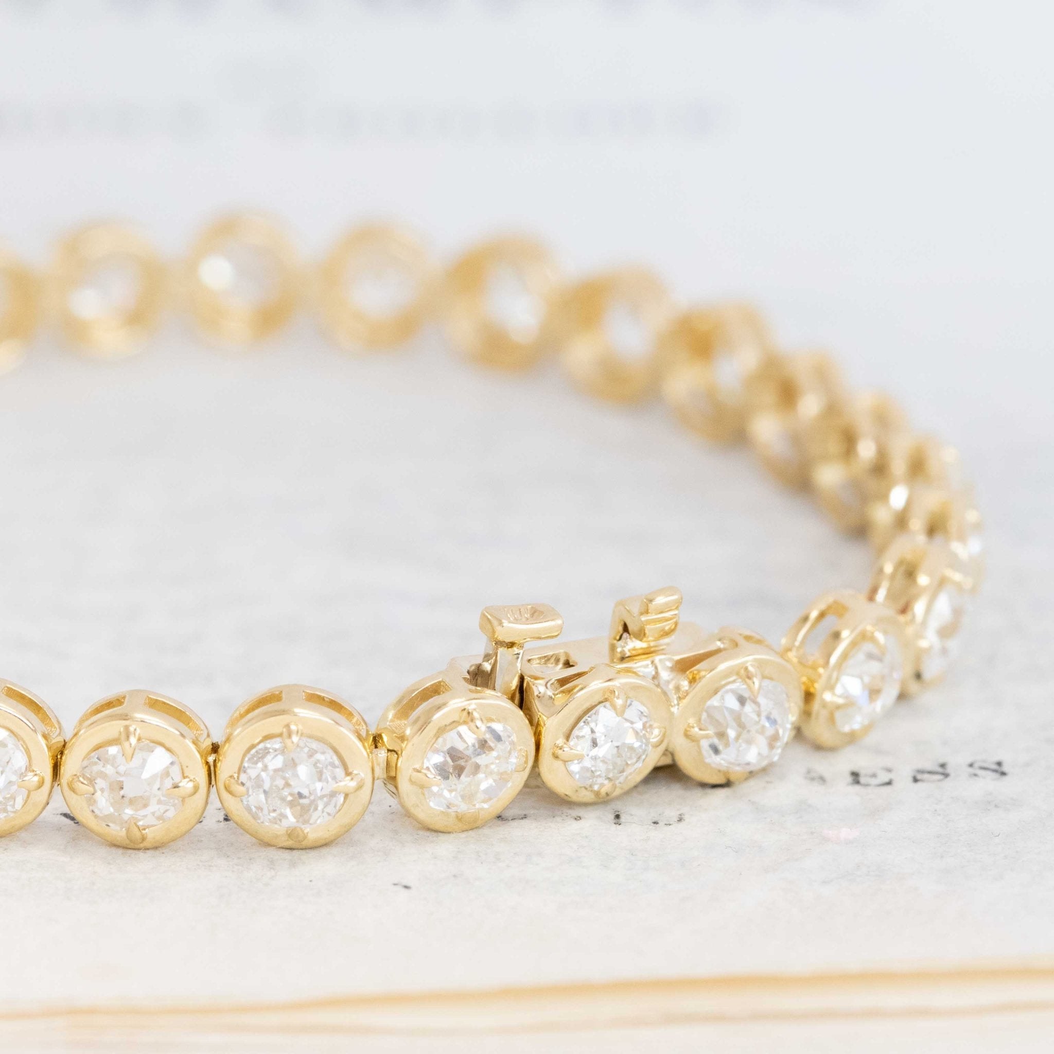 9.04ctw Old European Cut Diamond Yellow Gold Tennis Bracelet