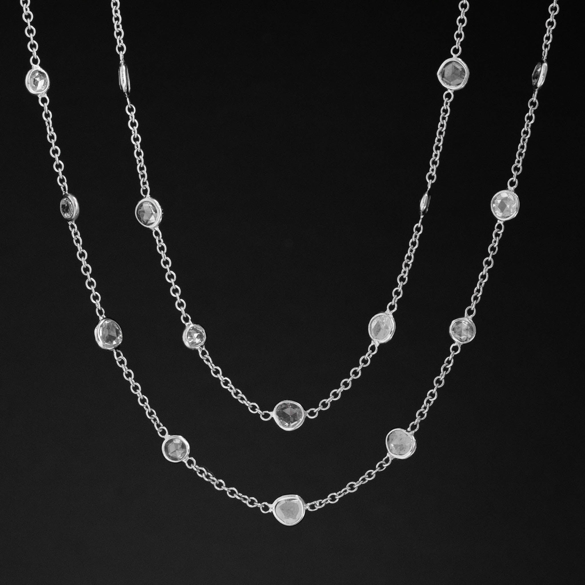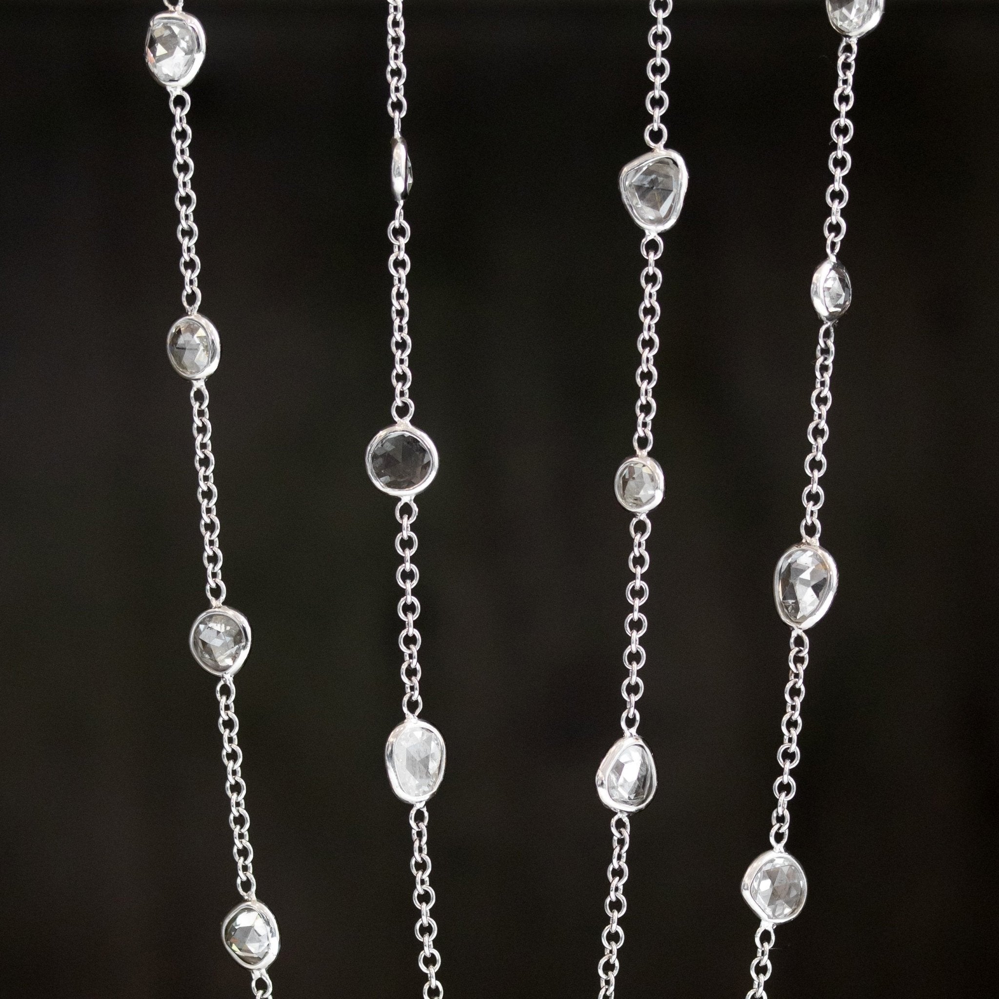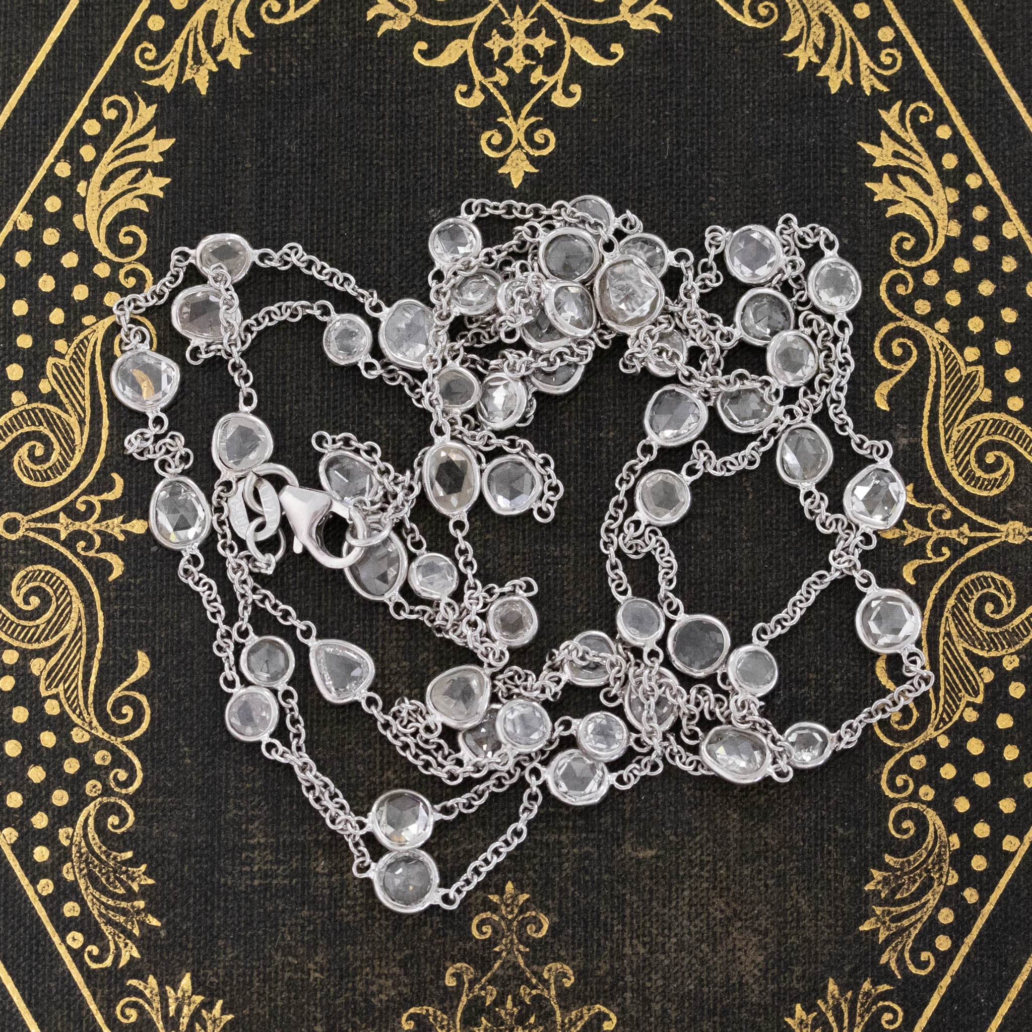 9.11ctw Antique Rose Cut Diamonds-by-the-Yard Long Chain Necklace